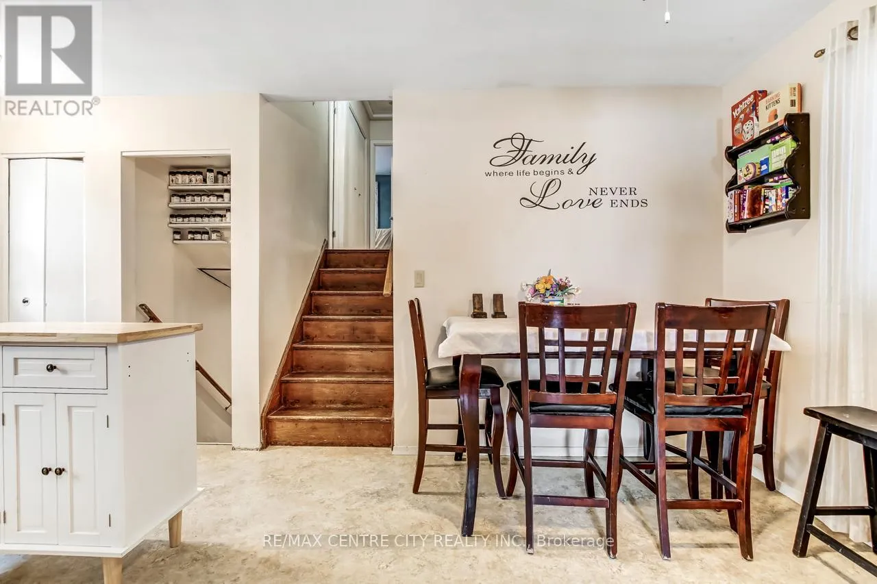 Cross Streets: WHITE STREET. ** Directions: FROM 401 TAKE WHY 4 INTO/TALBOT STREET INTO ST. THOMAS, AT THE ROUNDABOUT CONTINUE STRAIGHT ONTO TALBOT STREET, THEN TURN RIGHT ONTO WHITE STREET, FOLLOWED BY RIGHT ONTO CENTRE STREET, PROPERTY WILL BE ON YOUR LEFT. Welcome to 186 Centre Street, a centrally located 3+2 bedroom, two bath, four-level back split offering exceptional convenience just minutes from downtown St. Thomas, shops, parks, schools, and everyday amenities. This inviting home features a charming front porch, a private two-car driveway, and plenty of additional street parking. Step inside to a welcoming entryway that opens into a bright living room, highlighted by a large front window that fills the space with natural light. Just beyond, you'll find a cozy eat-in kitchen that makes excellent use of its footprint, offering sufficient counter space and a functional island for added prep and workspace. Off the kitchen, access the side porch leading to the backyard, where you'll enjoy a spacious deck, hot tub, and storage sheds - perfect for relaxing or entertaining outdoors. Upstairs, the home offers three comfortable bedrooms and a 4-piece bathroom. The lower level adds even more versatility, featuring a 3-piece bathroom with recently updated tile flooring, a charming den ideal for a reading nook, play area, or home gym, and two additional bedrooms. A few steps down, the basement level provides generous storage space, a dedicated laundry area, and a workbench well-suited for crafting, hobbies, or projects. Well laid out and located in the heart of the city, this home offers flexible living space and great value for families, first-time buyers, or investors alike. (id:27476)