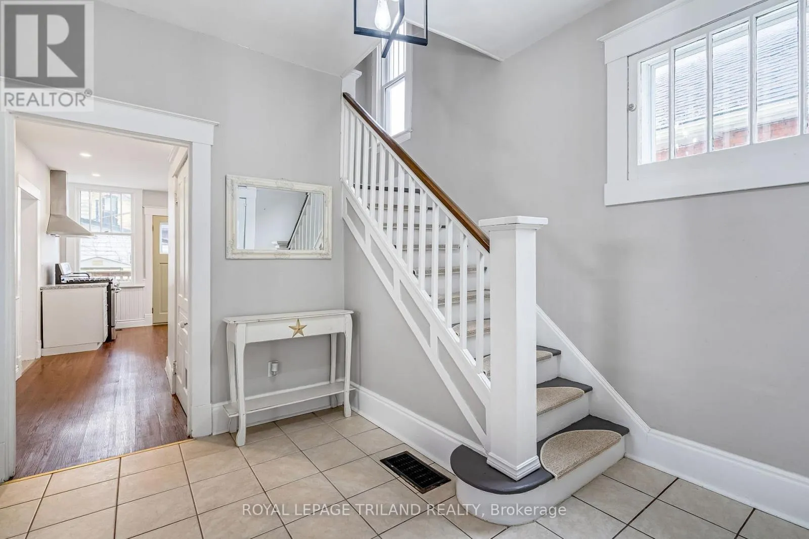 Cross Streets: Stanley. ** Directions: From Talbot Street, head south on Stanley and west on Walnut. House is on the north side of Walnut. Welcome to 72 Walnut Street, a century home full of character and potential in the heart of the Historic Courthouse District. This 3 bedroom home offers a solid foundation for those looking to build equity in a quiet, friendly neighbourhood. The main floor features a bright foyer, separate dining room, and a kitchen updated by previous owners. Upstairs are original hardwood floors and a spacious 5-piece bathroom with heated floors. Major updates include second-floor windows and electrical (2022), leaf filter system (2023). A full walk-up attic provides excellent potential for future finished living space. Enjoy the iconic covered front porch or take a short walk to the Elevated Park and local trails. This prime location offers easy access to the edge of town for quick travel to London and Port Stanley. The property includes a fenced yard, a mutual driveway, and a long-standing friendly agreement with neighbours on Centre Street to park in the laneway to the west. If you are looking for a home with soul and great bones in a sought-after historic pocket, this is a must-see. (id:27476)