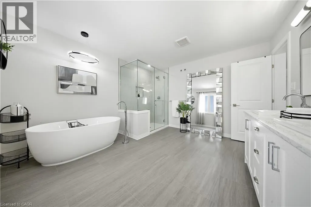 Welcome to the highly sought-after Harvest Run community in St. Thomas! The spacious and bright 4+1 Bedroom âBristolâ model offers 1,635 sq. ft of thoughtfully designed living space with modern, open-concept layout perfect for everyday family life and entertaining. The main floor features a bright living room with fireplace, a dining area, and a chef-inspired kitchen with quartz countertops, large center island, ample storage, and walk-in pantry. Patio doors lead to the backyard, seamlessly blending indoor and outdoor living. Upstairs, the primary bedroom boasts a walk-in closet and a luxurious ensuite with double vanity, freestanding jacuzzi tub, and separate shower. Three additional generously sized bedrooms share a full 4-piece bathroom for added convenience. The home also offers a finished basement, upgraded light fixtures throughout, and an attached double car garage with additional driveway parking. Every detail reflects high-quality finishes, fixtures, and appliances, creating a bright and welcoming space youâll love coming home to. Perfectly located in a family-friendly neighborhood with easy access to schools, parks, shopping, and amenities. Donât miss this exceptional opportunity! (id:27476)
