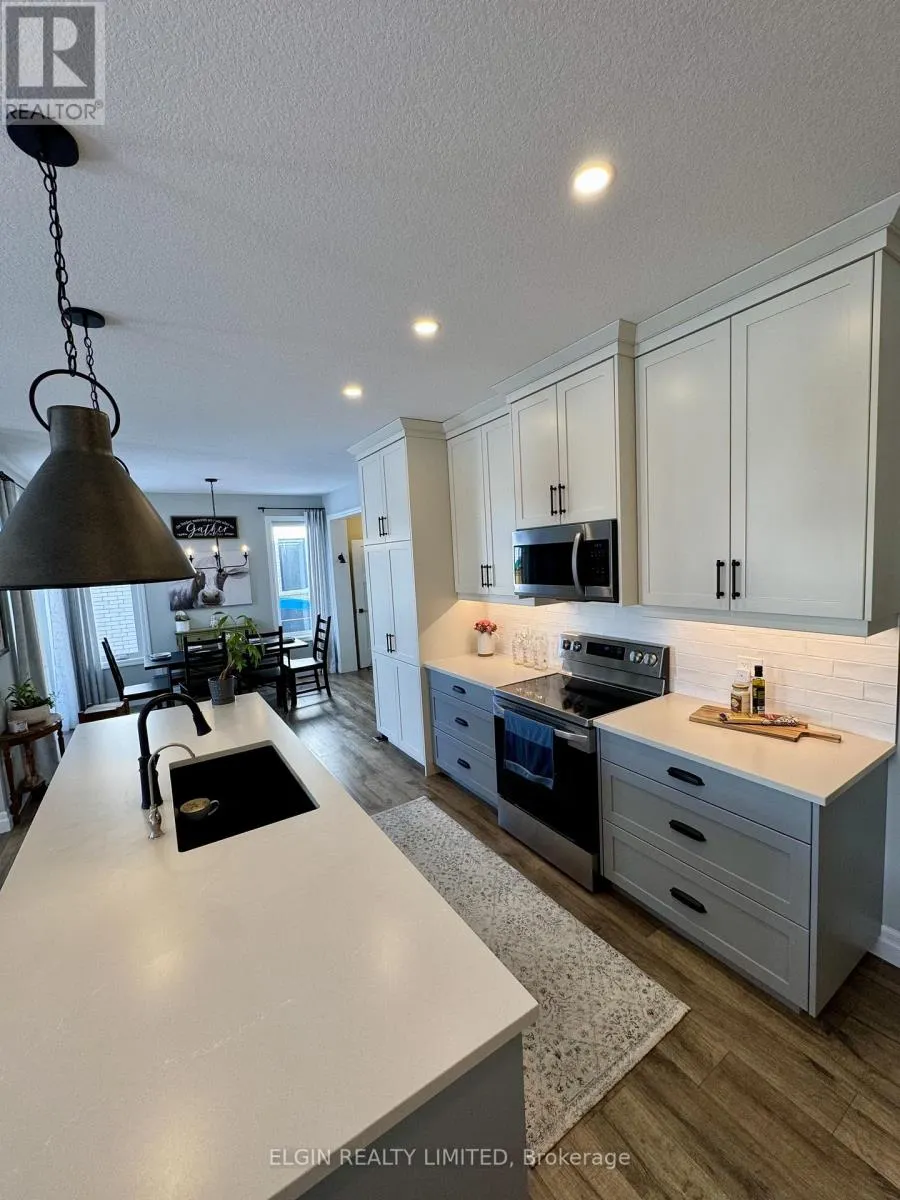 Cross Streets: Renaissance Dr. ** Directions: Turn West off Renaissance Dr. to Dunning Way, property will be on the North side of the road. Step into this like-new home by Hayhoe Homes offering 4+1 bedrooms and 2,556 sq. ft. of beautifully finished living space, thoughtfully designed for comfort and connection.The inviting foyer welcomes you with soaring ceilings and a bright, open feel that carries throughout the home. The GCW kitchen is a true showpiece, complete with upgraded lighting, a built-in additional pantry, reverse osmosis system, 9-foot ceilings, quartz countertops, abundant cabinetry, quality appliances, and generous seating-perfect for gathering with family and friends while you cook.The living room features a stunning vaulted ceiling and upgraded windows that flood the space with natural sunlight. In the dining area, a stylish chandelier adds elegance, while glass doors lead to a gazebo-covered deck with a convenient BBQ gas line hookup-ideal for effortless outdoor entertaining.Just off the kitchen, the laundry/mudroom offers two closets for extra storage, and direct access to the two-car garage for everyday convenience.Upstairs, the spacious primary suite includes a walk-in closet and a private 4-piece ensuite featuring a relaxing soaker tub. Three additional bedrooms and a well-appointed 4-piece bathroom are thoughtfully positioned down the hall, offering comfort and privacy for family members or guests. The fully finished lower level boasts impressive 8-foot ceilings, a generous 16' x 11' bedroom with two windows, another 4-piece bathroom, and a cozy family room-perfect for movie nights, teenagers, or overnight visitors. This turn-key property is ideally located within walking distance to Mitchell Hepburn School, Orchard Park, paved hiking trails, and a nearby sports complex. Plus, you're just a 15-minute drive to the sandy shores of Port Stanley Beach. A beautifully maintained home in a prime location-ready for you to move in and enjoy. (id:27476)