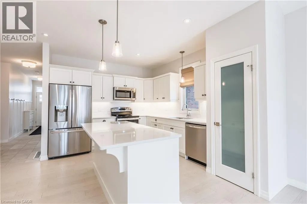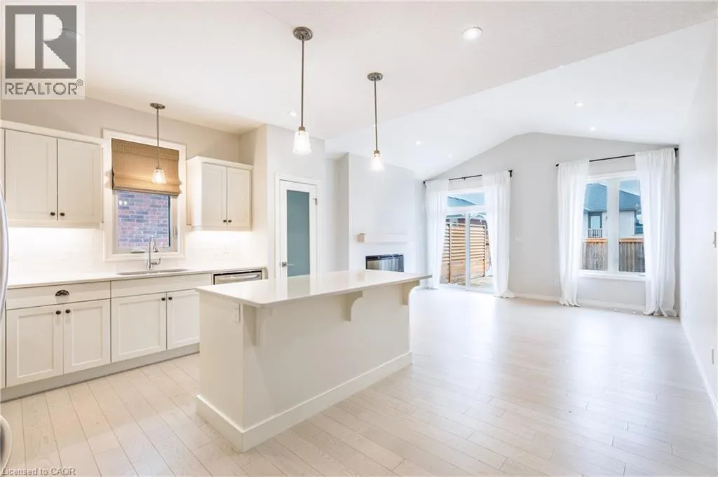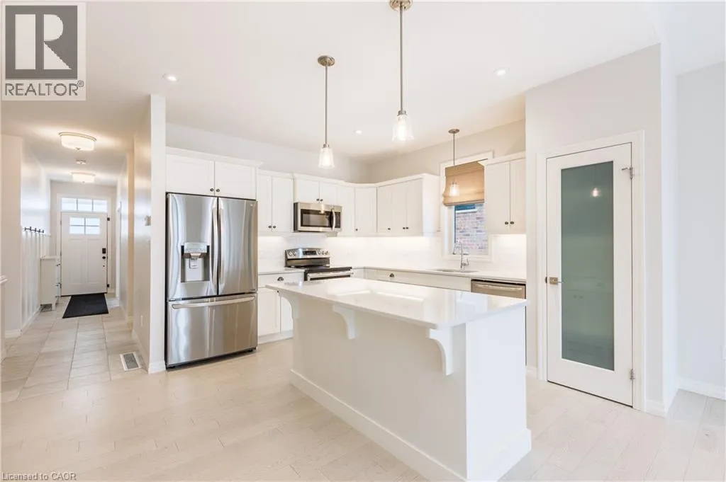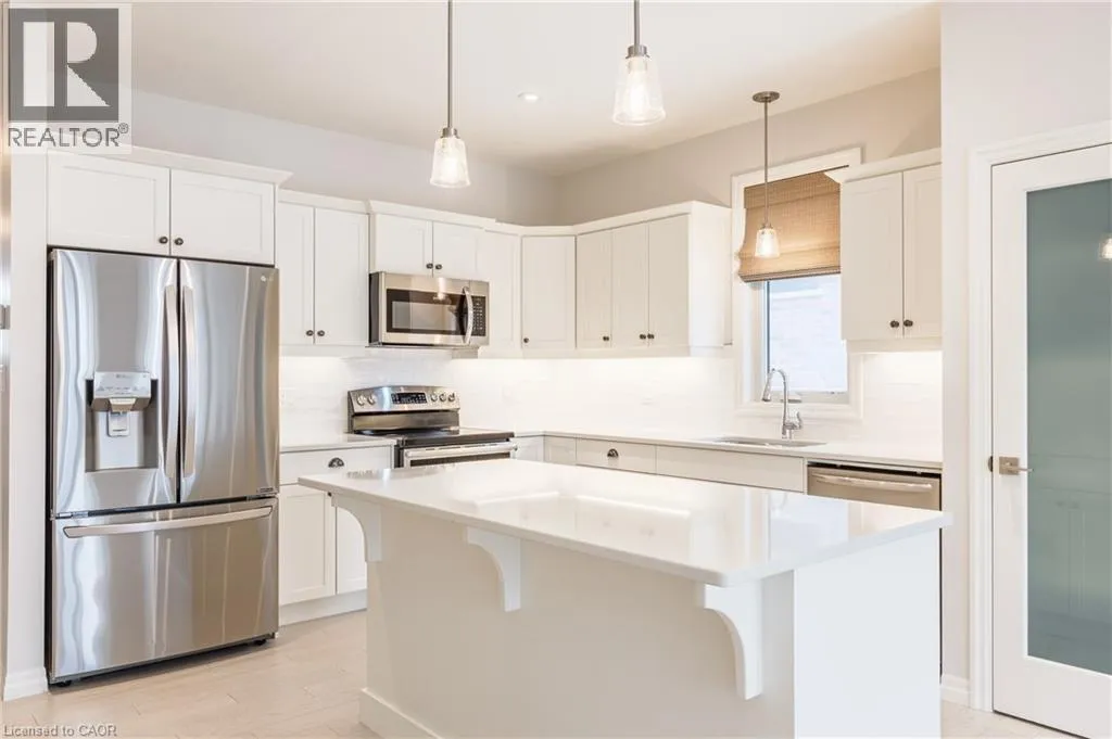 Elm St. to Renaissance Dr. End-Unit bungalow townhome for sale, offering thoughtful modern farmhouse upgrades throughout. Boasting 4 spacious bedrooms and 3 full bathrooms, this beautifully maintained home provides a functional layout. As you step inside, you are welcomed by a bright and open-concept floor plan filled with natural light. The heart of the home is the beautifully designed kitchen, featuring quartz countertops, stainless steel appliances, a large pantry, elegant subway tile backsplash, and an under mount sink, creating both a stylish and highly functional space with ample storage. Convenience meets comfort with main floor laundry, making everyday living effortless. Upstairs, the primary bedroom retreat offers a spacious layout complete with built-in organizers in the walk-in closet, providing exceptional storage and organization. Step outside to enjoy a fully fenced and thoughtfully landscaped backyard, perfect for relaxing or entertaining. The outdoor space features a patio, deck, and a large shed offering additional storage for tools and seasonal items. Car enthusiasts and hobbyists will appreciate the garage with brand-new epoxy floors completed in 2026, providing a clean, durable, and polished finish. For added peace of mind, the home is equipped with professional security cameras installed around the entire property. Located in a desirable neighbourhood, this home is close to schools, parks, shopping and restaurants. This property presents an incredible opportunity to own, don't miss it. (id:27476)