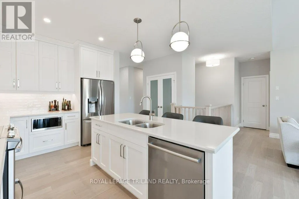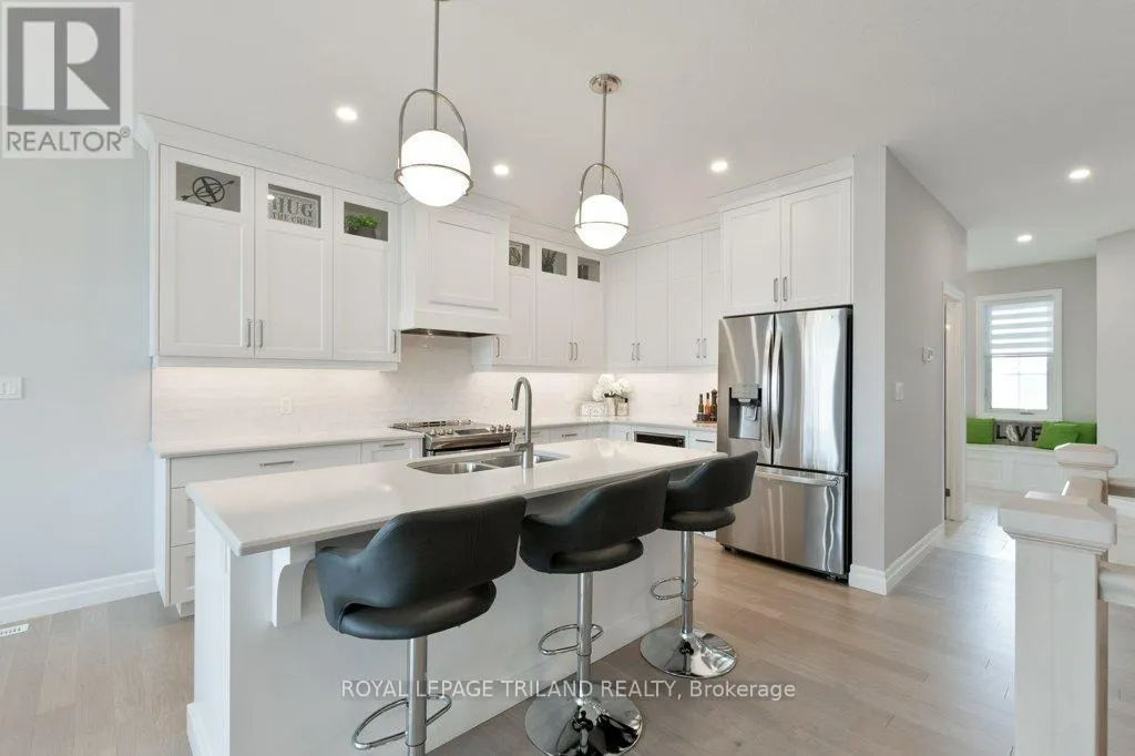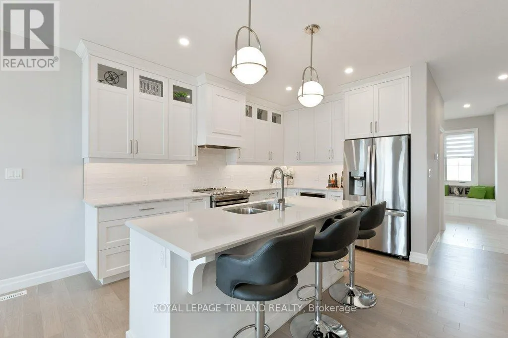 Cross Streets: SOUTHDALE LINE & RENAISSANCE DRIVE. ** Directions: From Southdale Line, North on Renaissance, home is on the left before the roundabout. Welcome to 252 Renaissance Drive, where the "new home vibe" exists without the hassle of the construction and building process! This stunning home features a beautiful open concept main floor with vaulted ceilings, an abundance of natural light in the day time, and ambient pot lighting in the evening. Upgraded kitchen cupboards with large island perfect for entertaining. Off of the kitchen you'll find sliding doors opening out to a 32 foot wide deck, complete with gazebo ready for summertime in the backyard! Generous sized primary bedroom with ensuite, complete with walk-in closet. The fully finished basement is a great extension of living space with rec room and additional 2 bedrooms. Pride of ownership is evident in all additional upgrades completed by meticulous homeowners, this property is ready for its next family to move in and call it home! (id:27476)