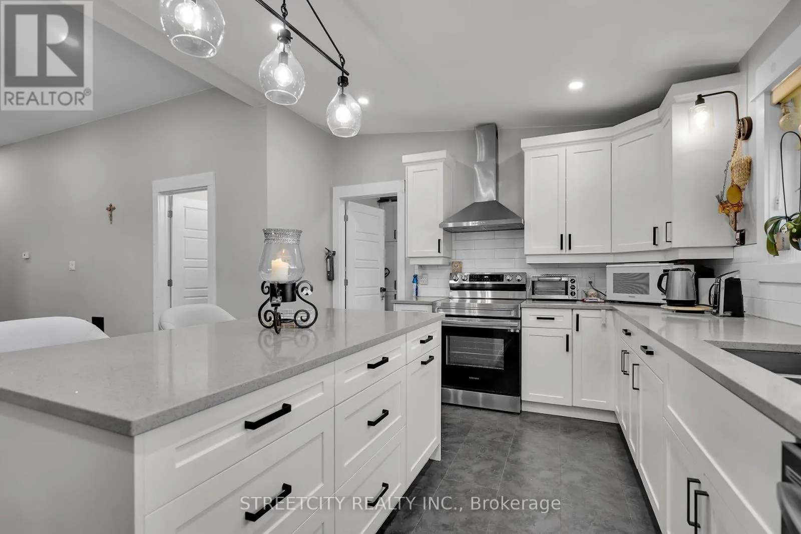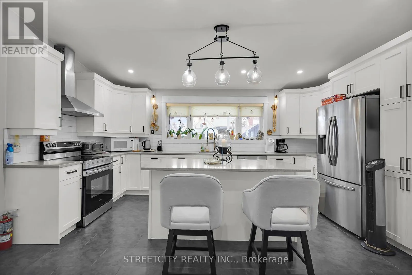 Cross Streets: Myrtle st. ** Directions: From Wellington st, To Ross st, Than to Myrtle st. Move in ready, to this solid brick and carpet free house. Offer 4 bedrooms, 2 bathrooms, single detached garage plus one more carport garage. Single long driveway for almost 4 cars. This property being fully renovated with numerous upgrades, including floors, bathrooms, doors, windows, furnace, A/C and gorgeous kitchen with plenty of cabinets, breakfast island, quartz countertops, open to dining room and 3 bedroom, 3 pc. bathroom, laundry room and door leads to a covered patio. Second floor features a good size recreation room and one bedroom with walk-in closet, 3 pc. bathroom. Lowerel lever offer an extra storage and space for future uses. The house has an electric generator connected for ensuring peace of mind during power outages. Should see this spacious, bright and high ceiling property, everything in those house is like brand new. Located in desirable area close to downtown, parks and schools, easy access to highway and Port Stanley beach. All appliances and hot water heater are included. (id:27476)