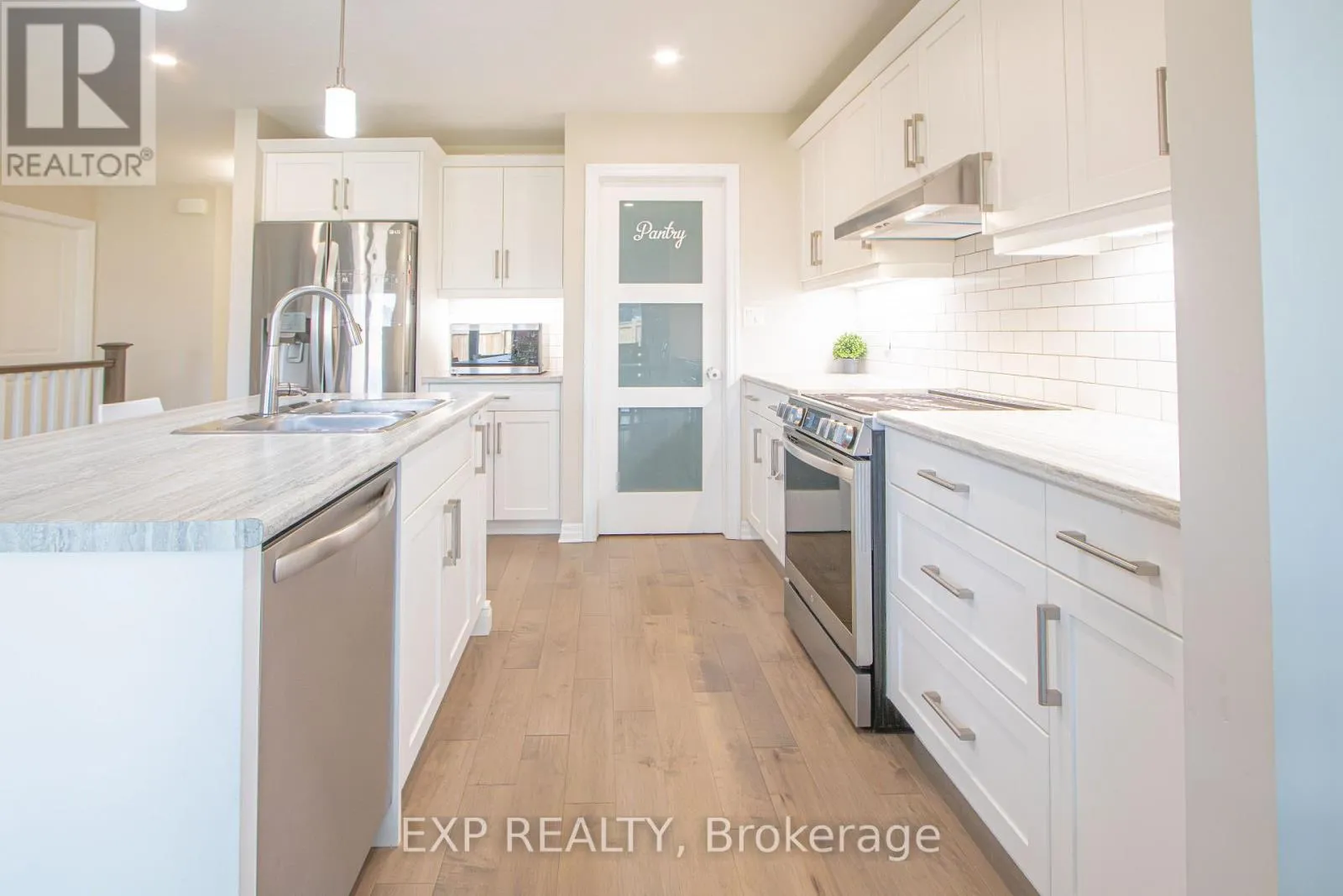 Cross Streets: Renaissance Drive. ** Directions: From Elm St, South on Renaissance Drive, East on Harlequin Court. Welcome to one of Southeast St. Thomas' most desirable communities, where comfort, style, andconvenience come together in this beautifully finished Doug Tarry-built semi-detached home.Step inside to a bright open-concept main floor designed for modern living. Large windows fillthe space with natural light, while the elegant kitchen serves as the heart of the home,featuring quartz counter tops, a centre island, stylish back splash, and stainless steelappliances perfect for cooking, entertaining, and gathering with family and friends. The mainlevel offers two spacious bedrooms. The primary en suite includes aprivate 3 piece en suite, while a 4-piece bathroom is conveniently located beside the secondbedroom for added comfort. Downstairs, the fully finished basement expands your living spacewith a generous recreation room featuring a cozy two additional bedrooms, a dedicated officespace, and another 4-piece bathroom ideal for guests, growing families or for rental togenerate extra income. Step outside to enjoy a spacious fenced backyard with a partiallyconcrete patio, perfect for summer gatherings and relaxing evenings or kids playground. Thehome also features a 1.5 car garage and driveway parking for up to four vehicles, ERV outlet box with 200-amp service breaker and panel. Located within walking distance to schools, parks, and scenic walking trails, and just minutes from everyday amenities, this home offers the perfect combination of modern design, functional space, and a family-friendly neighbourhood. (id:27476)