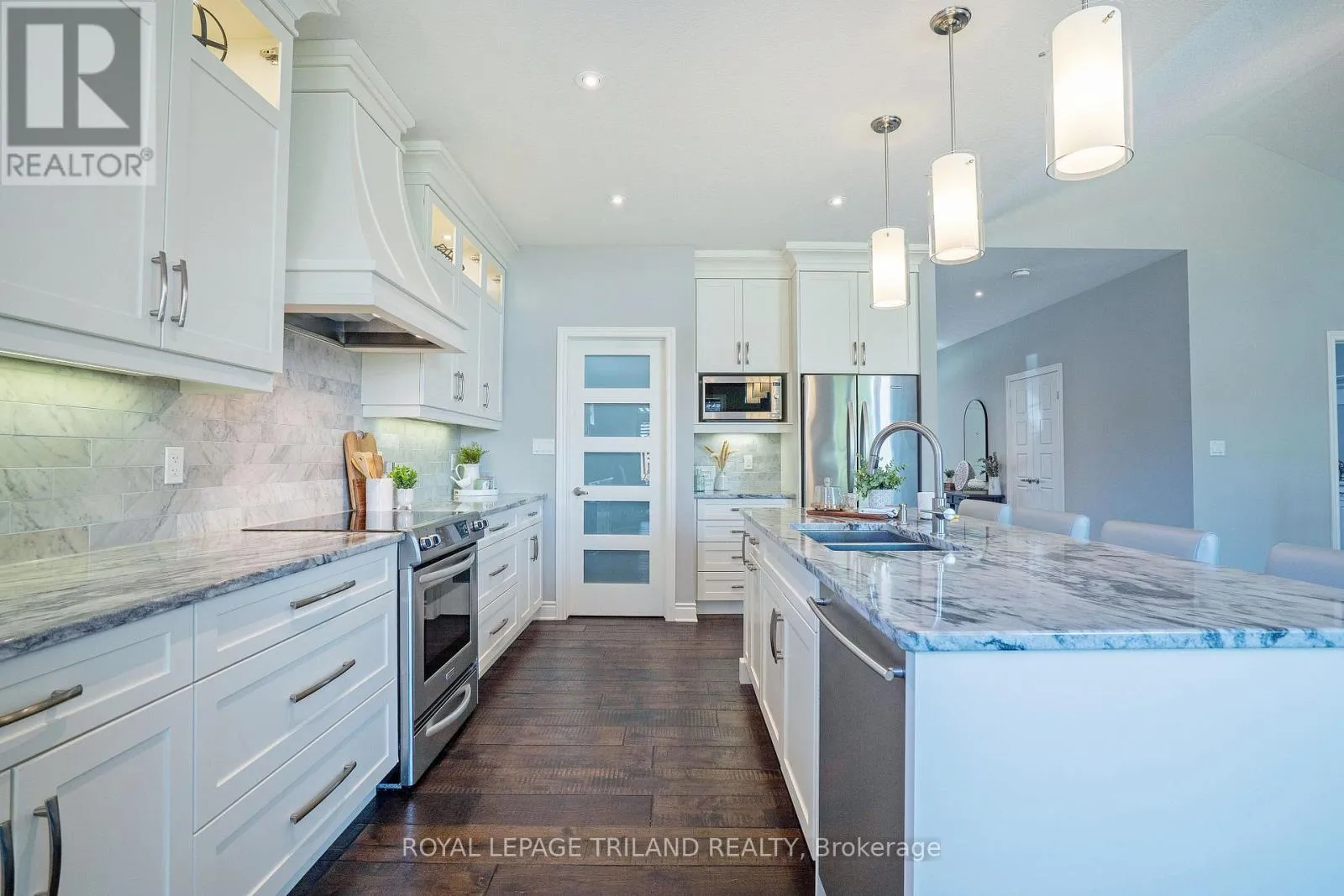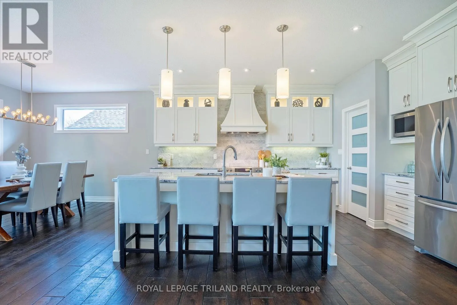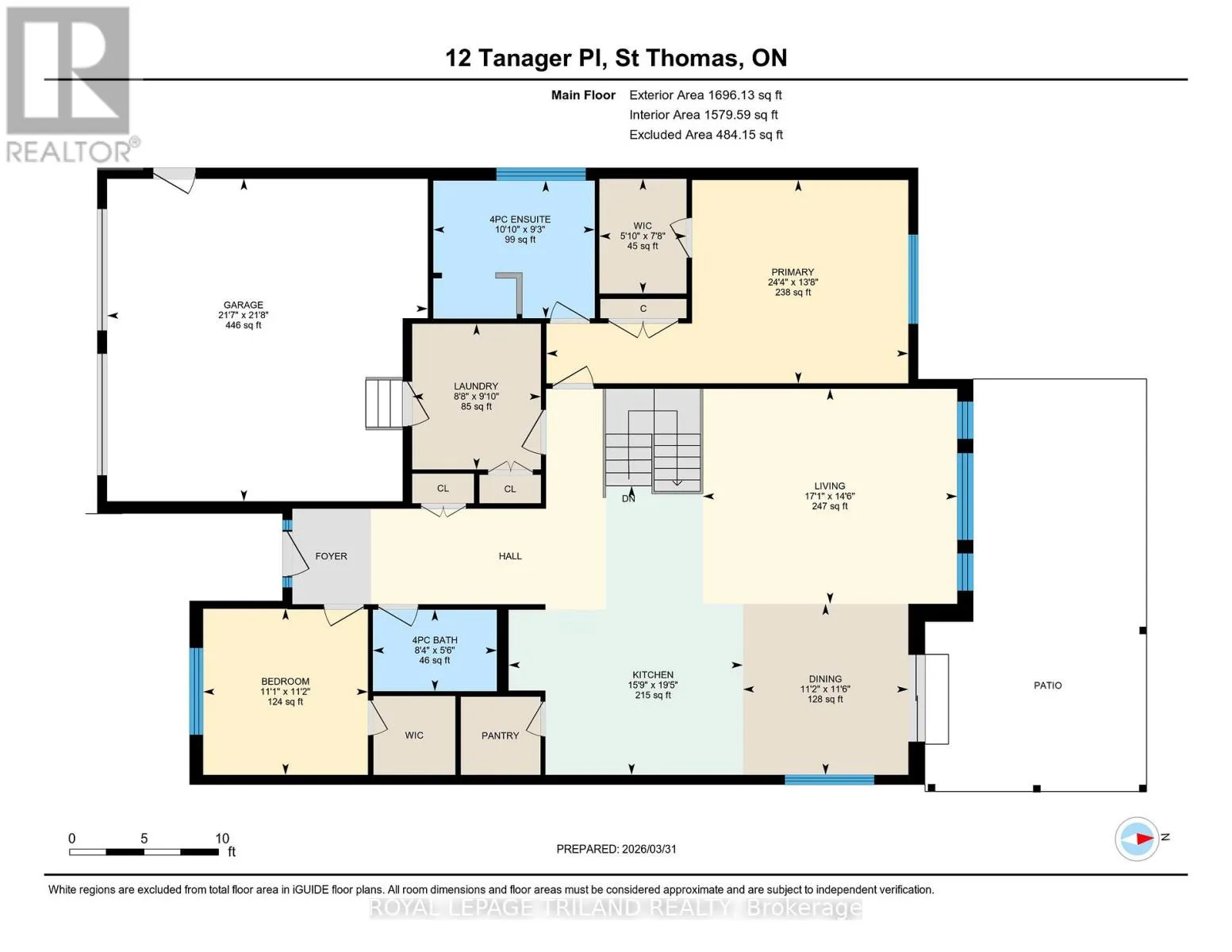 Cross Streets: Hickory Lane. ** Directions: From Sunset turn South on Hickory Lane and West Tanager. Stunning 4-bedroom, 3-bathroom bungalow situated on a quiet cul-de-sac, custom built by Doug Tarry with an expanded floorplan. The home is located near Lake Margaret's trails and Pinafore Park featuring scenic trails, tennis and pickleball courts, picnic areas, splash pad and playground. Enjoy a short commute to the beaches of Port Stanley. Impressive curb appeal with stamped concrete driveway and porch leads to a welcoming foyer and 9 ft ceilings throughout the main level. The designer kitchen features granite countertops, a spacious island, walk-in pantry and included appliances. The bright living room offers cathedral ceilings, abundant natural light and views of the backyard, while the dining area provides access to the fully fenced yard complete with concrete patio, gas BBQ hookup, pergola, playset and mature trees. The main floor includes a front bedroom or office with walk-in closet, a full bathroom, convenient laundry/mudroom with cabinetry and an expansive primary suite with backyard views, walk-in closet with organizer system and a luxurious ensuite with double quartz vanity and tiled glass shower. The fully finished lower level boasts engineered hardwood flooring, pot lights, a spacious family room, rec room, two additional bedrooms, a full bathroom with tiled shower and ample unfinished storage space. A beautifully maintained, quality-built home in a fantastic location-sure to impress! (id:27476)