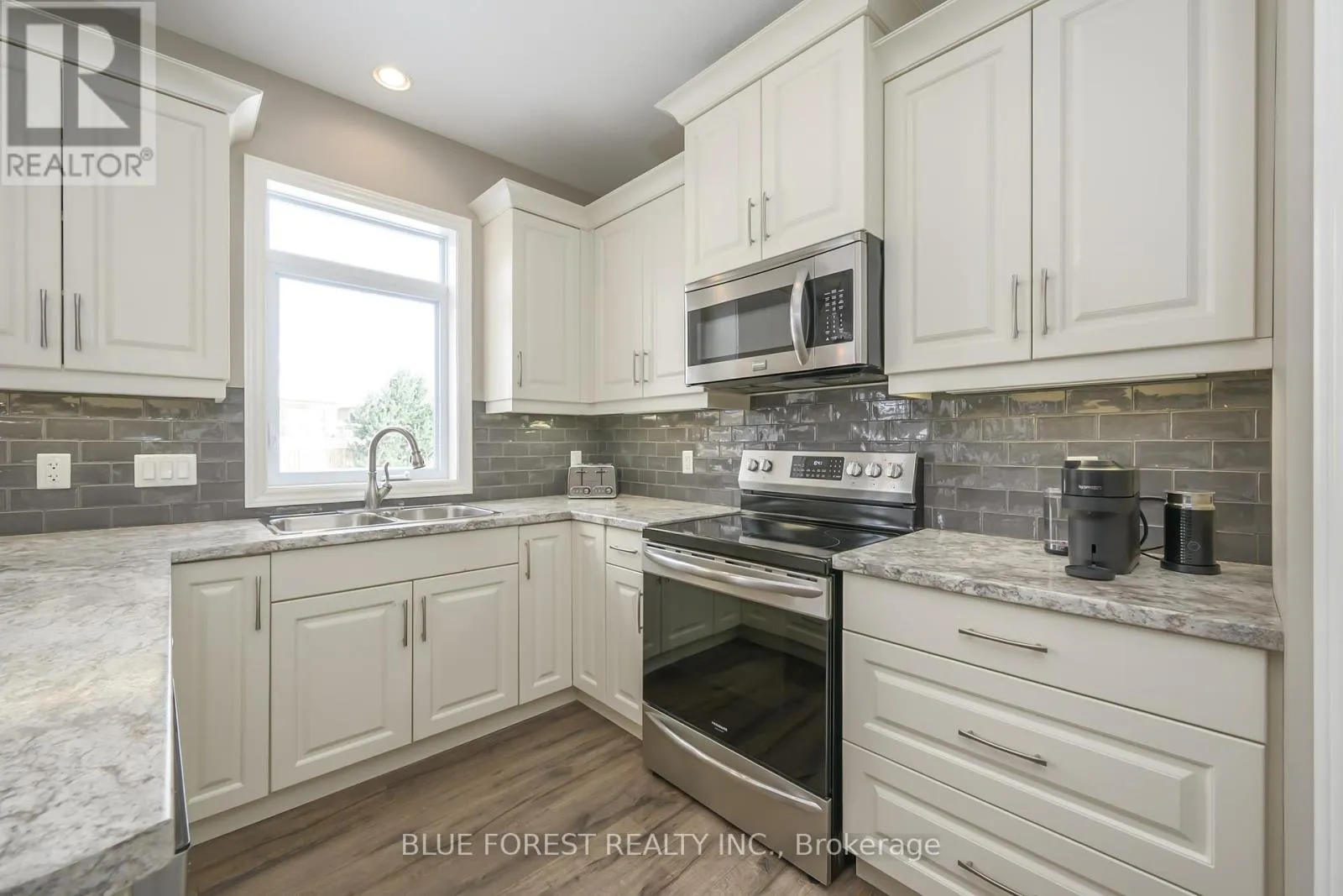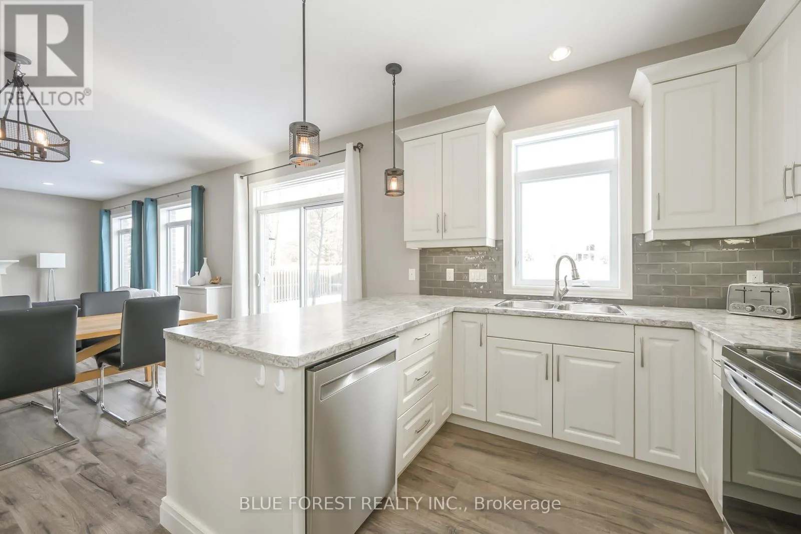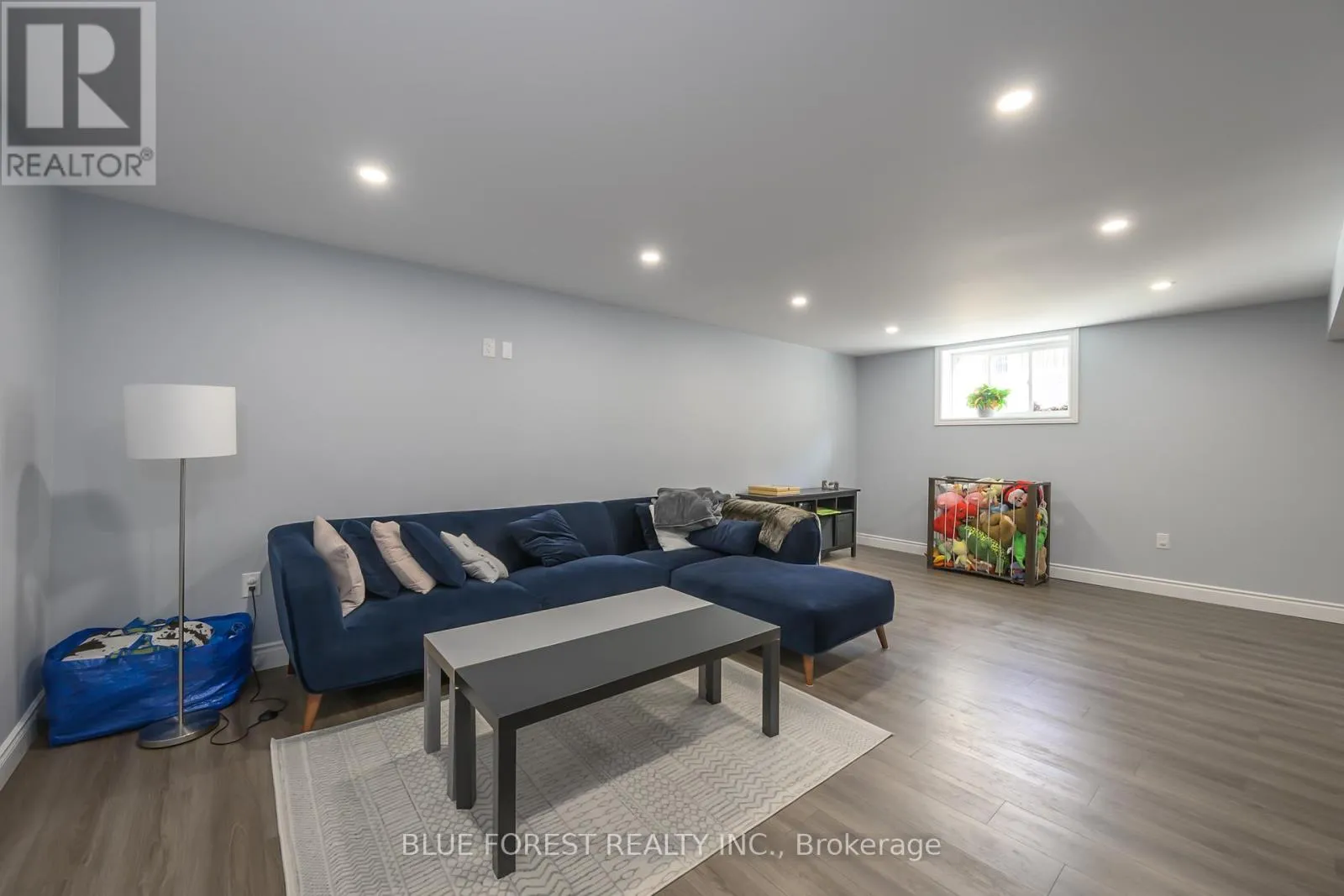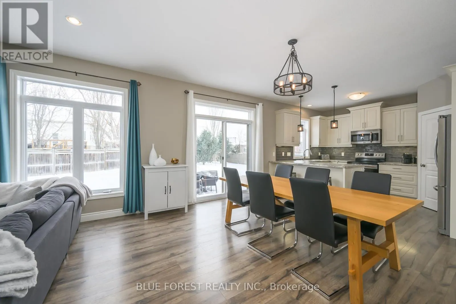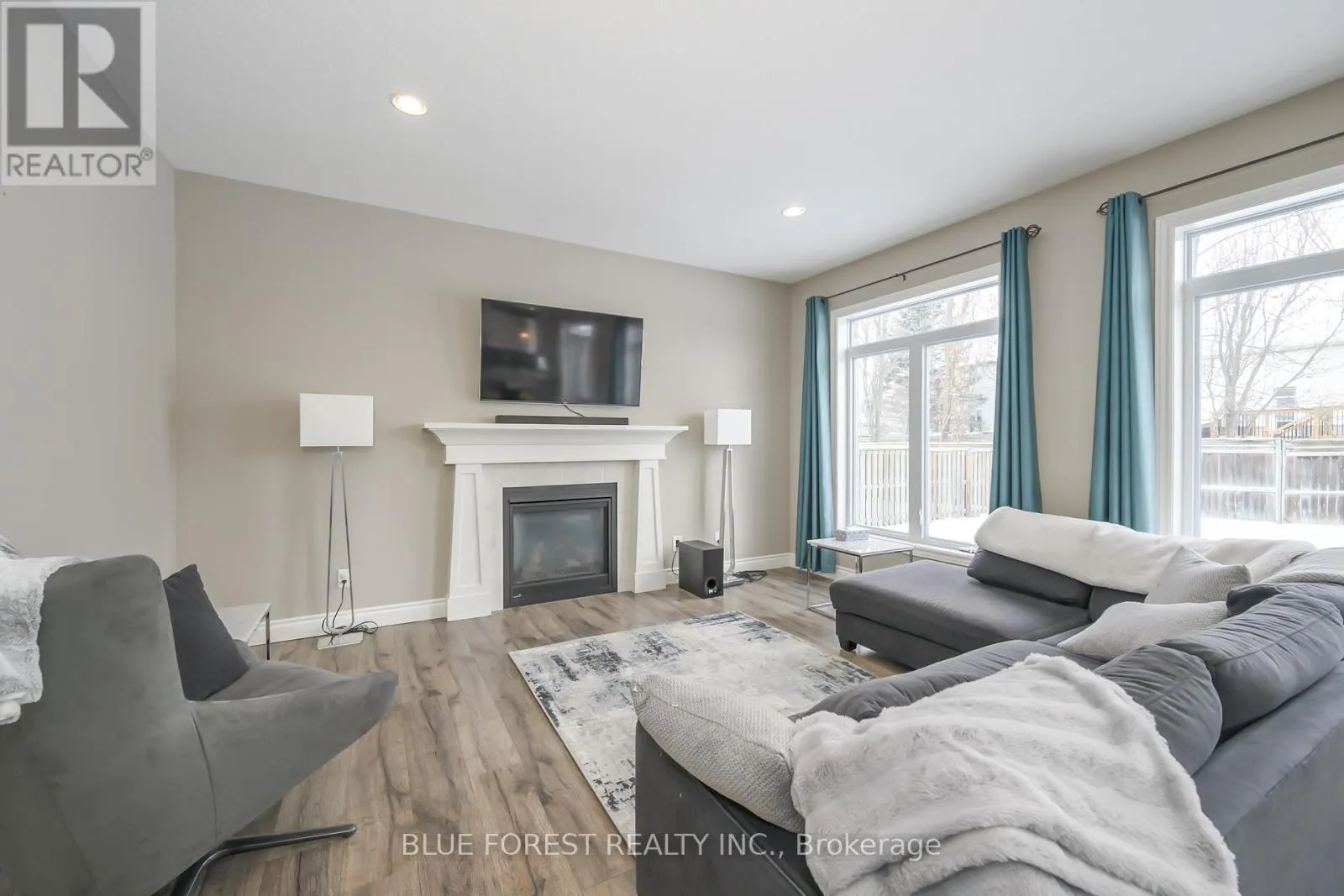 Cross Streets: Oakmont St / St Andrews Dr. ** Directions: From Sunset Dr, turn West onto Shaw Valley Dr, then turn left onto Oakmont St, and left onto St Andrews Dr. House on left. This is the home you've been waiting for! Located in the sought after Shaw Valley subdivision, this spacious 3+1 bedroom 4 bathroom home offers over 2,700 sqft of finished living space with quality finishes throughout. The open concept layout flows seamlessly from the kitchen to the dining and family rooms, complete with a cozy fireplace - perfect for entertaining without missing a moment. The bright kitchen features ample cabinetry, a walk-in pantry, stainless steel appliances, gleaming tile backsplash, and a breakfast bar, making mealtime a pleasure. Convenient main floor den provides a flexible space for a home office, second living room, or kids' playroom. Upstairs, the oversized primary bedroom boasts a walk-in closet and a stunning 5 piece ensuite with vaulted ceiling. Two additional generous bedrooms with ample closet space and a 4 piece bathroom complete the second level. The recently fully finished basement adds a large rec room with rough-in for a wet bar, a 4th bedroom, a 3 piece bathroom, and plenty of storage in the utility and cold rooms. Outside, the fully fenced premium pie shaped lot is huge and offers exceptional space ideal for creating your dream backyard oasis with room for a pool, cabana, trampoline, playground, and more. Double car garage and large covered porch. Conveniently located close to all amenities, with quick access to London, Highways 401 & 402, and Port Stanley. (id:27476)