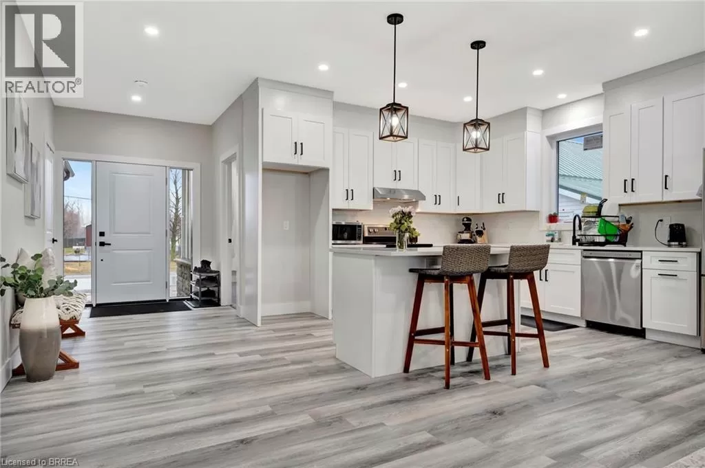 QUEEN ST W/TOWNLINE ST Welcome to your dream home in the charming community of St. Williams. This newly built gem blends modern design with small-town tranquility, offering the perfect retreat from the everyday hustle. Set on a deep, scenic lot backing onto open fields, the property provides peaceful views and room to roam. The exterior showcases a stylish mix of hardy board and stone, highlighted by tasteful pot lighting that adds warmth and elegance. Inside, wide plank flooring and recessed lighting flow seamlessly through the main living areas, creating a clean, contemporary atmosphere with a cozy touch. The bright, neutral palette throughout the home makes it easy to personalize to your taste. The heart of the home is the white kitchen, complete with a central island and an eat-in dining area that opens to a covered porch, perfect for morning coffee or evening relaxation. The plush-carpeted bedrooms offer comfort and privacy, including a spacious primary suite featuring a 4-piece ensuite. Two additional bedrooms and a second 4-piece bath provide ample room for family or guests. Convenience meets functionality with a main floor laundry/mudroom offering direct access to the double garage. The expansive unfinished basement with oversized windows is ready for your finishing touch, ideal for a rec room, home gym, or hobby space. Don't miss this exceptional opportunity to enjoy modern living in a peaceful rural setting, just minutes from all essential amenities. (id:27476)