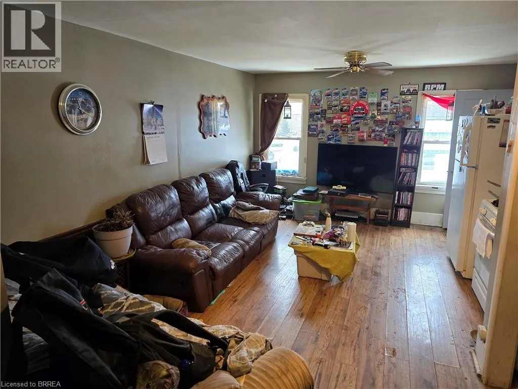 Corner of Townline and Queen St Commercial/retail building for sale at the corner of Townline St and Queen St with strong frontage and visibility. The main floor offers a flexible layout with CHA zoning allowing a wide range of permitted uses, and it can be divided into two spaces if needed. The commercial space currently includes a kitchen and a bathroom, with a shower rough-in already in place. Upstairs, there are two residential units, each with a private entrance. One unit is a 1-bedroom, 1-bathroom suite, and the second is a 2-bedroom, 1-bathroom suite. Utilities are included in the rent for all units. (id:27476)