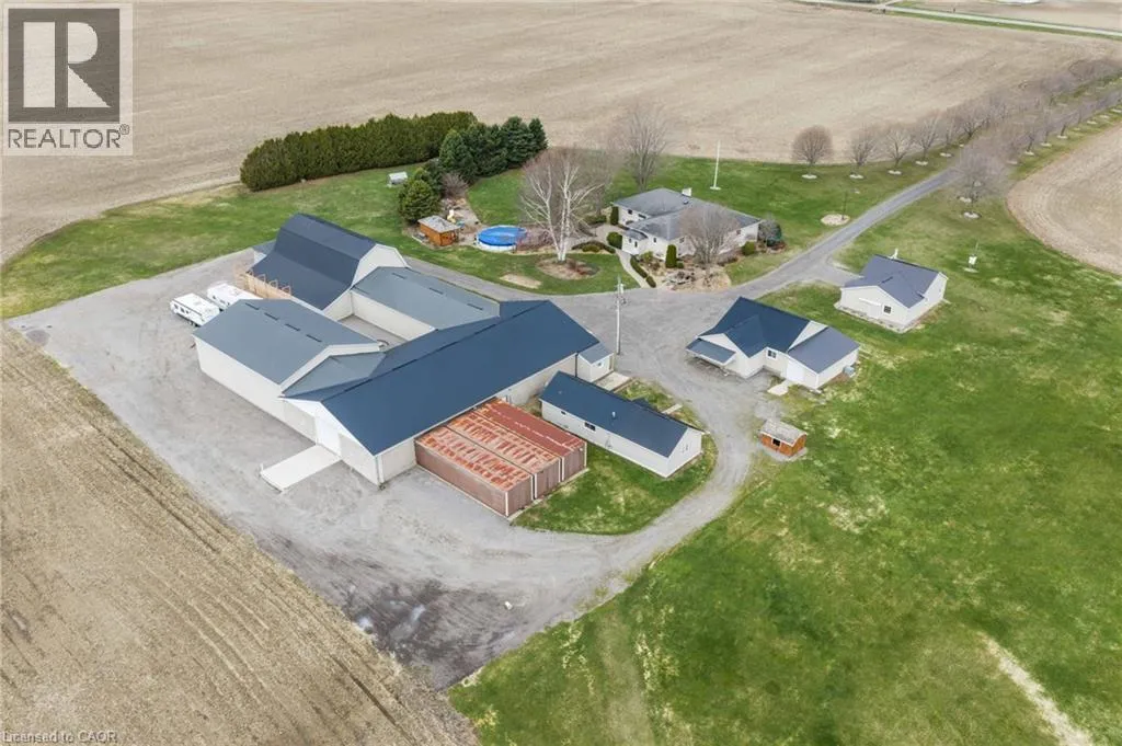 From Hwy 59 - head West on 7th Concession Rd. Property on your right. Set back from the road, a maple-lined driveway brings you into a quiet, private farm setting. This 146-acre farm offers 105 workable acres of fertile, systematically tiled land with an well-maintained home and multiple outbuildings. The land has a proven track record of strong yields - 220 bushel/acre corn and 60 bushel/acre beans. Well suited for cash crop, produce, or specialty crops, and approx 30 acres hasn't had ginseng. The home is an updated 3400sqft 4 bed - 2 bath brick-bungalow. Many updates including custom kitchen/bathrooms, hardwood/tile throughout, and oversized main bedroom with walk-in closet. The property is fully equipped with a 50'x100' processing barn with loading dock, 3 bulk kilns, 2 large newer coolers, insulated workshop, certified 7-person bunkhouse, and multiple outbuildings. Some other features are a 305' deep well producing 75 GPM, underground hydro, 500 amp transformer, security systems, and metal roofing. A clean, turnkey farm ready to go, book your private viewing today. (id:27476)