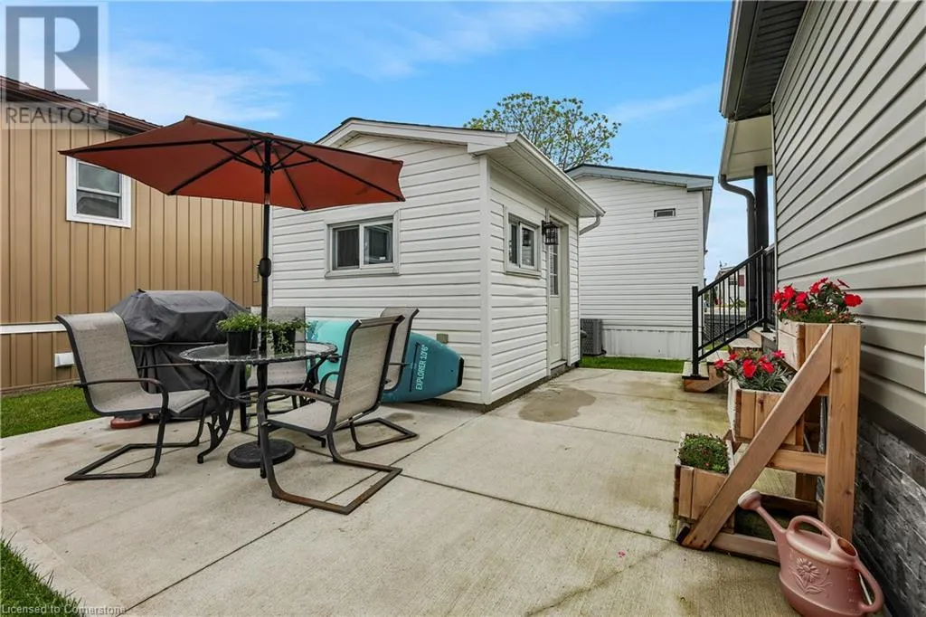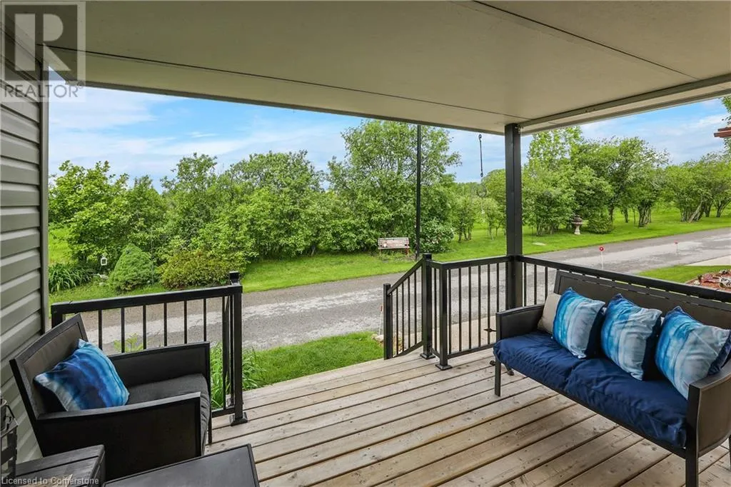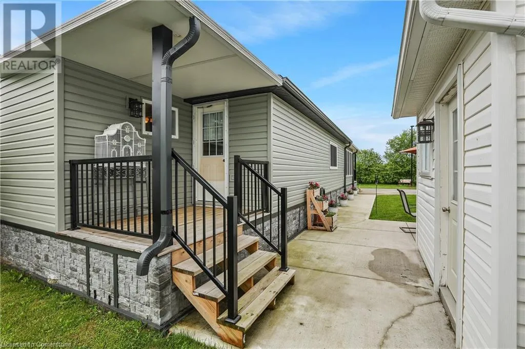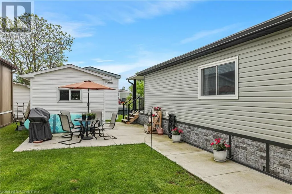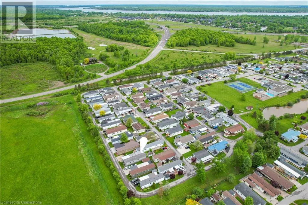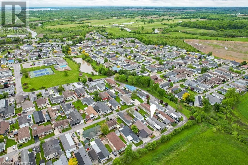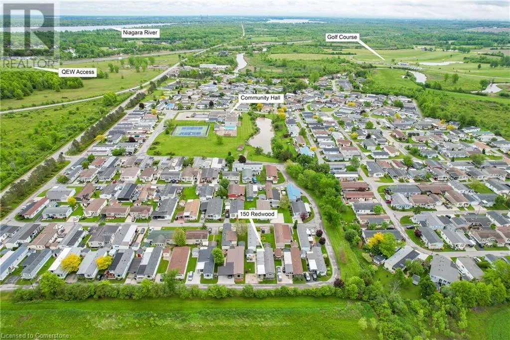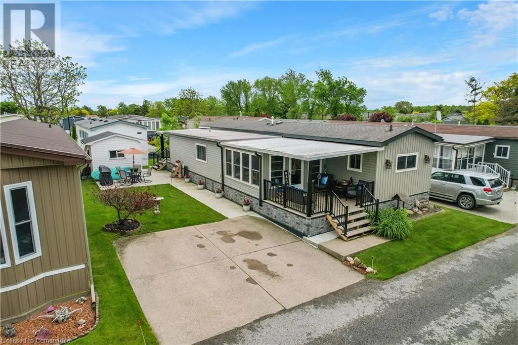 QEW Niagara - Take Exit 112, turn right to Netherby Rd, Left onto Townline Rd, on right side - go to Main Gate ADULT LIFESTYLE LIVING AWAITS ⦠150-3033 Townline Road (150 Redwood Square) is a well-maintained bungalow nestled in the sought-after Black Creek Adult Lifestyle Community in Stevensville. This spacious 2 bedroom, 2 bath home offers over1300 sq ft of functional, one-level living with thoughtful updates and excellent privacy. Enjoy a warm and welcoming layout featuring a large front sunroom w/in-floor heating and patio door off the living room, a generous dining space, and a bright kitchen with centre island, open-style PANTRY, and additional pantry/storage. The sunroom connects to a COVERED FRONT PORCH - perfect for enjoying your morning coffee across with peaceful views of a field. The primary suite boasts double closets and a fully RENOâd 3-pc ensuite (2022/2023). A second bedroom and full 4-pc bath provide space for guests or hobbies. The laundry/mudroom offers additional storage and walkout access to the private rear yard, where youâll find a concrete patio, covered back deck, shed w/hydro, offering peaceful surroundings and added privacy. Recent UPDATES include all windows (except one)(2022/2023), updated appliances (2023), new dryer, siding, fascia, soffits, eves & outdoor lighting; decks, railings, stairs, concrete walkway & patio in front of shed (2022/2023), and five skirting access doors for easy maintenance. Monthly fees of $971.35 cover land lease & estimated taxes, making this a stress-free lifestyle choice. Enjoy an active, social community with access to a clubhouse, indoor/outdoor pools, sauna, shuffleboard, tennis/pickleball courts, fitness & wellness programs, and weekly social events. Quick access to the QEW completes the package. Carefree community living awaits! CLICK ON MULTIMEDIA for virtual tour, drone photos, floor plans & more. (id:27476)