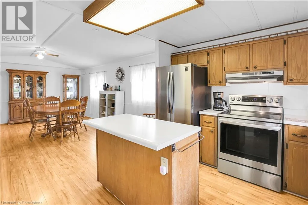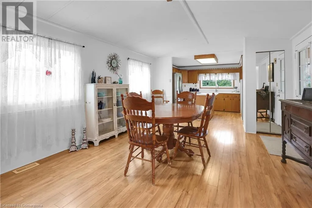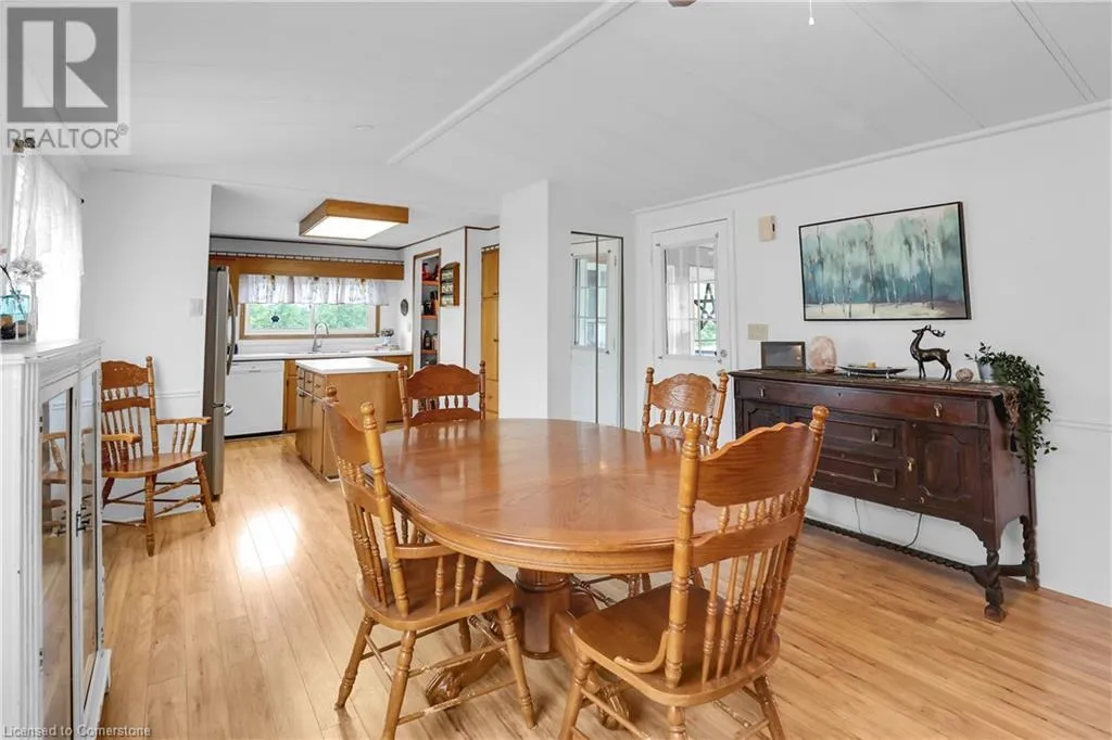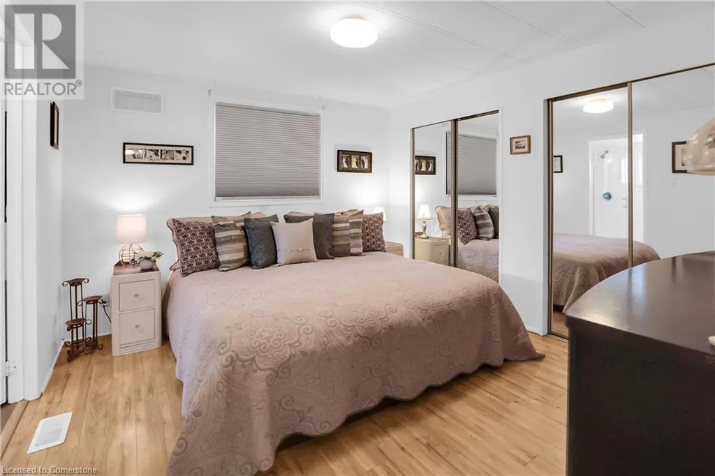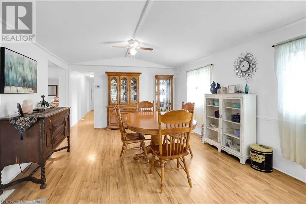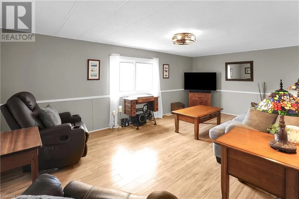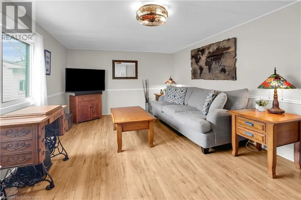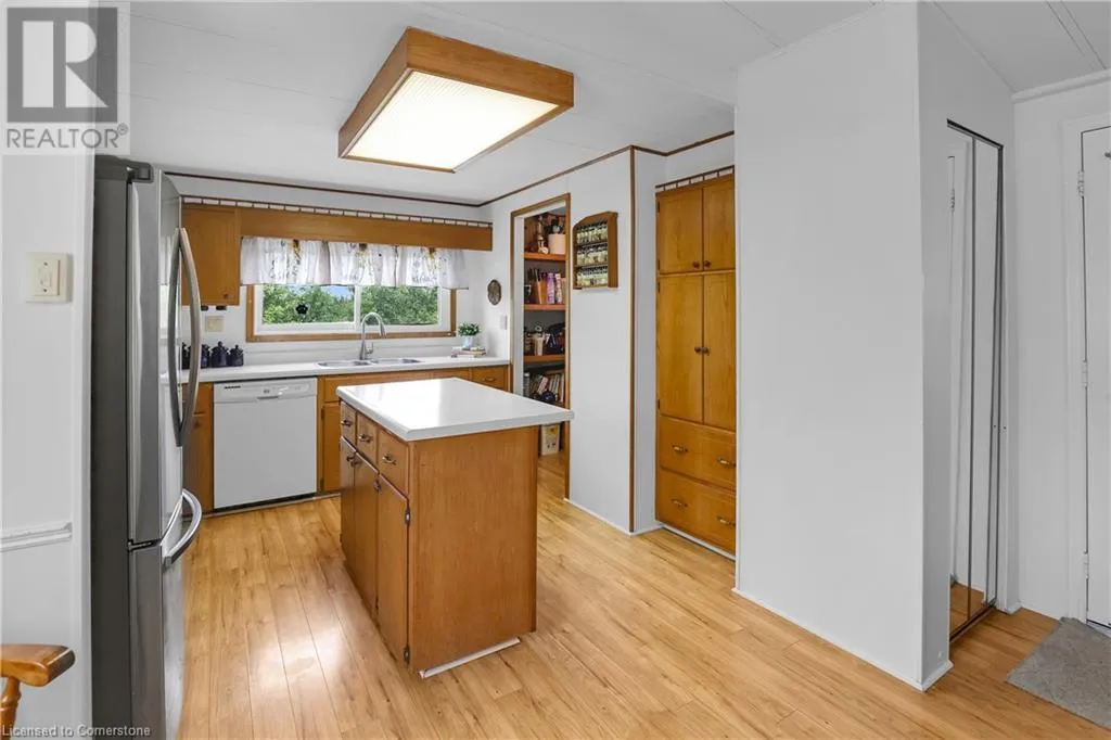 QEW Niagara - Take Exit 112, turn right to Netherby Rd, Left onto Townline Rd, on right side - go to Main Gate ADULT LIFESTYLE LIVING AWAITS ⦠150-3033 Townline Road (150 Redwood Square) is a well-maintained bungalow nestled in the sought-after Black Creek Adult Lifestyle Community in Stevensville. This spacious 2 bedroom, 2 bath home offers over1300 sq ft of functional, one-level living with thoughtful updates and excellent privacy. Enjoy a warm and welcoming layout featuring a large front sunroom w/in-floor heating and patio door off the living room, a generous dining space, and a bright kitchen with centre island, open-style PANTRY, and additional pantry/storage. The sunroom connects to a COVERED FRONT PORCH - perfect for enjoying your morning coffee across with peaceful views of a field. The primary suite boasts double closets and a fully RENOâd 3-pc ensuite (2022/2023). A second bedroom and full 4-pc bath provide space for guests or hobbies. The laundry/mudroom offers additional storage and walkout access to the private rear yard, where youâll find a concrete patio, covered back deck, shed w/hydro, offering peaceful surroundings and added privacy. Recent UPDATES include all windows (except one)(2022/2023), updated appliances (2023), new dryer, siding, fascia, soffits, eves & outdoor lighting; decks, railings, stairs, concrete walkway & patio in front of shed (2022/2023), and five skirting access doors for easy maintenance. Monthly fees of $971.35 cover land lease & estimated taxes, making this a stress-free lifestyle choice. Enjoy an active, social community with access to a clubhouse, indoor/outdoor pools, sauna, shuffleboard, tennis/pickleball courts, fitness & wellness programs, and weekly social events. Quick access to the QEW completes the package. Carefree community living awaits! CLICK ON MULTIMEDIA for virtual tour, drone photos, floor plans & more. (id:27476)