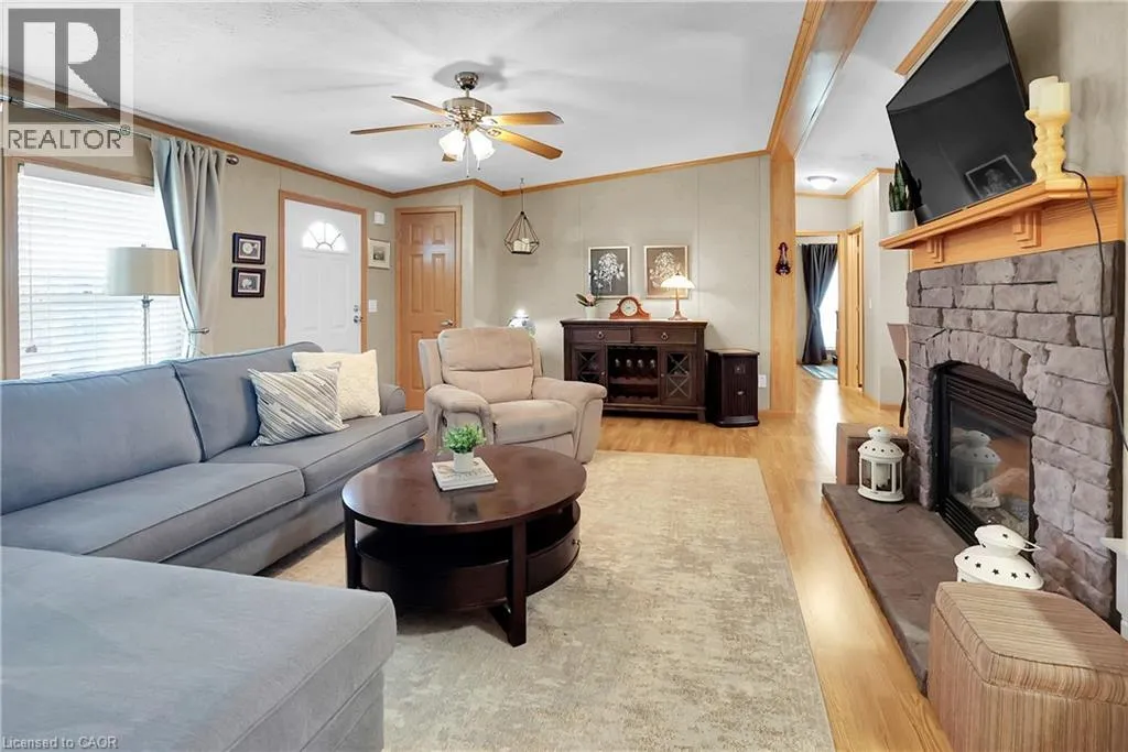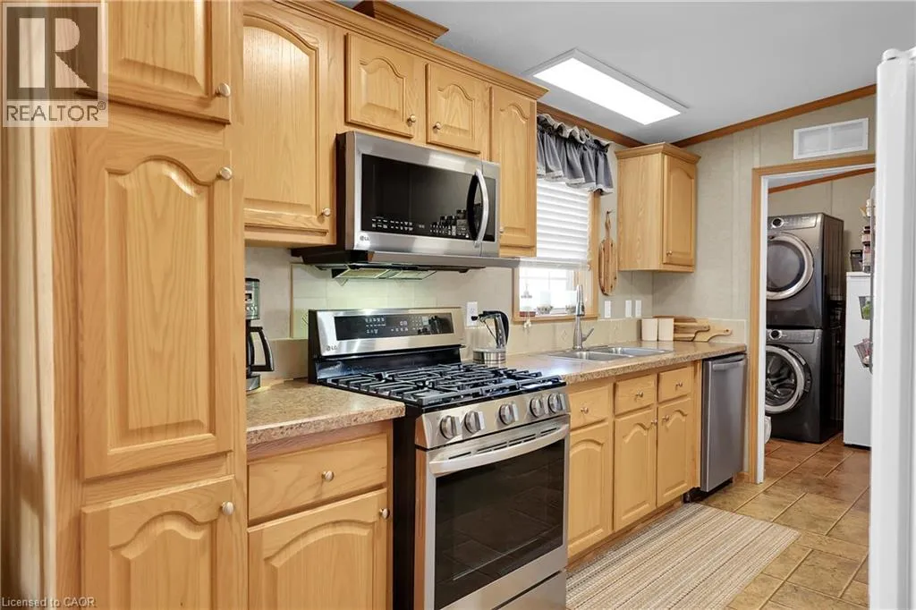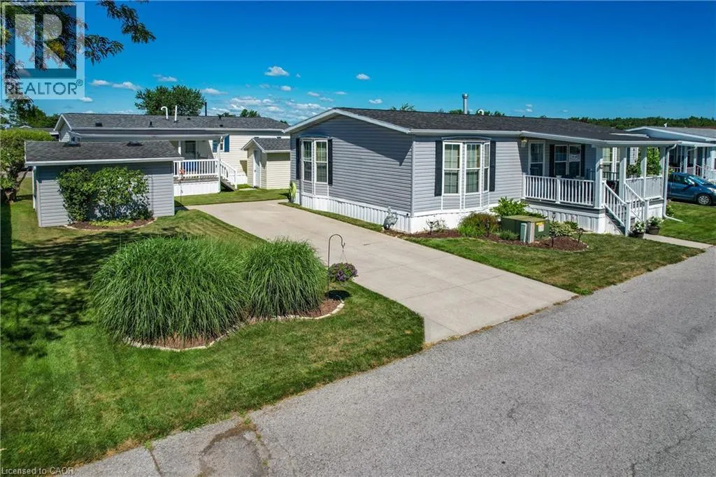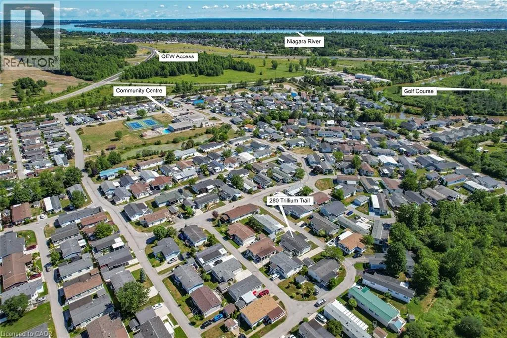 QEW Niagara - take exit 12, turn right to Netherby Rd, Left onto Townline Rd, on right side - go to Main Gate CAREFREE LIVING IN EVERY SEASON ⦠Welcome to 280-3033 Townline Road (Trillium Trail), nestled in the heart of Stevensvilleâs vibrant Black Creek Adult Lifestyle Gated Community, where comfort, convenience, and connection come together. This charming and well-maintained 3-bedroom, 2-bath, 1322 sq ft home offers an ideal blend of space and functionality, perfect for those looking to enjoy both a relaxed and active lifestyle. Step inside and be greeted by a spacious living room anchored by a cozy GAS FIREPLACE, ideal for gathering with friends or enjoying quiet evenings in. The adjacent dining area and well-appointed kitchen with gas stove and built-in microwave make meal prep and entertaining a breeze. Off the kitchen, you'll find a convenient laundry room with stackable washer/dryer and access to the COVERED REAR DECK - perfect for enjoying morning coffee or peaceful afternoons outdoors. Dining area also has access through sliding doors to the beautiful 29â x 9â deck with steps down to the garden shed with extra storage. The PRIMARY SUITE is a true retreat with a WALK-IN CLOSET and a private 3-piece ENSUITE with walk-in shower. A generous second bedroom and a third bedroom (currently used as an office) offer flexibility for guests or hobbies. Additional features include a large linen closet, Furnace (2019), Owned HWT (2016), and a COVERED FRONT PORCH. But what truly sets this home apart is the lifestyle it affords. As part of this welcoming community, youâll enjoy full access to top-tier amenities: indoor/outdoor pools, a sauna, clubhouse, shuffleboard, tennis/pickleball courts, fitness classes, and a dynamic social calendar. Monthly fees: $1093.14 ($850.00 land lease + $243.14 estimated taxes). Ready to downsize without compromise? This is the one! CLICK ON MULTIMEDIA for the full virtual tour, drone footage & more! (id:27476)
