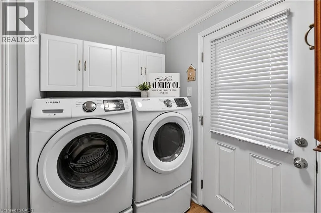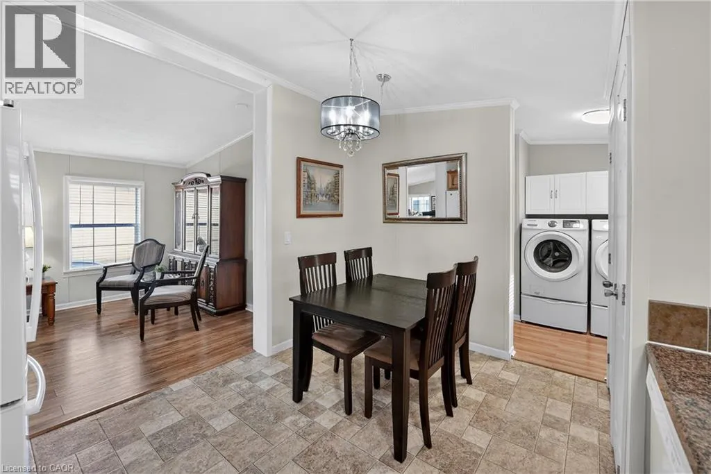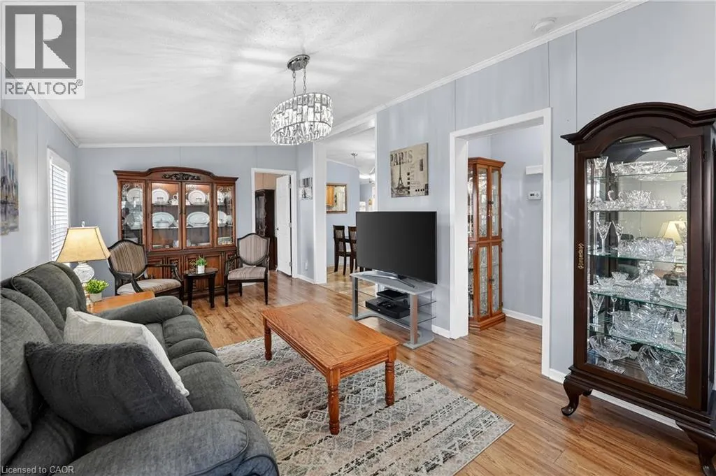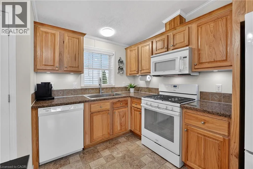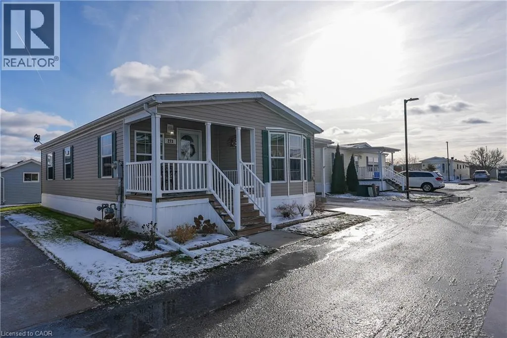 QEW Niagara - take exit 12, turn right to Netherby Rd, Left onto Townline Rd, on right side - go to Main Gate. MODERN COMFORT, COMMUNITY LIVING ⦠OPEN CONCEPT living shines throughout this bright and welcoming home at 273-3033 Townline Road (273 Starling Gate) in Stevensvilleâs sought-after Black Creek Adult Lifestyle Community. Natural light, updated flooring, and refreshed fixtures set a warm tone the moment you step inside. The spacious living room flows effortlessly into the eat-in kitchen, complete with a newer fridge and sink, gas stove, under-cabinet lighting, pantry, ample cabinetry, and convenient access to the laundry area featuring a newer washer and dryer. From here, walk out to the impressive 15.10â x 11.7â side deck - an XL outdoor extension perfect for entertaining, complete with patio lighting and permanent exterior GOVEE smart lights that offer an innovative and customizable ambiance at the touch of an app. The primary bedroom provides a peaceful retreat with a walk-in closet and its own 3-pc ensuite that includes a walk-in shower with a seat. A second bedroom offers flexibility for guests, a home office, or a cozy family room. The additional 4-pc bath, and both bathrooms feature raised toilets for added comfort and accessibility. Outside, an extended double concrete drive with carport allows parking for up to four vehicles, while the hydro-equipped garden shed adds valuable storage. BONUS ~ Generac Generator means peace of mind! Living here means more than just enjoying a beautiful, low-maintenance home - it means embracing a vibrant, gated community-focused lifestyle. Residents have full access to top-tier amenities: indoor and outdoor pools, sauna, clubhouse, shuffleboard, tennis/pickleball courts, fitness classes, and an active social calendar that keeps neighbours connected and engaged. If youâre seeking comfort, convenience, and community all in one, this Stevensville opportunity delivers. Monthly fees: $1102.12 ($850 land lease + $252.12 estimated taxes). CLICK ON MULTIMEDIA for virtual tour, drone photos, floor plans & more. (id:27476)