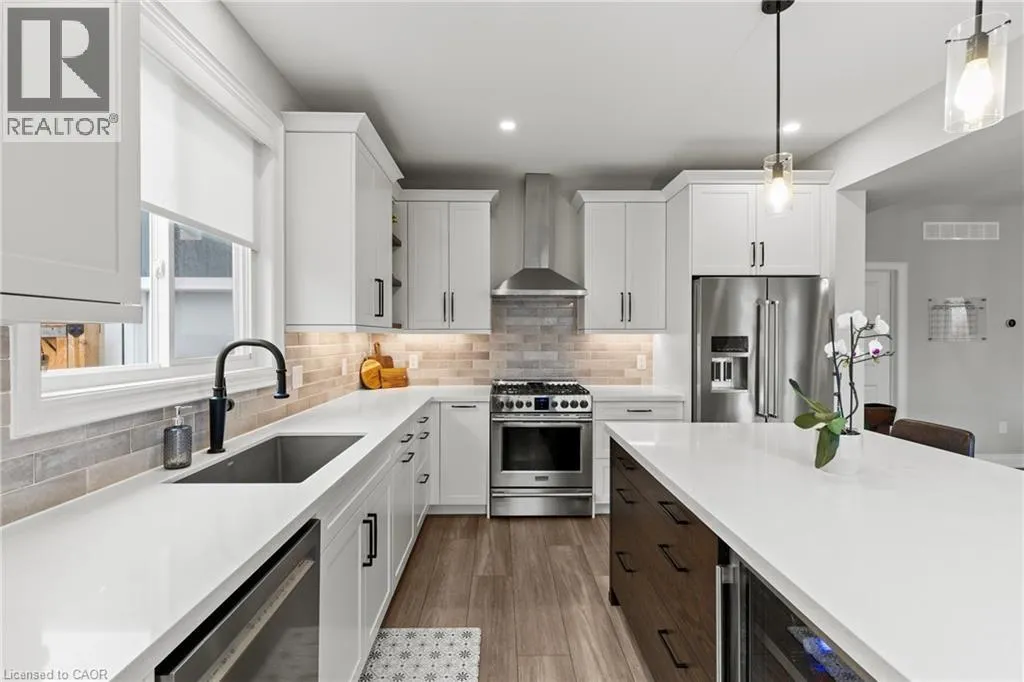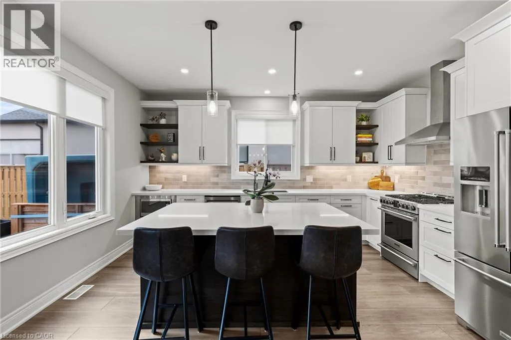 Welcome to 3549 Canfield Crescent, a custom-built two-storey home completed in 2022, offering 1,750 sq ft of thoughtfully designed living space in a safe, family-friendly neighbourhood just minutes from the new hospital and with convenient access to the QEW. Set on a generous 53x 121 ft lot, this home combines quality craftsmanship with modern finishes throughout, featuring custom cabinetry by Artcraft Kitchens and quartz countertops across the entire home, along with high-end appliances. The open-concept main floor seamlessly connects the living, dining, and kitchen areas, complemented by a custom walk-in pantry and a functional mudroom with garage access and a built-in dog wash. Upstairs, the spacious primary bedroom includes his and hers closets and a private 3-piece ensuite, while two additional well-sized bedrooms with large closets are serviced by a 4-piece bathroom. A 2-piece powder room is conveniently located on the main level. The unfinished basement offers excellent potential, with some framing already completed and a rough-in for a future bathroom. Outside, enjoy a fully fenced backyard featuring a large deck spanning the width of the home, a custom-built shed with 100 amp hydro service, gas line for outdoor use, and professionally designed landscaping by Gauld Nurseries (2025), including a raised vegetable garden. The exterior is further enhanced by an interlock patio and front walkway, along with a wide concrete driveway completed in 2025 leading to a spacious 19' x 24' garage. (id:27476)