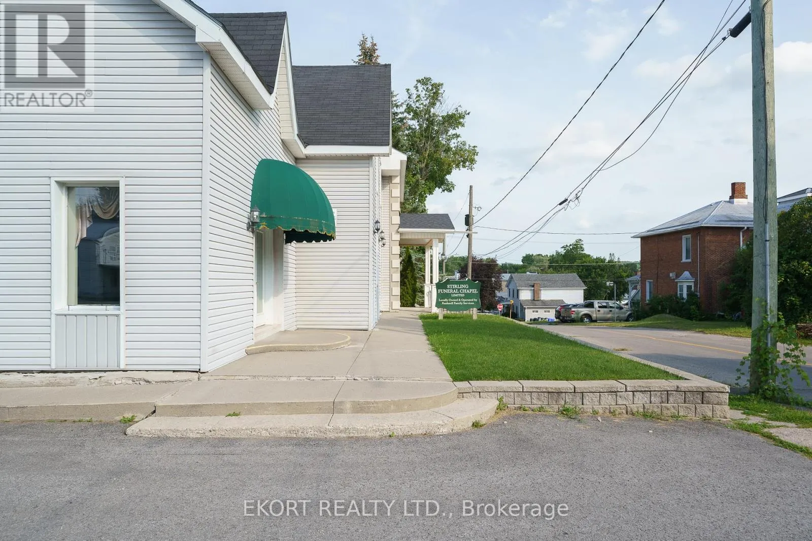 Gore Street and James Street Opportunity is knocking! This 1/2 acre corner lot offers a bright and spacious 9,313 sq ft building in Stirling, Ontario. This well-maintained home with added modern addition was used as a funeral home, but the property and building lends itself for possible rezoning for residential multi-residential building, retirement community, or a nursing home with potential to expand for more beds. With rezoning, a new owner could open a dental office, medical centre, or professional office spaces. Many notable features such as the electrical fireplace, fire alarms, security system, sound system, service lift, solid concrete floors, open areas for possible meetings or larger service gatherings, and large parking area. Over the last decade the whole building has been renovated including: all new electrical, plumbing, drywall, and insulation. Additionally, a new 3-ton HVAC system (2021), new rubber membrane roof, new shingles, and new furnace (2021) were also installed. (id:27476)