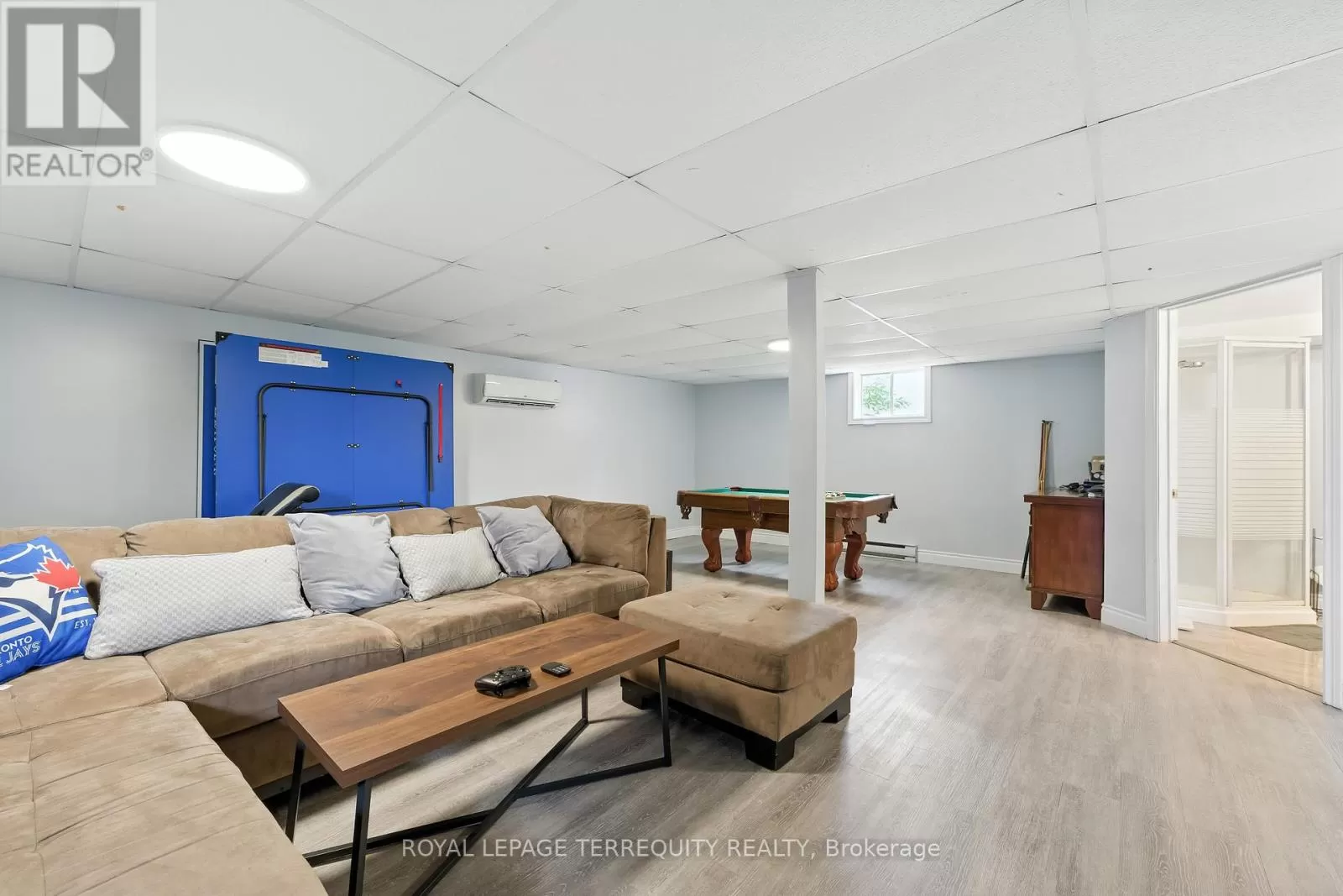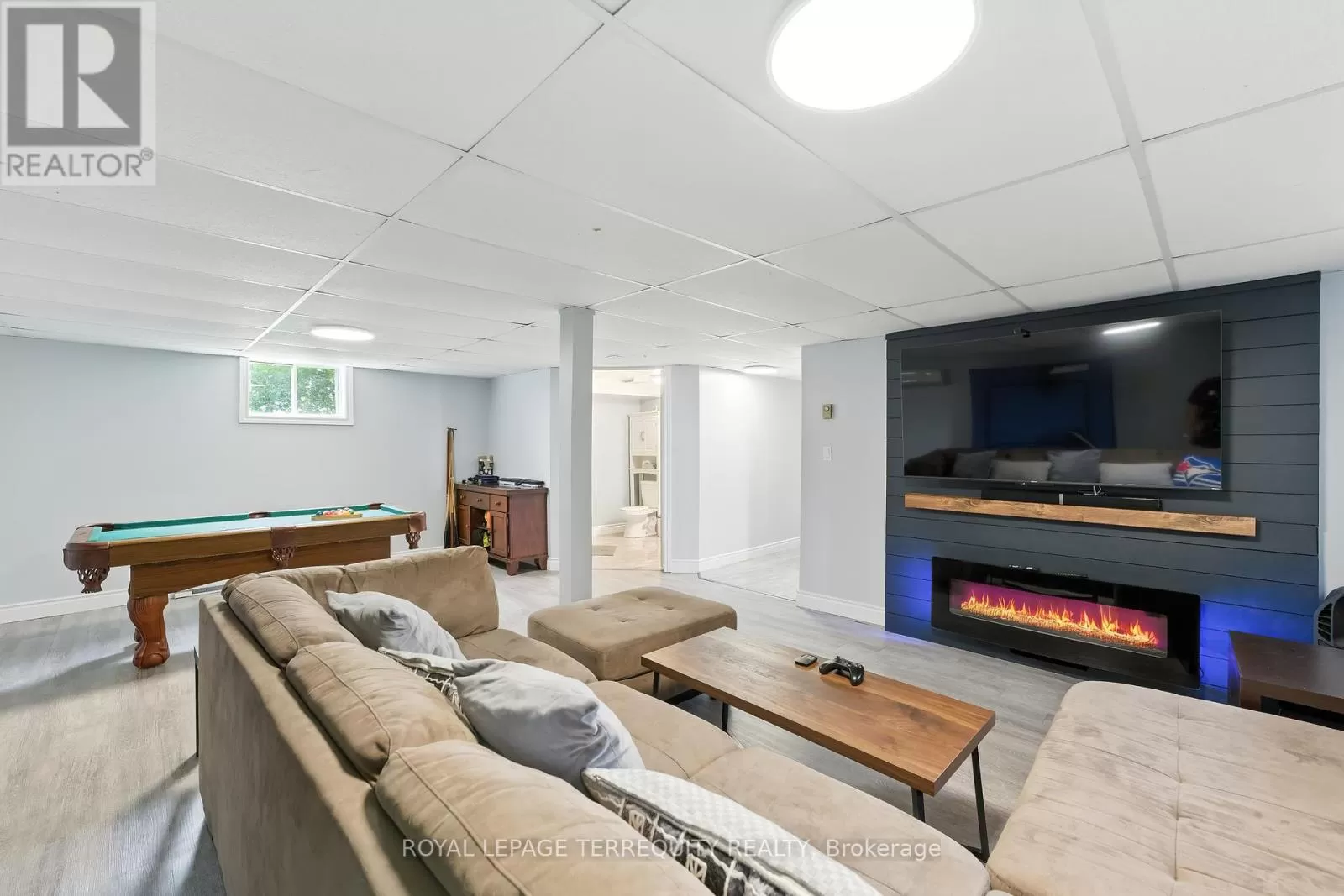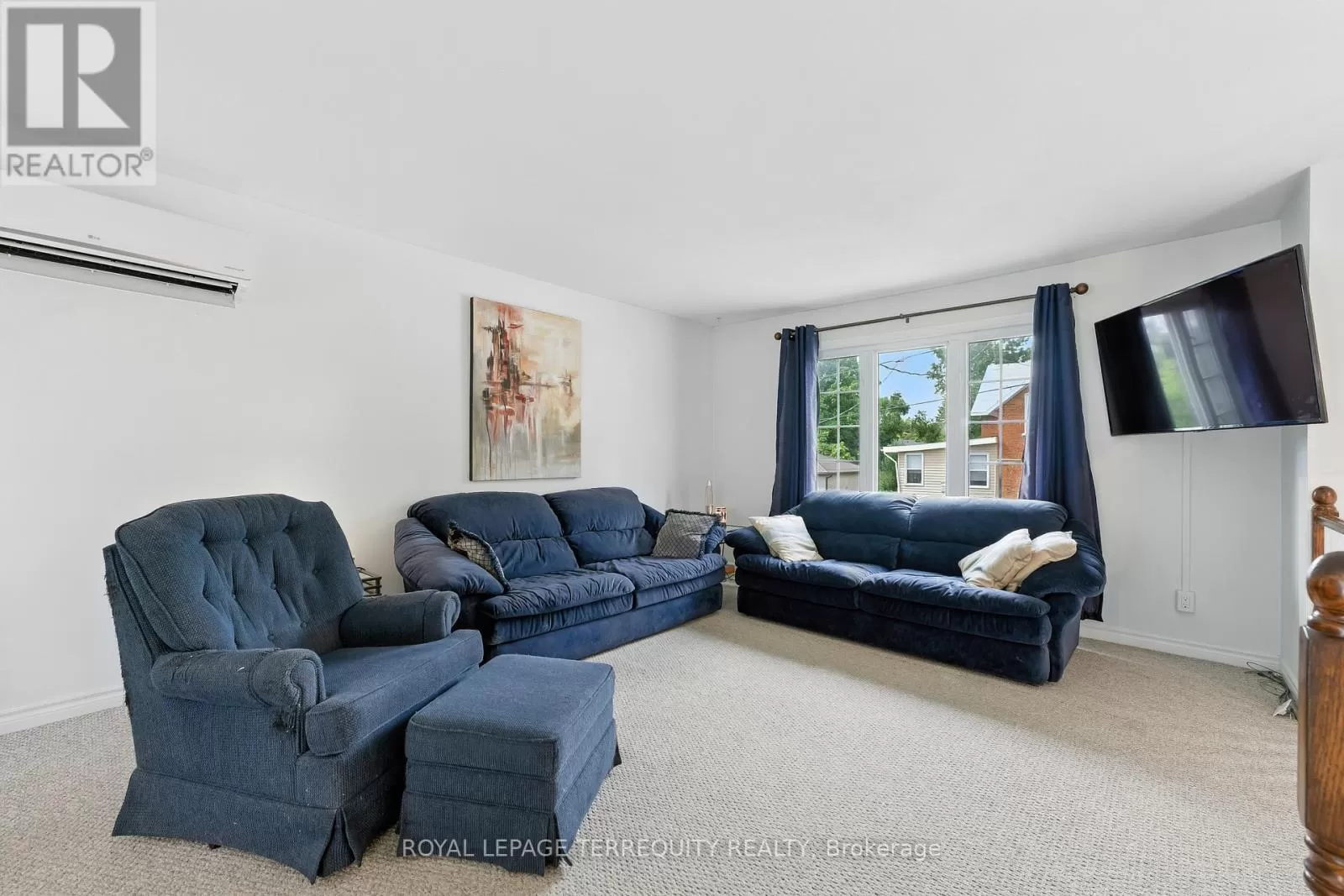 Cross Streets: William St. and Mill St. ** Directions: HWY 401 East to Glenn Miller Rd north to Stirling. Located in the heart of Stirling's quaint village, yet quietly tucked in on an interior street 211 William St. is sure to impress with its stylish curb appeal in modern grey vinyl siding & statement black front door inviting you to the polished tiled entry. 5G Rogers wireless internet available. Many updates including light up mirror, tub surround, shower head, toilet, tap fixtures, paint, cabinet door handles, TV feature wall with built-in electric fireplace, widened driveway, added door to laundry room, over range microwave, added240V outlet for electric car charging. More interior features include-Foyer sidelight window feature filters additional sunlight to the upper level open plan. An entertainers delight in this bright living space. Ample kitchen cabinetry in timeless white with complimenting slate toned countertops. Stainless steel appliances included + bonus dishwasher here. Detached island overlooks the spacious dining & living painted in trending white, down the hall with amazing closet storage including the custom pantry. Ideal family living with 3 bedrooms on the main floor & 4 piece bath. Enjoy the deep soaker tub with armrests. Fully finished lower level offers a brighter basement with this popular raised bungalow design. Coat closet directly to the base of the stairs & open to massive recreation room, 4th bedroom & second bath. Dedicated laundry & storage rooms for your convenience. Impressive exterior rear views from the elevated deck overlooking your fully fenced yard with fire pit area & unobstructed sights. A cleaner & greener progressive heat pump heating & cooling system provides efficient living. Welcome home to this charming community celebrated for its lovely shops, entertaining theatre, recreation trail & close proximity to neighbouring towns. This move in ready home offers flexible closing options & is now available for your viewing.Act fast! (id:27476)