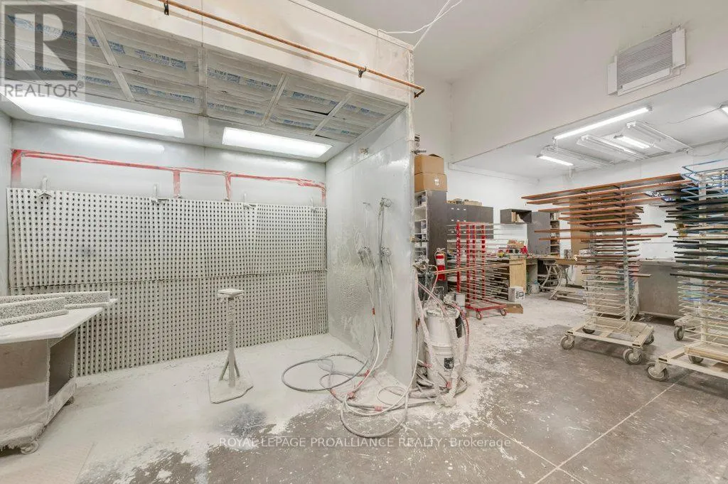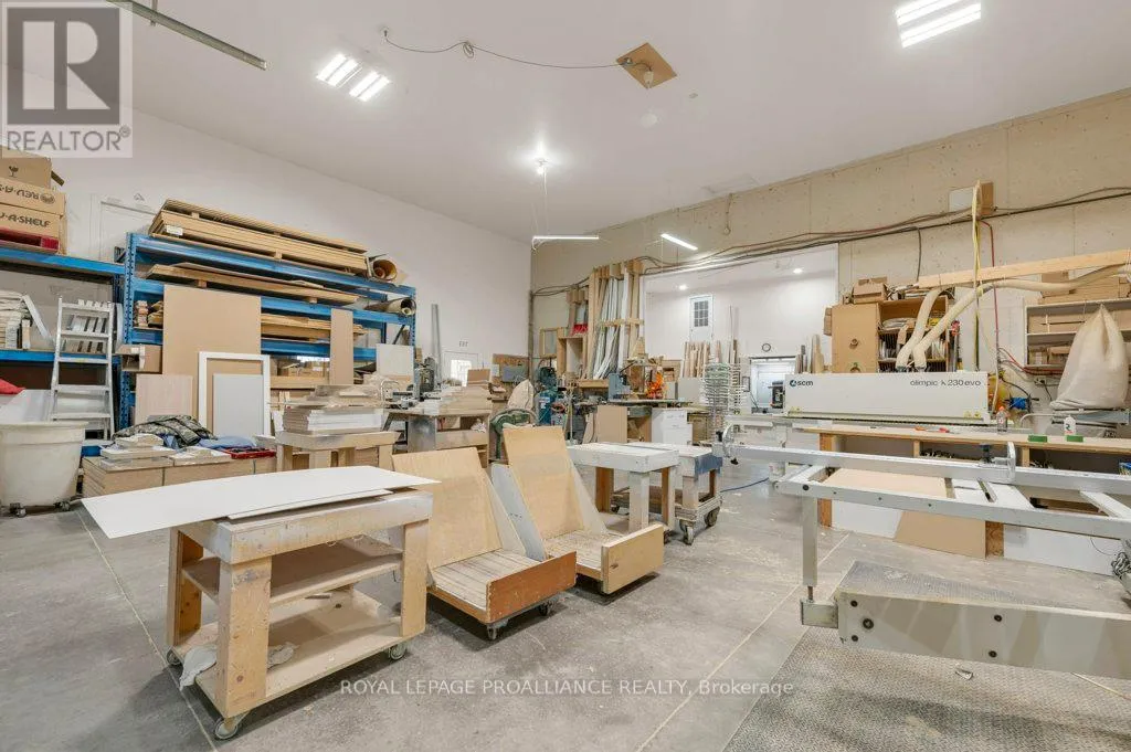 Campbellford Rd / West Front Street Located in the Villages of Stirling, just 20 minutes from the 401! This large industrial building comes complete with a one-bedroom apartment above-perfect for anyone who wants to live where they work or use this apartment as an income-producing rental. The main level features a bright showroom, massive workshop, paint room, lunch room, office, and bathroom, all with 16-foot ceilings and a 12x12 overhead door. The building is equipped with Phase 1 Hydro, municipal services, a natural gas furnace, and a heat pump. The former business was most recently used for cabinet making, making this an ideal setup for trades, woodworking, light manufacturing, contractors, or a wide range of business opportunities. The flexible floor plan allows for storage, production, or showroom space to suit your unique needs. Upstairs, the apartment offers comfortable living with its own heat pump, In-unit laundry with appliances included, and separate Hydro Metering from the main building. Spacious and practical, its ideal for an owner- occupier or as a rental to generate extra income. Backing directly onto the Heritage Trail, this property is ideally located for both work and lifestyle, offering endless possibilities. Upon closing, both the apartment and the industrial space will be vacant-ready for your business or your tenants. This is a fantastic opportunity-calling all business owners! (id:27476)