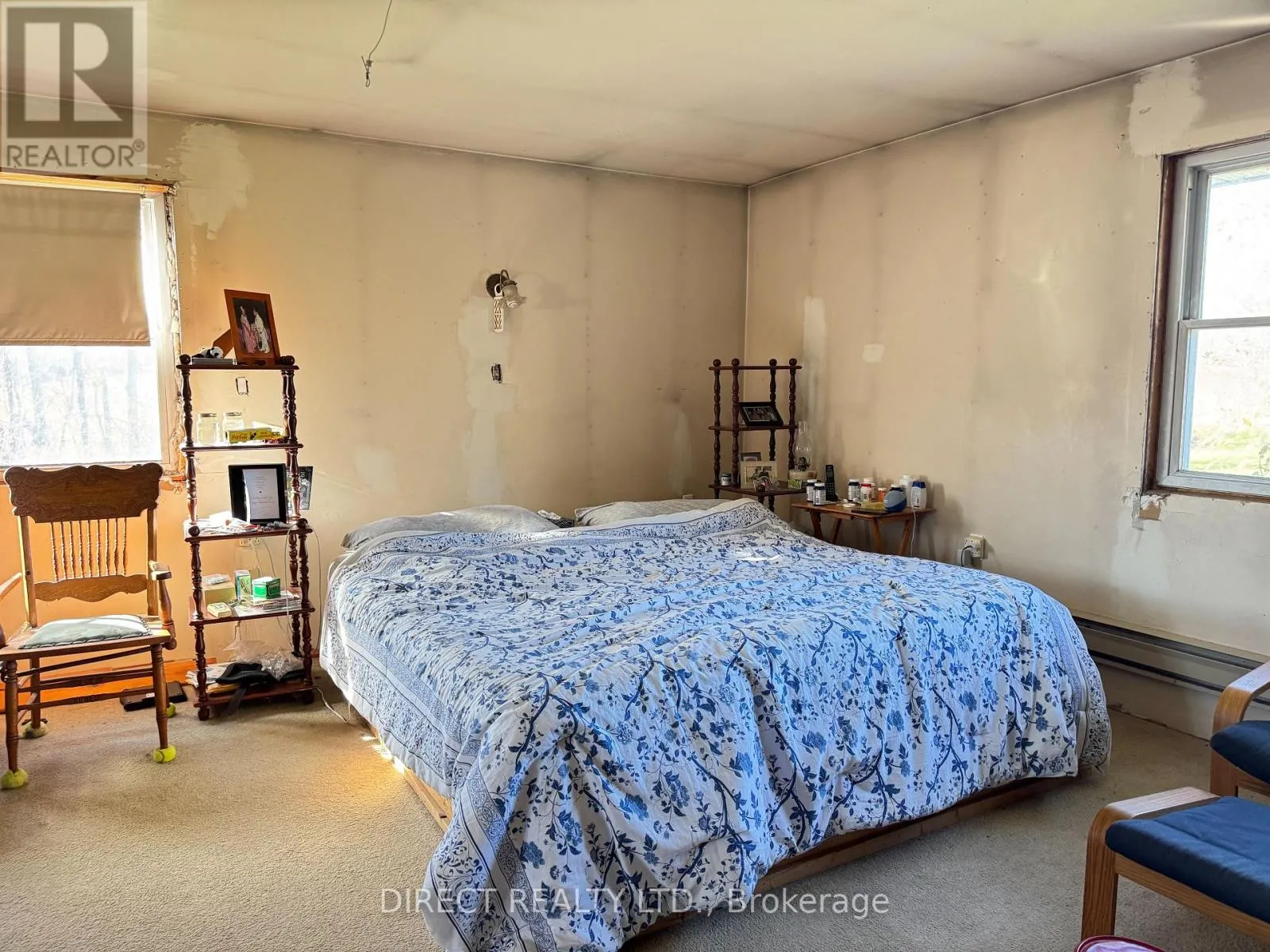 Cross Streets: Wellmans Road and Stirling-Marmora Rd. ** Directions: Hwy. 62 N. to Foxboro-Stirling Road to Stirling, N. on Stirling-Marmora Rd. to Wellmans Rd. 35-acre hobby farm with approximately 20 acres of workable land, with the balance in woods and pasture. The home requires some cosmetic updates, but the structure is sound. Features include a spacious eat-in kitchen, living room, and main-floor laundry with a 2-piece bath. There is one bedroom on the main level with a 3-piece ensuite, plus three additional bedrooms in the basement. The basement is set up as an in-law suite with a kitchen and 3-piece bath. Shingles were replaced in 2012, and the heat pump is approximately 4 years old. A detached canvas Quonset-style garage measures about 60 x 27 feet. The property also includes a spring-fed pond and fronts on two roads. The land is gently rolling and offers a picturesque rural setting. (id:27476)