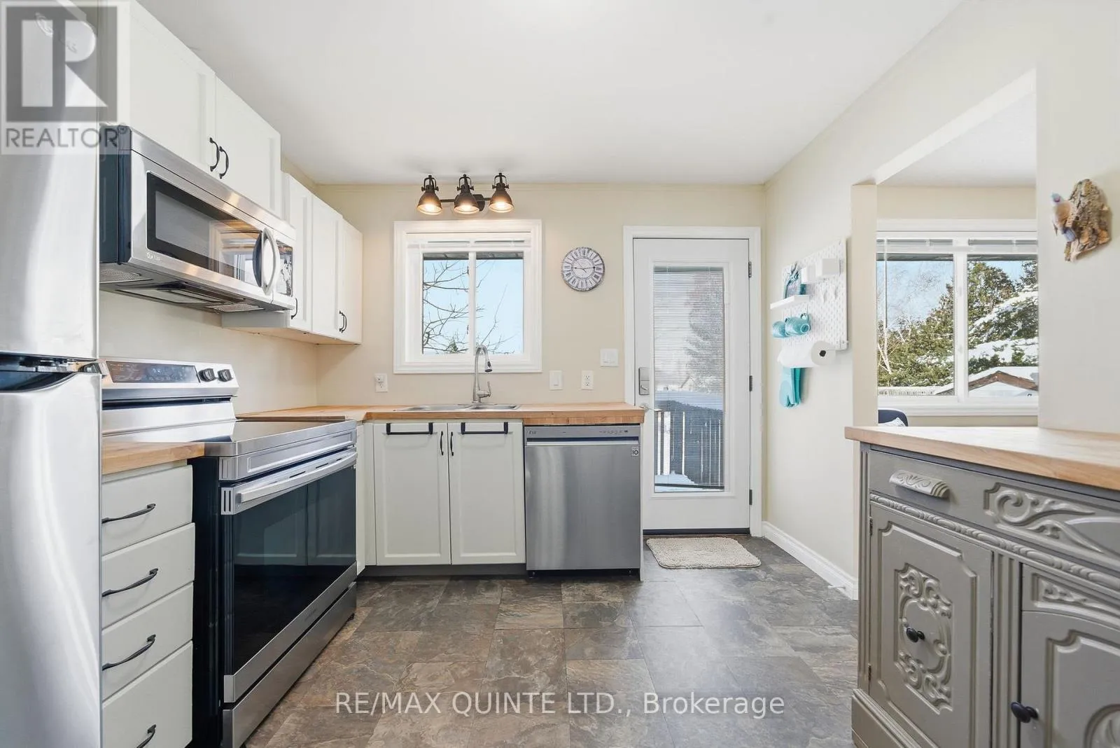 Cross Streets: Mill Street. ** Directions: Mill to Edward, on the left. Discover 140 Edward Street, where flexibility meets comfort in the heart of Stirling. Set on just over half an acre of beautifully landscaped property, this spacious home offers a layout that adapts to your lifestyle. Whether you're looking for a single-family home, multigenerational living, supplemental income, or simply extra space to sprawl. With five bedrooms and two full bathrooms, it can function as a generous single-family residence or easily transition into a self-contained in-law suite with its own entrance, kitchen, laundry, bathroom, and one or two bedrooms. Inside, updated finishes are complemented by a freshly painted main floor and new custom blinds in the living room, dining room, kitchen, and one bedroom, enhancing both style and privacy. The bright kitchen features butcher block counters and a functional pass-through. The main level also offers a spacious primary bedroom and two additional bedrooms. A laundry hookup is available on the main level for added convenience. The lower level includes two more bedrooms, a full bathroom, a second full kitchen, a large laundry and utility room, a rec room ideal for a home gym, a cozy family room with a gas fireplace, and excellent storage. Outdoors, enjoy curated gardens, a west-facing deck, mature trees, and a walking path that loops around the property. The attached single-car garage provides space for a vehicle and a workshop, with additional storage in the garden shed. A double-wide driveway accommodates up to six vehicles. Recent updates include windows (2022), heat pump (2022), driveway paving (2025), fresh interior paint (2026), and custom blinds (2026). For outdoor enthusiasts, a trail beside the property connects to local routes and the Trans Canada Trail. Located in a quiet, welcoming neighbourhood 25 minutes from CFB Trenton and 20 minutes to Highway 401, this home offers a rare combination of space, charm, and versatility. Half-acre lot conveniently connected to town water and sewer. (id:27476)