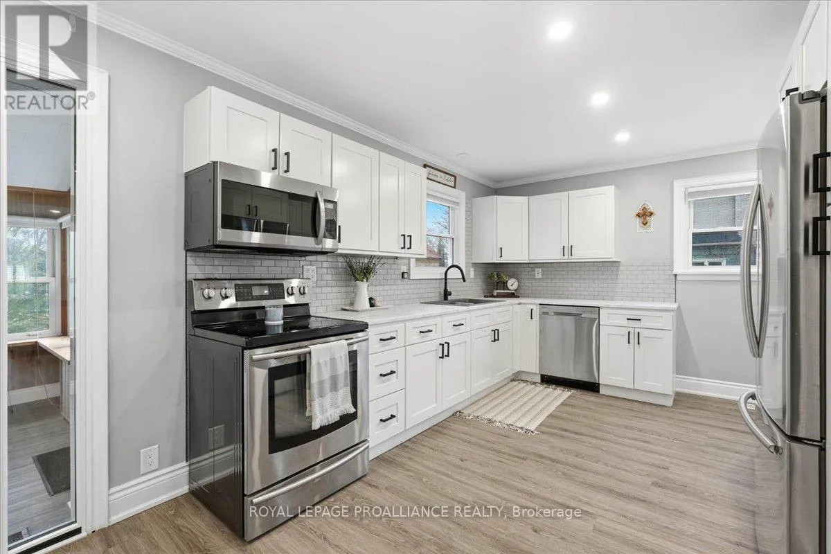 Cross Streets: County Road 14. ** Directions: County Rd.14 to John Street. Backing directly onto Henry Street Park and just a short walk to Main Street, this bungalow offers both convenience and a setting that's hard to come by. 3-bedroom, 2-bathroom bungalow set in the village of Stirling. The home features an updated kitchen and bathroom, along with an open main living area that creates a comfortable and functional space for everyday living. Two enclosed sunrooms add valuable additional square footage, offering bright, flexible spaces ideal for relaxing, entertaining, or enjoying the surrounding views through the seasons. Recent updates throughout the home enhance both comfort and usability, making it a move-in ready option. The full walkout basement provides excellent potential for extended living space or in-law capability. Forced air gas heating and central air conditioning ensure year-round comfort. Outside, the property offers a deck, fully fenced yard, and a private double driveway with parking for up to six vehicles. (id:27476)
