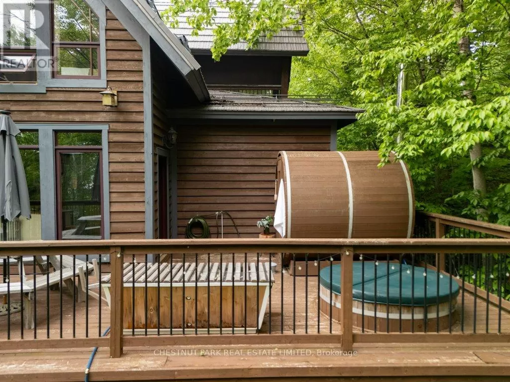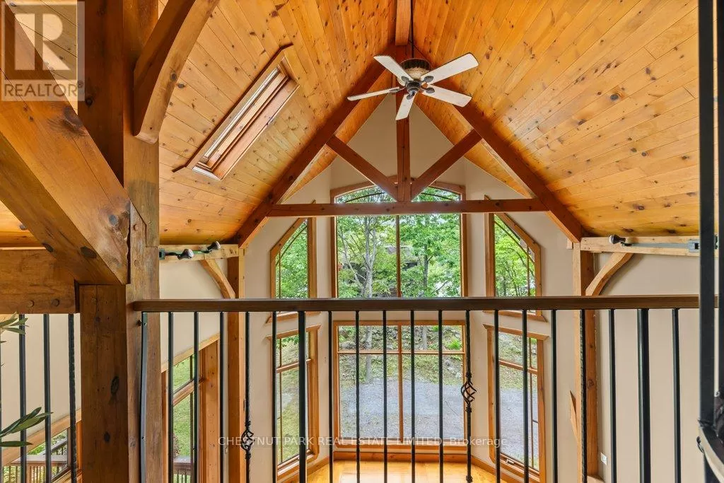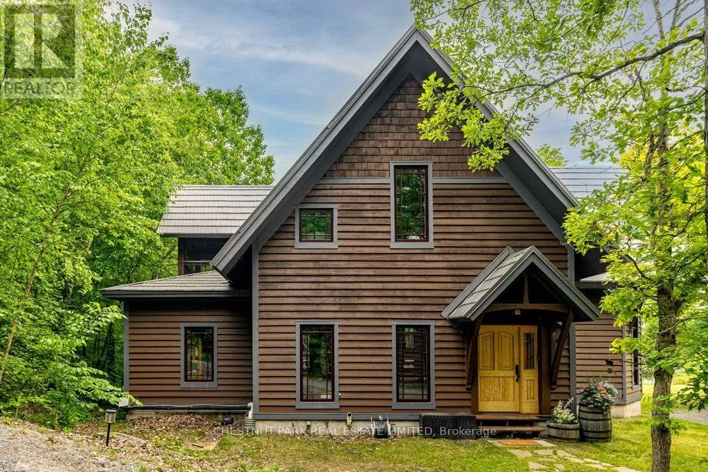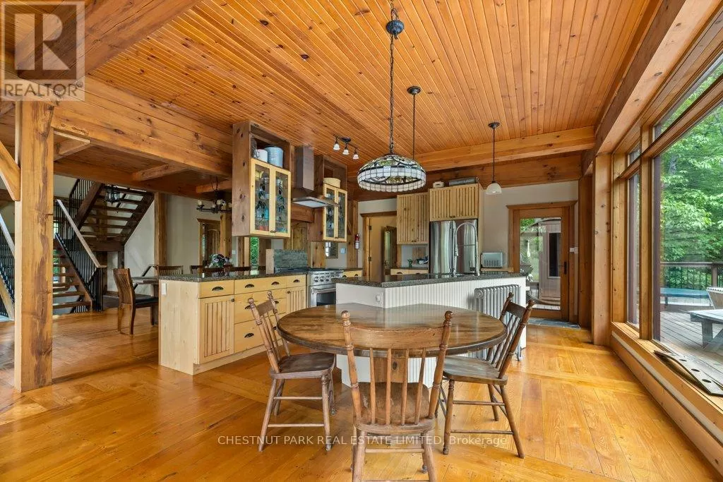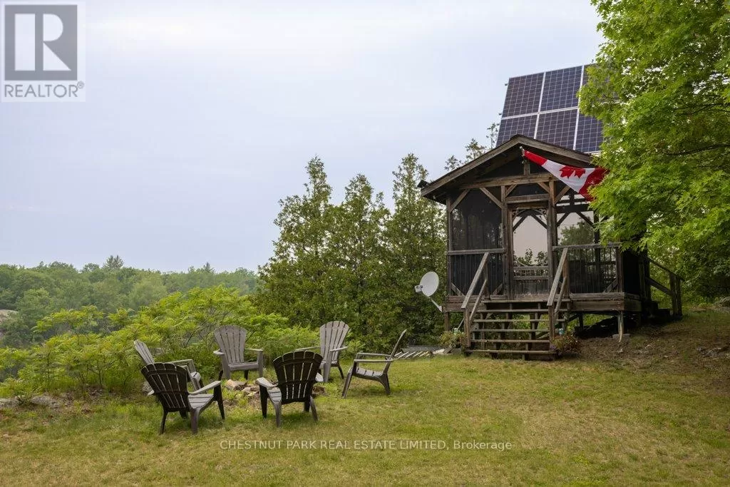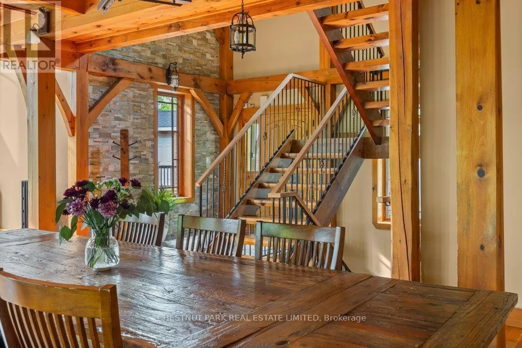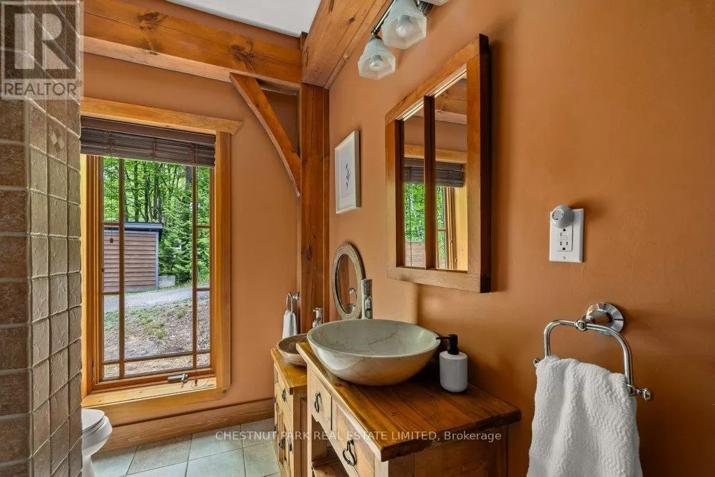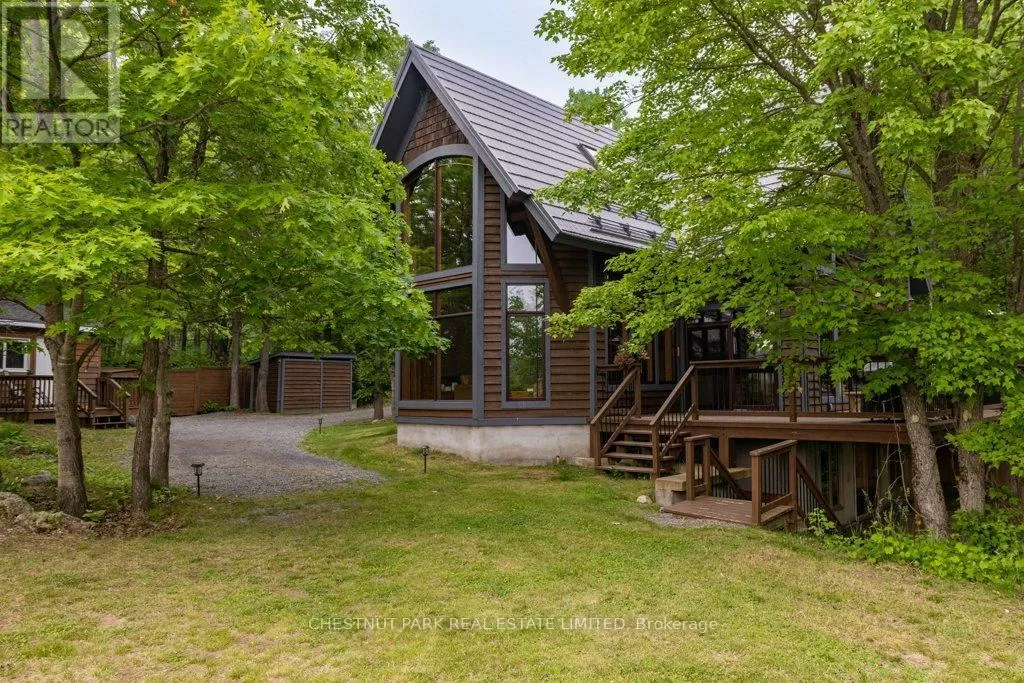 Cross Streets: Highway 15 and Highway 4. ** Directions: County Rd 4 to Highway 15. Go north on Highway 15 to Gull Creek Ln, turn left and go 2km to 488. Welcome home to 488 Gull Creek Lane! A stunning timber frame home that features over 4,000 sq ft of living space, 5 bedrooms, 3 bathrooms on the crystal-clear waters of Sheffield Long Lake, just north of Tamworth. Expertly crafted with true timber joinery and no nails, this one-of-a-kind architectural gem features soaring cathedral ceilings, massive floor-to-ceiling windows, beautiful hardwood floors, and an open-concept layout filled with natural light. The chef's kitchen offers granite countertops, stainless steel appliances, and abundant workspace, flowing seamlessly to a wrap-around deck complete with sauna, hot tub, cold plunge, BBQ, and plenty of seating. The walkout basement includes a large rec room, two additional bedrooms, and a flex space ideal for a gym or studio. Enjoy two acres of property with over 350 feet of pristine private waterfront with a large dock and swim platform, plus a charming bunkie/art studio and a screened, covered patio perfect for entertaining. Completely off-grid, this property boasts a $100K solar and battery system, radiant in-floor heating, a drilled well, and a metal roof for year-round comfort. Located just 2h 45m from Toronto, 2h from Ottawa, and 45 minutes from Kingston, this is lakeside living at its finest! (id:27476)