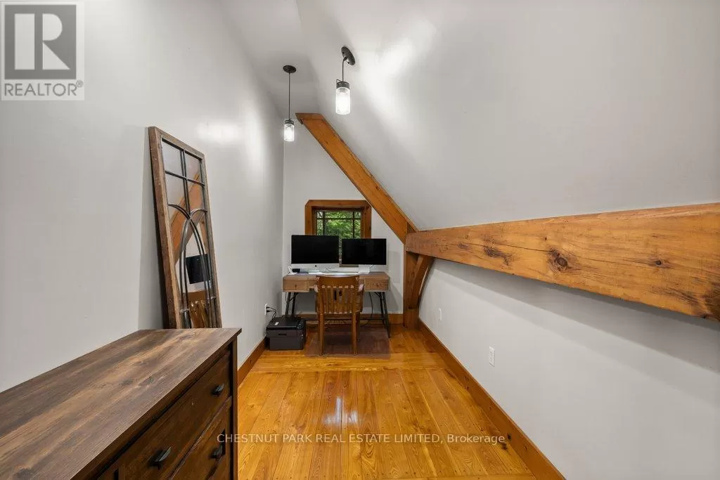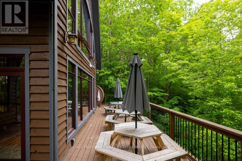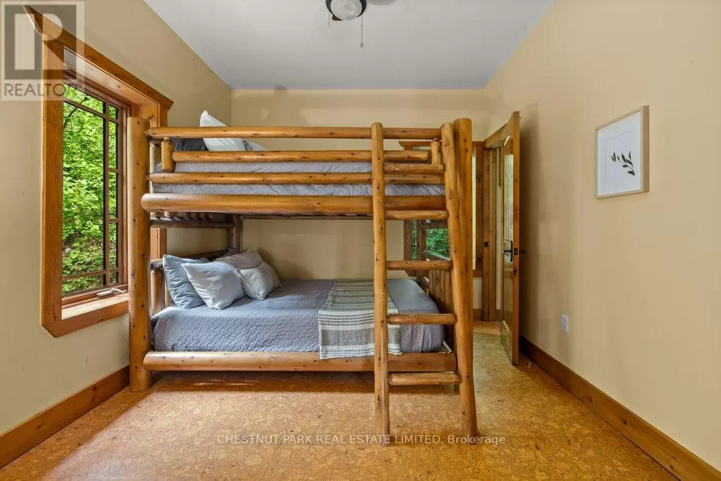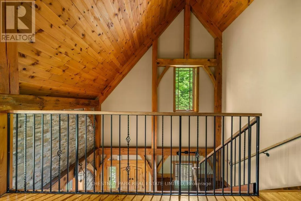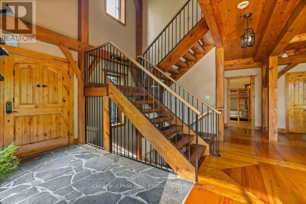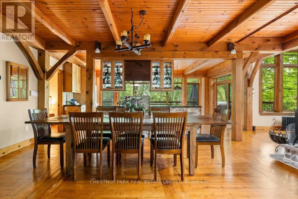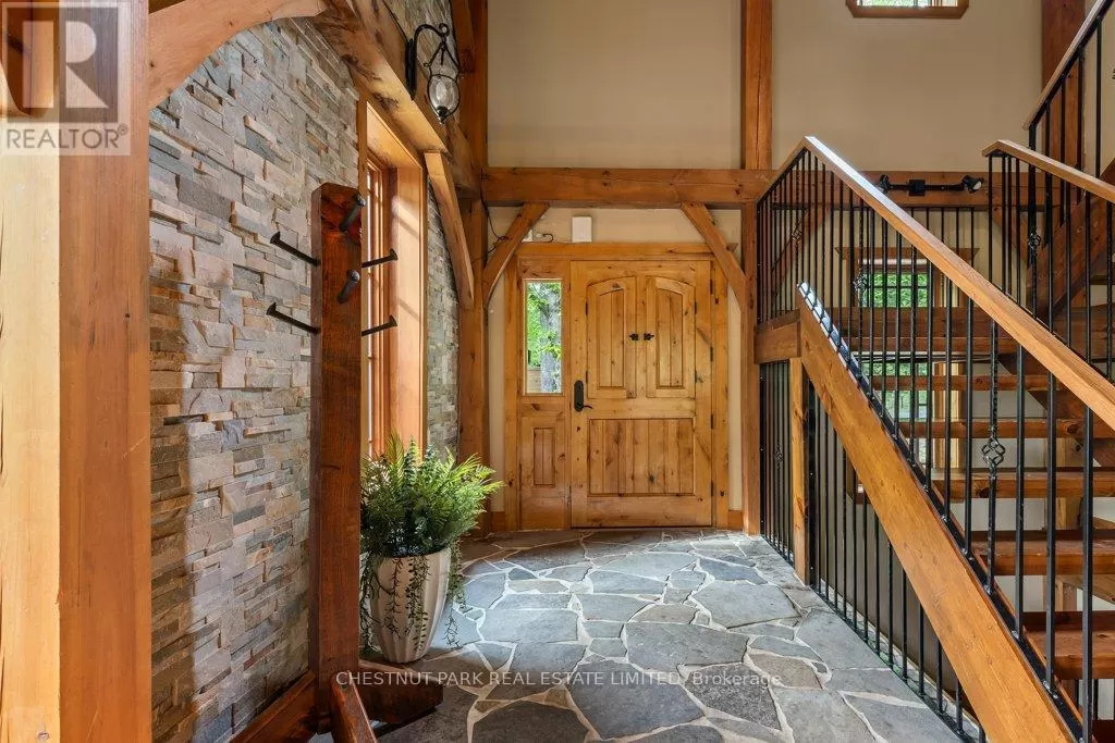 Cross Streets: Highway 15 and Highway 4. ** Directions: County Rd 4 to Highway 15. Go north on Highway 15 to Gull Creek Ln, turn left and go 2km to 488. Welcome home to 488 Gull Creek Lane! A stunning timber frame home that features over 4,000 sq ft of living space, 5 bedrooms, 3 bathrooms on the crystal-clear waters of Sheffield Long Lake, just north of Tamworth. Expertly crafted with true timber joinery and no nails, this one-of-a-kind architectural gem features soaring cathedral ceilings, massive floor-to-ceiling windows, beautiful hardwood floors, and an open-concept layout filled with natural light. The chef's kitchen offers granite countertops, stainless steel appliances, and abundant workspace, flowing seamlessly to a wrap-around deck complete with sauna, hot tub, cold plunge, BBQ, and plenty of seating. The walkout basement includes a large rec room, two additional bedrooms, and a flex space ideal for a gym or studio. Enjoy two acres of property with over 350 feet of pristine private waterfront with a large dock and swim platform, plus a charming bunkie/art studio and a screened, covered patio perfect for entertaining. Completely off-grid, this property boasts a $100K solar and battery system, radiant in-floor heating, a drilled well, and a metal roof for year-round comfort. Located just 2h 45m from Toronto, 2h from Ottawa, and 45 minutes from Kingston, this is lakeside living at its finest! (id:27476)