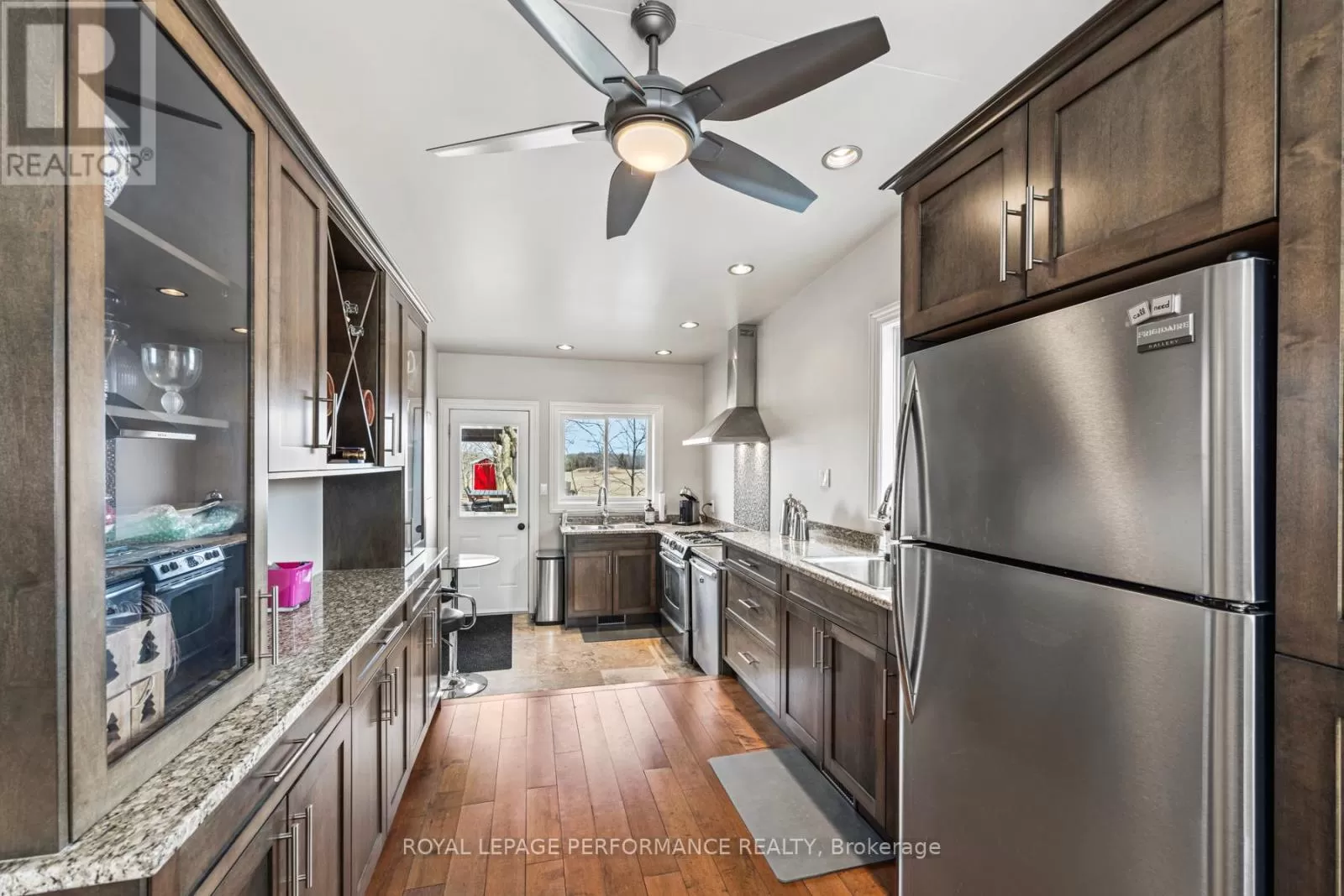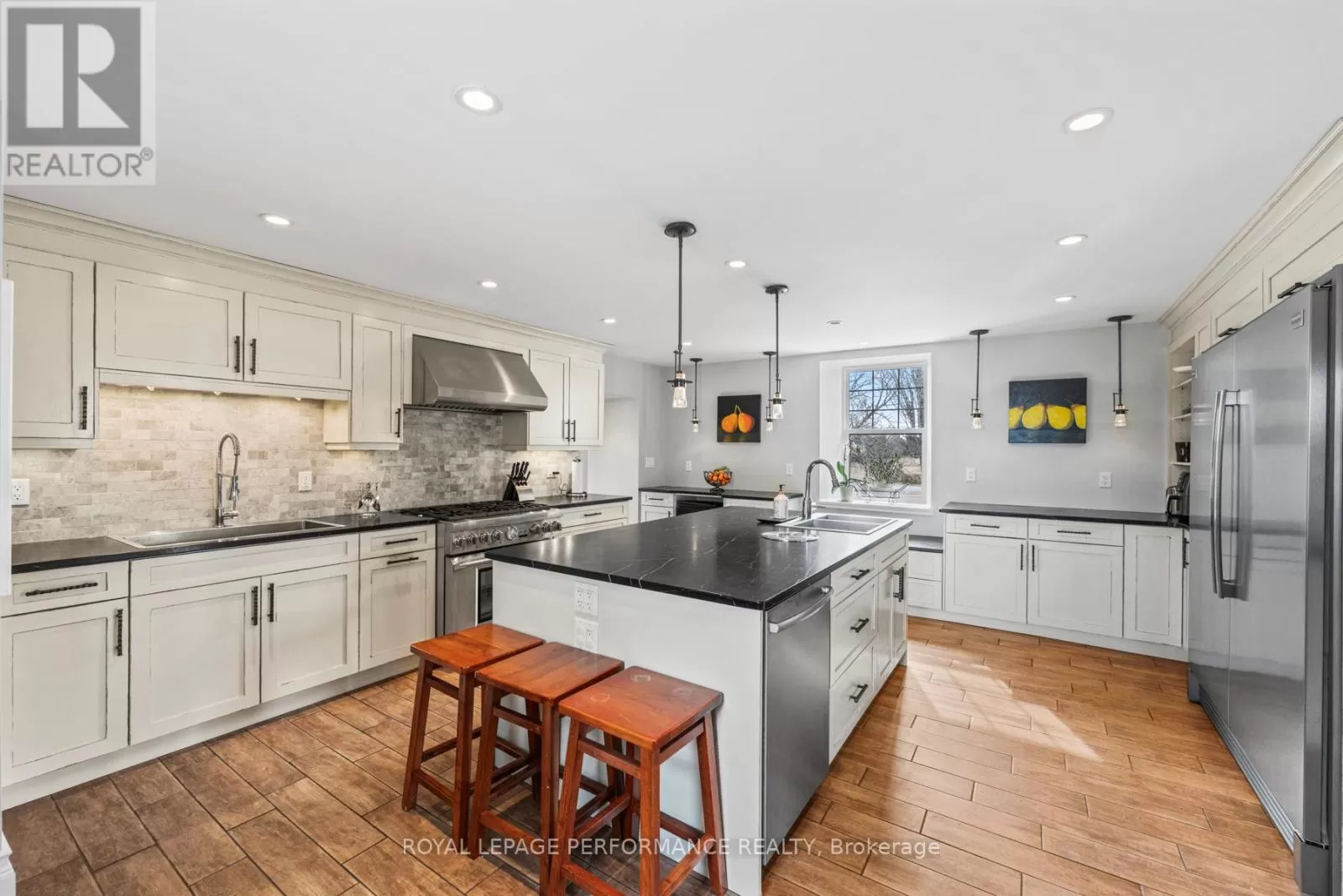 County Road 6 and East on Huffman Road An exceptional opportunity for the entrepreneurial farmer awaits with this nearly 200-acre organic farm just 30 minutes north of Kingston, Ontario. Ideal for those wanting hands-on ownership, healthy rural living, and sustainable income. The property offers diverse, proven revenue streams and strong growth potential. The fully renovated historic limestone farmhouse includes five bedrooms, three bathrooms, hardwood and travertine floors, custom cabinetry, soapstone and granite countertops, spacious living areas, a family room with built-ins, and a yoga studio in the converted garage. A separate granny suite with its own kitchen, laundry, furnace, and entrance is perfect for multi-generational living or on-site staff. Agricultural income sources include organic hay production, pasture for finishing cattle, a mature sugar bush with a professional sugar shack for maple syrup, cedar pole harvesting for landscaping and fencing, and a modern 40x80 insulated mushroom barn (built 2021) with advanced incubation, fruiting rooms, and composting systems. Infrastructure is ready for future hydroponic or greenhouse development. Passive income comes from a 10KW micro-fit solar installation with a Hydro-One contract through 2031. Additional features include a 90 Quonset hut for equipment storage, multiple barns and outbuildings, two septic systems, and fully fenced pastures. Registered with the Ontario Federation of Agriculture (OFA) and Provincial Premises Registry (PPR), this farm benefits from a supportive rural network and access to experienced local workers, making expansion and hiring easier. Combining historic charm with modern infrastructure, this property offers a rare chance for a hands-on entrepreneur to build equity, expand markets, and enjoy a fulfilling rural lifestyle while contributing to the growing demand for sustainable, locally produced food in Ontario. (id:27476)