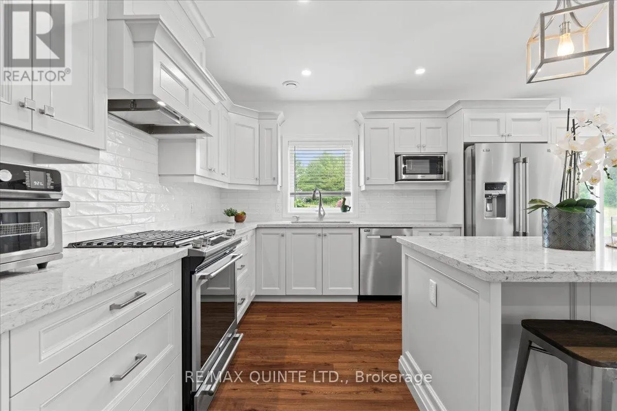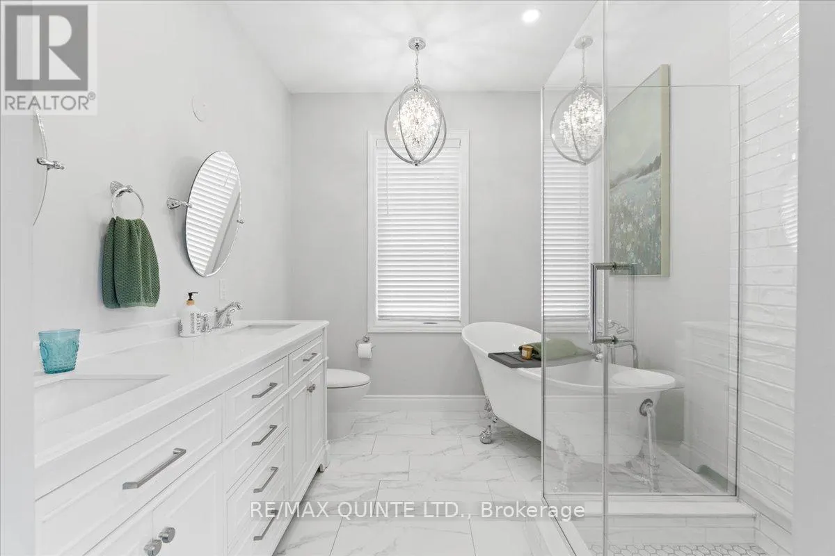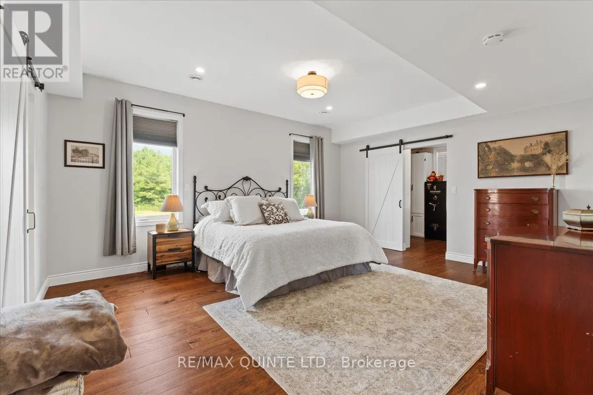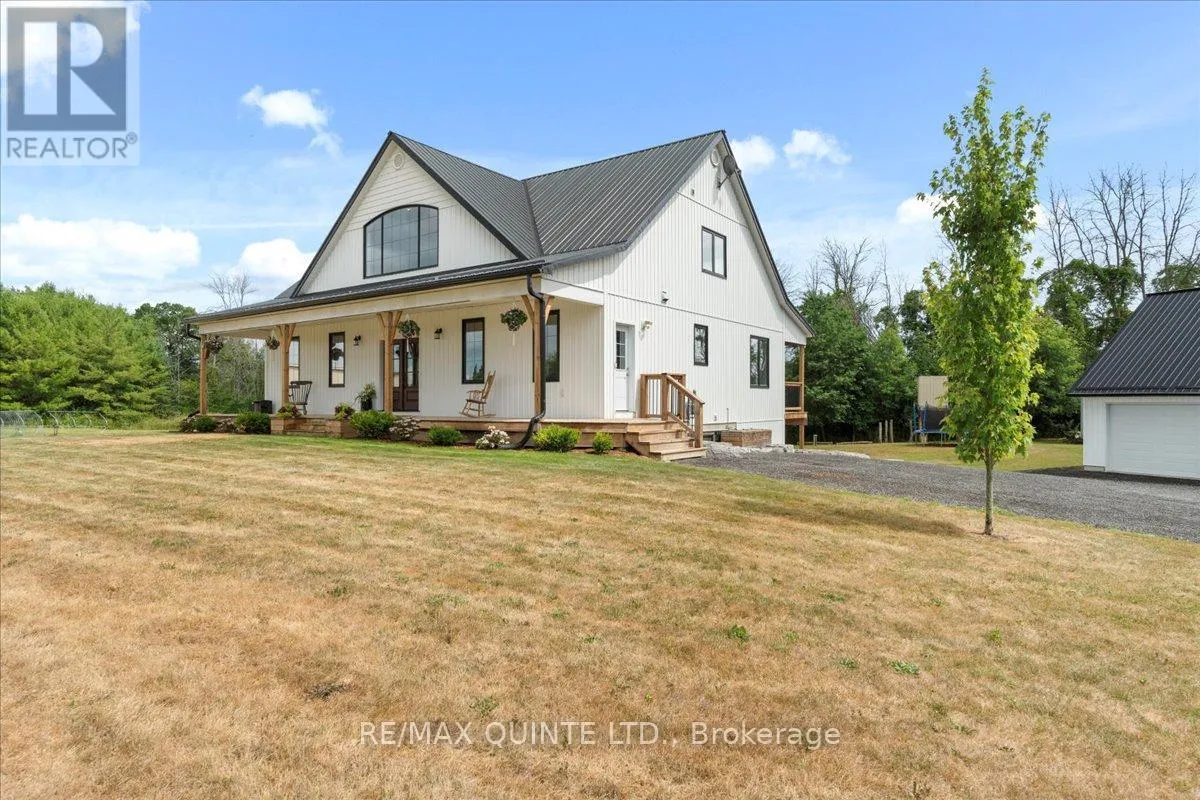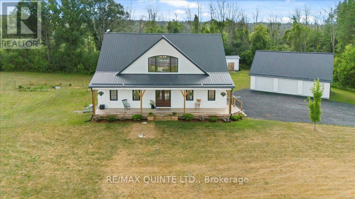 Cross Streets: County Rd 1 and County Rd 18. ** Directions: Take Palace Rd north to County Rd 1 turn left. This custom-built 2019 home blends modern functionality with timeless farmhouse charm. Designed for multi-generational living, entertaining, and family life, it offers 3 fully finished levels, soaring ceilings, and bright open-concept spaces throughout. Enter under the covered porch, the main-floor primary suite is a luxurious retreat with a clawfoot tub, glass and tile walk-in shower, double vanities, and a walk-in closet. Upstairs, two generously sized bedrooms are connected to whimsical secret hideaways and each enjoys access to its own bathroom one with a private ensuite and the other with a semi-ensuite that also serves the loft/music space and games room. At the heart of the home is a stunning chef-inspired kitchen featuring floor-to-ceiling cabinetry, quartz countertops, a gas range, double wall ovens, an island with four stools, and a walkout covered balcony perfect for morning coffee barbeques, or evening relaxation. The adjacent great room is anchored by a gas fireplace flanked by bookshelves and filled with natural light from oversized windows. The fully finished walk-out basement includes a beautifully appointed in-law suite with three bedrooms, a full kitchen with island hello baking space! ,An open dining area, two electric fireplaces, in-floor radiant heating, private laundry, and two full bathrooms including a private ensuite with double sinks in the lower-level primary bedroom with walk in closet. Additional features include the 3 fireplaces (one gas and two electric), 6 bedrooms plus multiple bonus spaces, six bathrooms, two laundry spaces, mudroom with storage, lower level with in-floor heating. The detached three-car garage 30x40 foot garage with a 14x26ft loft, and 13x40ft of space with high ceiling (perfect for a car lift).. A spacious backyard completes the picture. Ideally located just minutes from town, this peaceful property offers flexibility and comfort for blended families, long-term guests, or anyone seeking space and style. (id:27476)