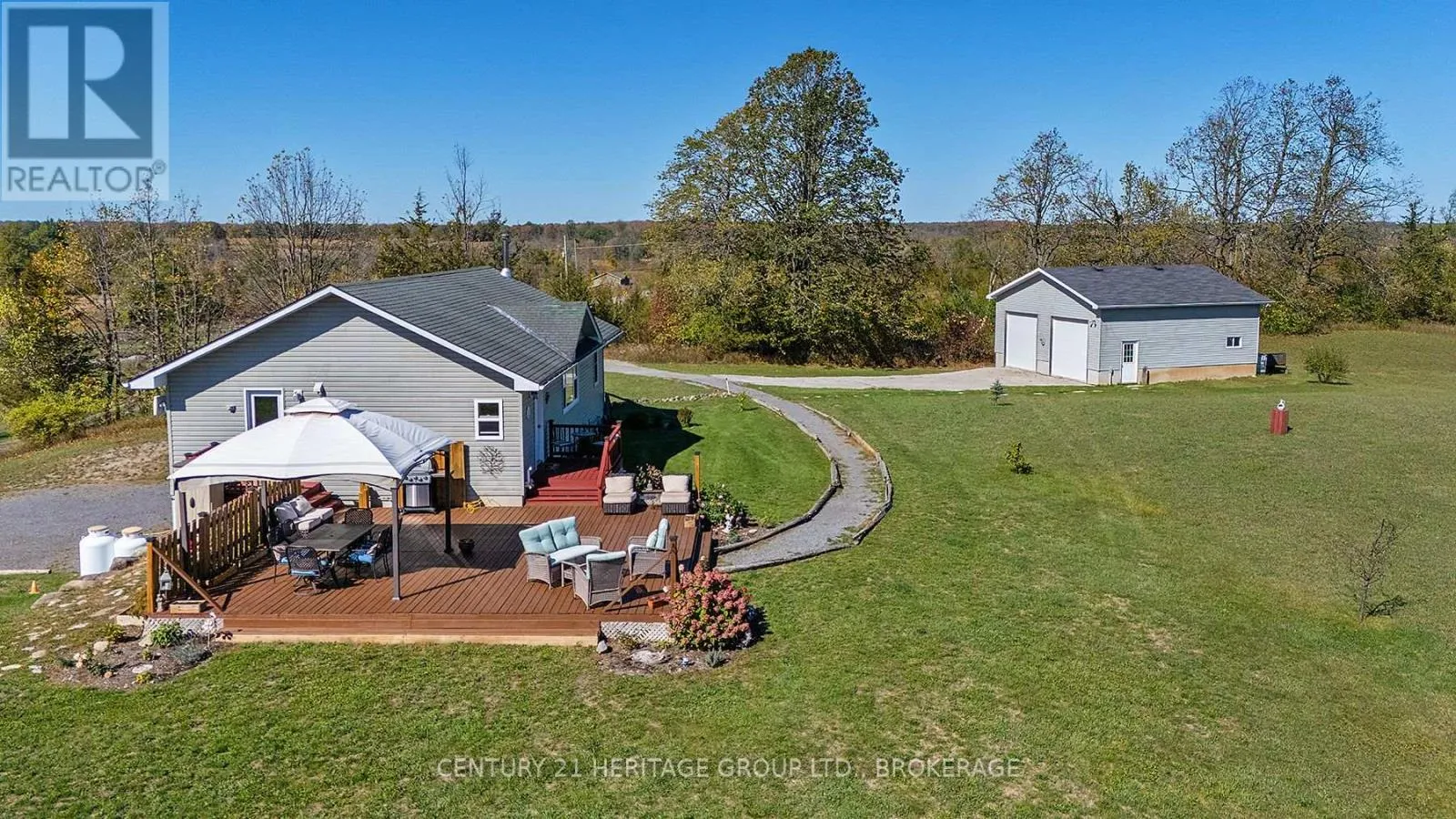 Frizzell and County Rd 41 Country home nestled on nearly 4 private acres! This well-maintained property offers 3 bedrooms on the main level, plus a recently finished walk-out basement with a double-door entrance, a full bathroom, and a 4th bedroom currently used as an office, perfect for guests or extra living space. The home is equipped with newer appliances (within the last 2 years), a furnace and water tank less than 2 years old, a water softener, a UV light, and air conditioning for year-round comfort. Outside, you'll find a spacious 30ft x 30ft detached 2-car garage/workshop, an ideal setup for mechanics or hobbyists with room for tools, equipment, and projects. The property also features two separate driveways with parking for up to 10 vehicles, a large 20ft x 28ft deck for entertaining, and a Dog Watch hidden dog fence to keep pets safe. With all these features, this property offers country living at its best and won't last long! (id:27476)