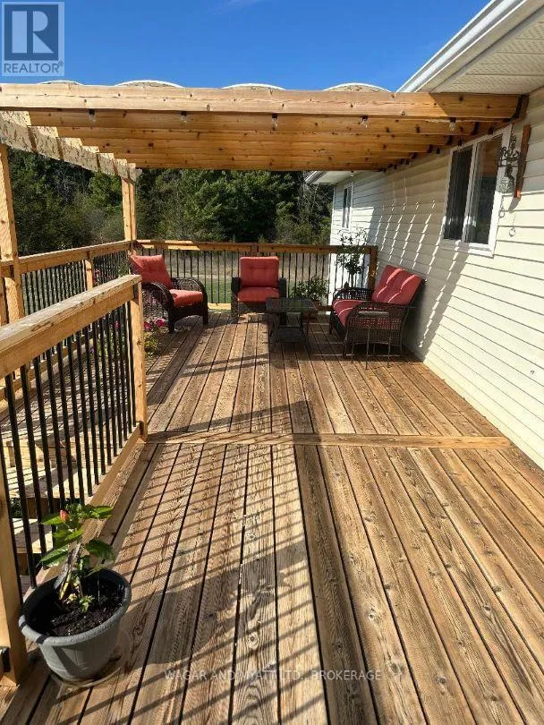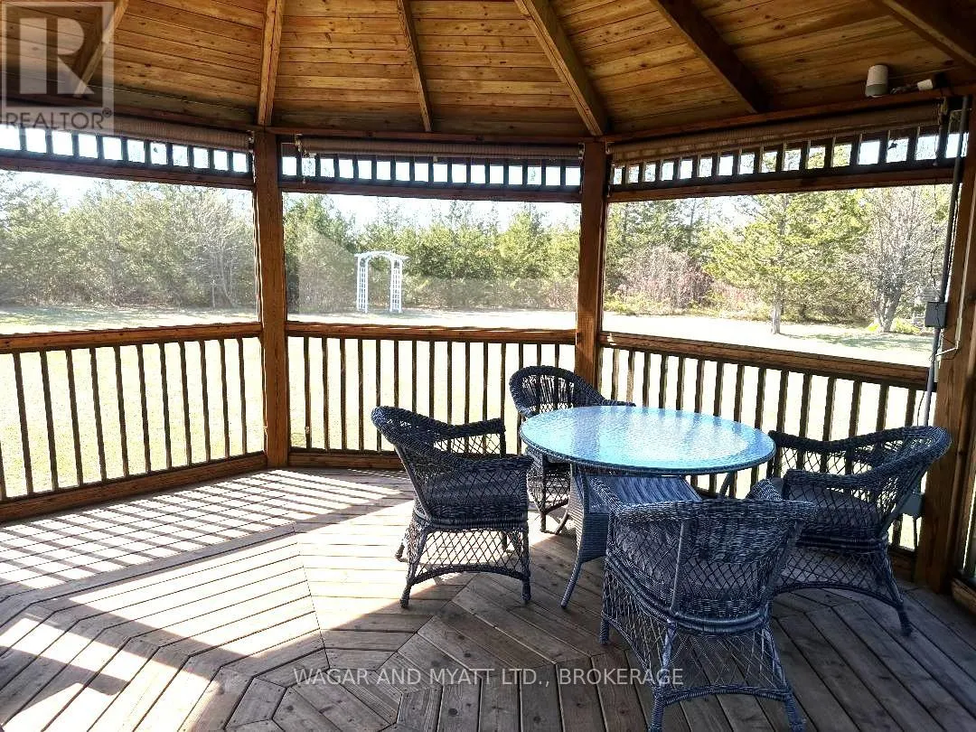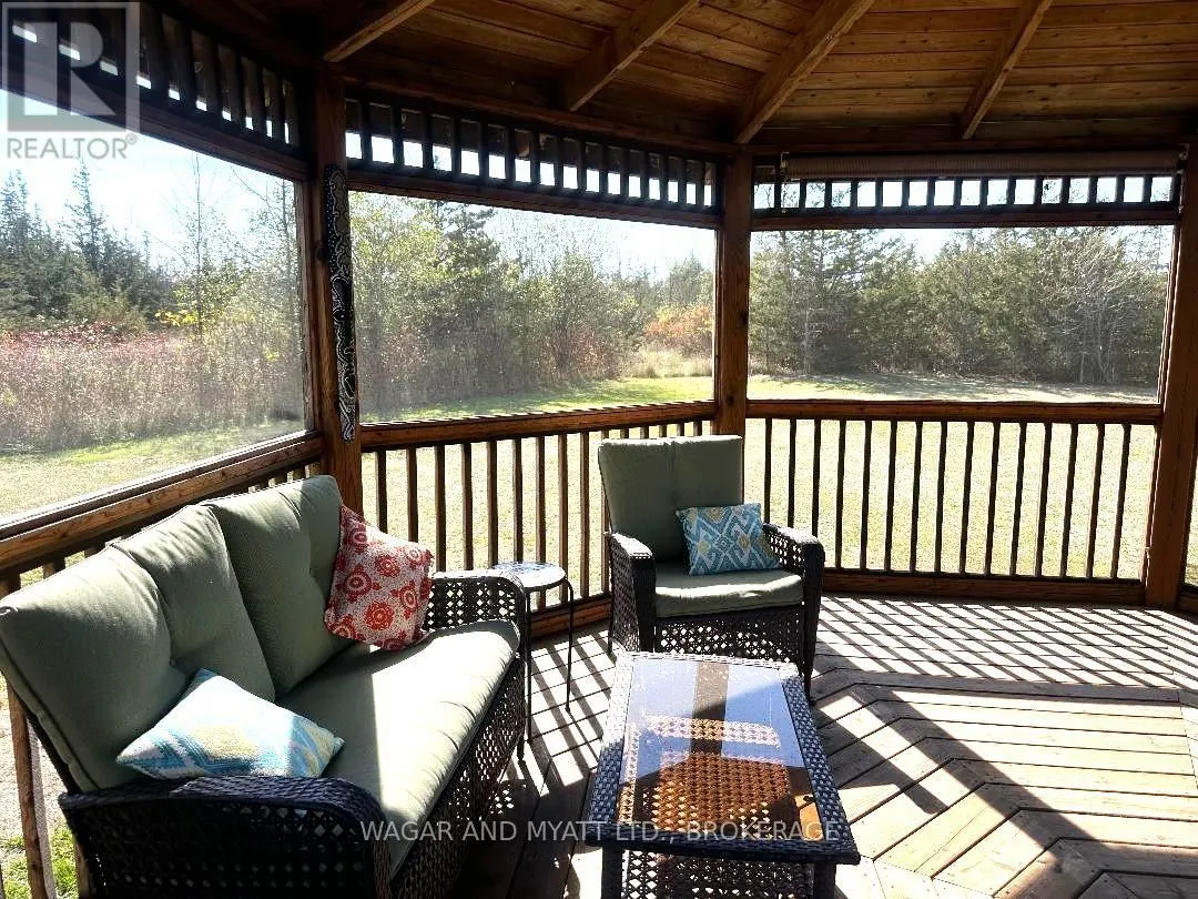 Cross Streets: Main St & Pincrest Rd. ** Directions: County Rd 1 East to Main St, Newburgh, Left On Main St. right on Pincrest Rd. Welcome to 120 Pinecrest Rd, located on a quiet cul-de-sac, adjacent to the quaint village of Newburgh. This 4 bedroom raised bungalow is situated on a private 4 acre parcel of land, enclosed with woodland and space to explore nature. Out-side enjoy your custom-built screened gazebo (powered) or spend time on your large cedar decking system over looking your private alluring property. Inside, the main level features pristine hardwood throughout, private dining, formal sitting area and a stunning custom Kraftmaid kitchen with granite countertop. The main floor primary bedroom has its own en-suite and walk in closet. The main bathroom has just been upgraded with new tiles and bathtub. The lower level is bright and spacious. Spend time with your family in the large cozy rec room with a propane fire place. The access of this area is amazing, walk-out to the back yard or access the huge double car garage through the large mudroom. Additionally, there is a 4th bedroom and a large area currently being used a storage could easily become a bedroom, office or den. Upgrades as follows: Roof 3 yrs, main bathroom 2025, 2017 New septic tank & tile bed, 2024 well pump & pressure tank 2015 main level windows and front door, new vinyl flooring main level 4 yrs (id:27476)