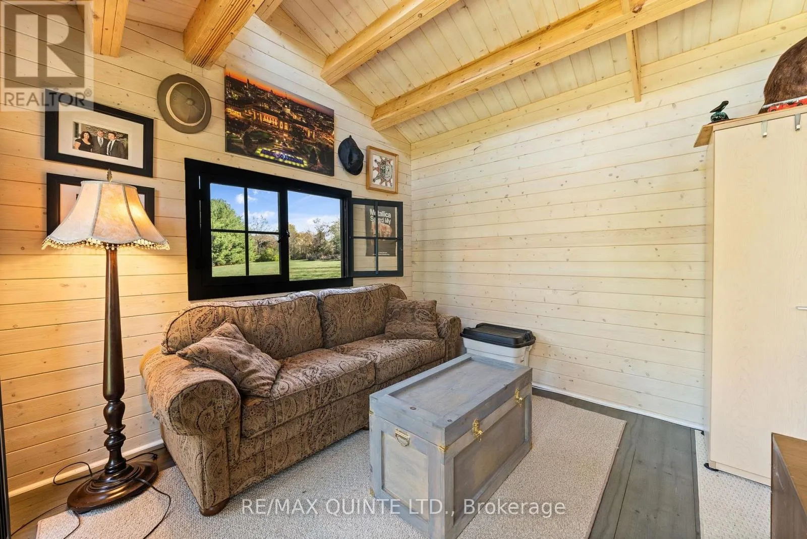 Cross Streets: Bethel Road. ** Directions: County Rd 6 - Left onto Bethel Rd turn right and keep right onto Galbraith Rd to home. Waterfront living at its finest! Your year-round Lakeside retreat awaits! Escape to the peaceful shores of beautiful Varty Lake and discover the perfect balance of tranquility, recreation, and modern comfort. This fully updated, two-bedroom waterfront home offers the lifestyle you've been dreaming of with panoramic lake views, a sandy shoreline, and stylish 2024 upgrades throughout. Whether you're retiring in comfort or commuting just 30 minutes to Kingston, this property offers the best of both worlds. Enjoy bright, open main-floor living featuring a cozy primary bedroom, a renovated 4-piece bath (2024), and a modern kitchen (2024) with sleek finishes and open flow. Stay warm year-round with cost-effective radiant in-floor heating powered by a new electric boiler (2024) and a woodstove for rustic charm. A 2-piece bath with laundry (2024) adds convenience. Upstairs, the loft-style second bedroom and landing provide flexible space for guests, an office, or hobbies. The 16' x 10' 160 sqft. New Bunkie Life bunkie (built in 2024) offers additional private living or creative space perfect as a guest suite, studio, or remote workspace. Step outside to entertain or unwind in the 16' x 12' screened gazebo, or enjoy the deck overlooking approximately 80 feet of waterfront, including 20 feet of sandy beach. Varty Lake's clear, calm waters are ideal for swimming, kayaking, and fishing. With key updates including a roof (2020), eco-system septic, woodstove, and extensive 2024 renovations, this home is truly move-in ready. The large property includes storage buildings and room to add a garage, greenhouse, or garden. Whether you're retiring lakeside or balancing work and play, this is a rare opportunity to live the waterfront lifestyle you've always wanted close to Kingston, yet a world away from the everyday. (id:27476)