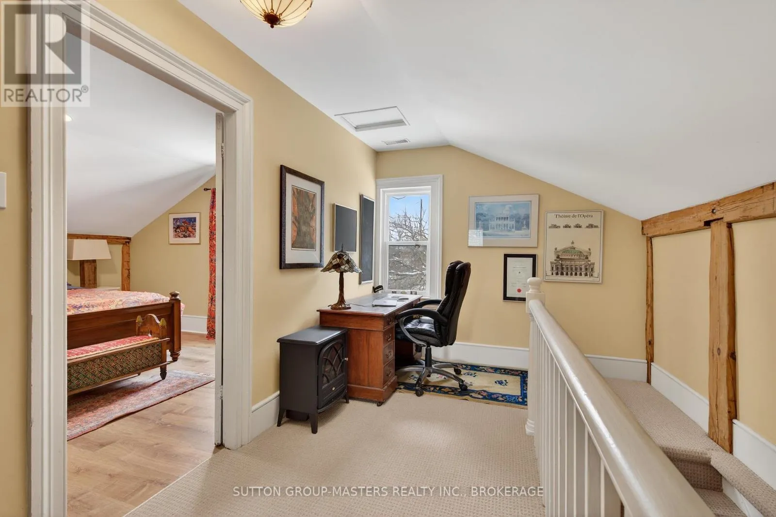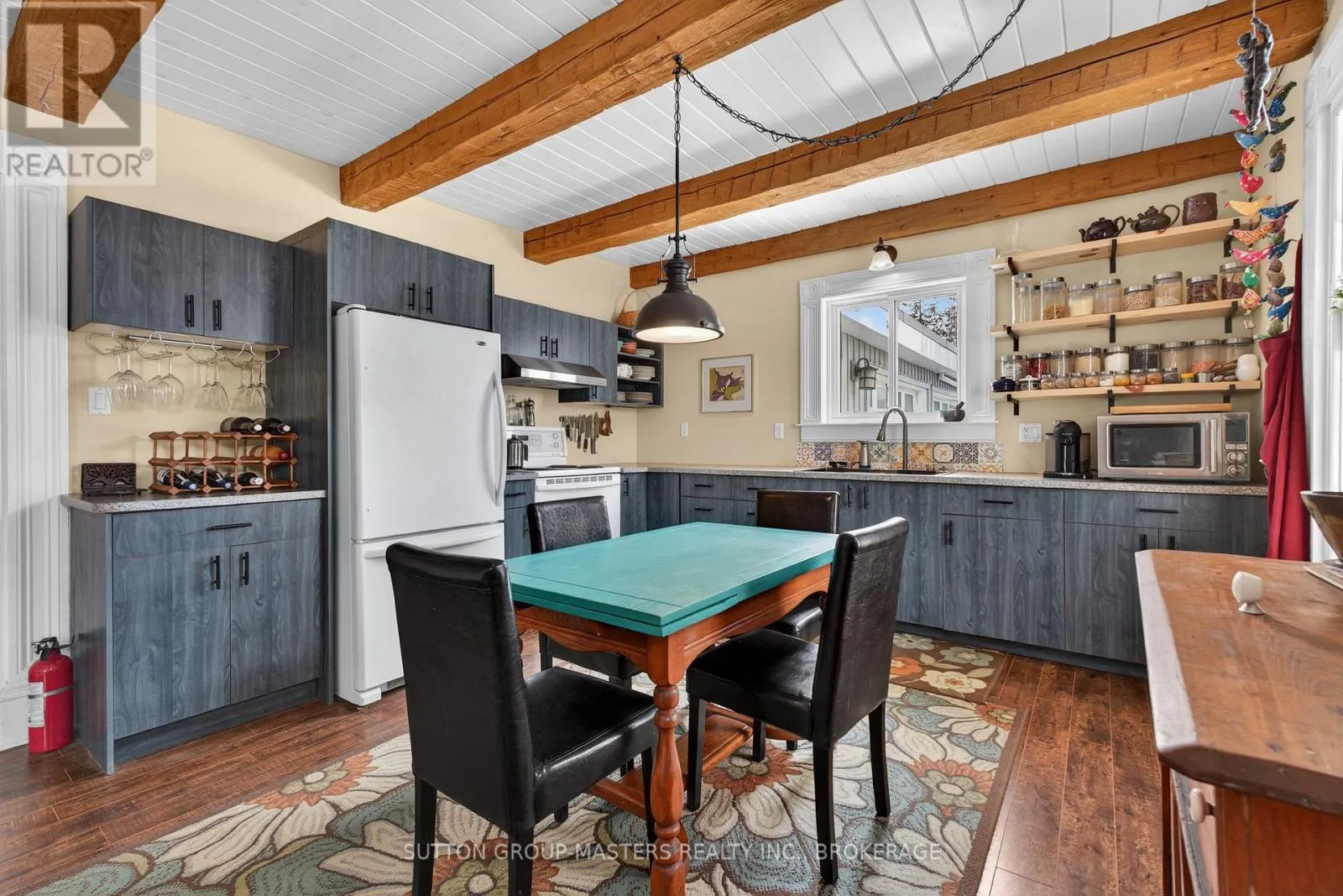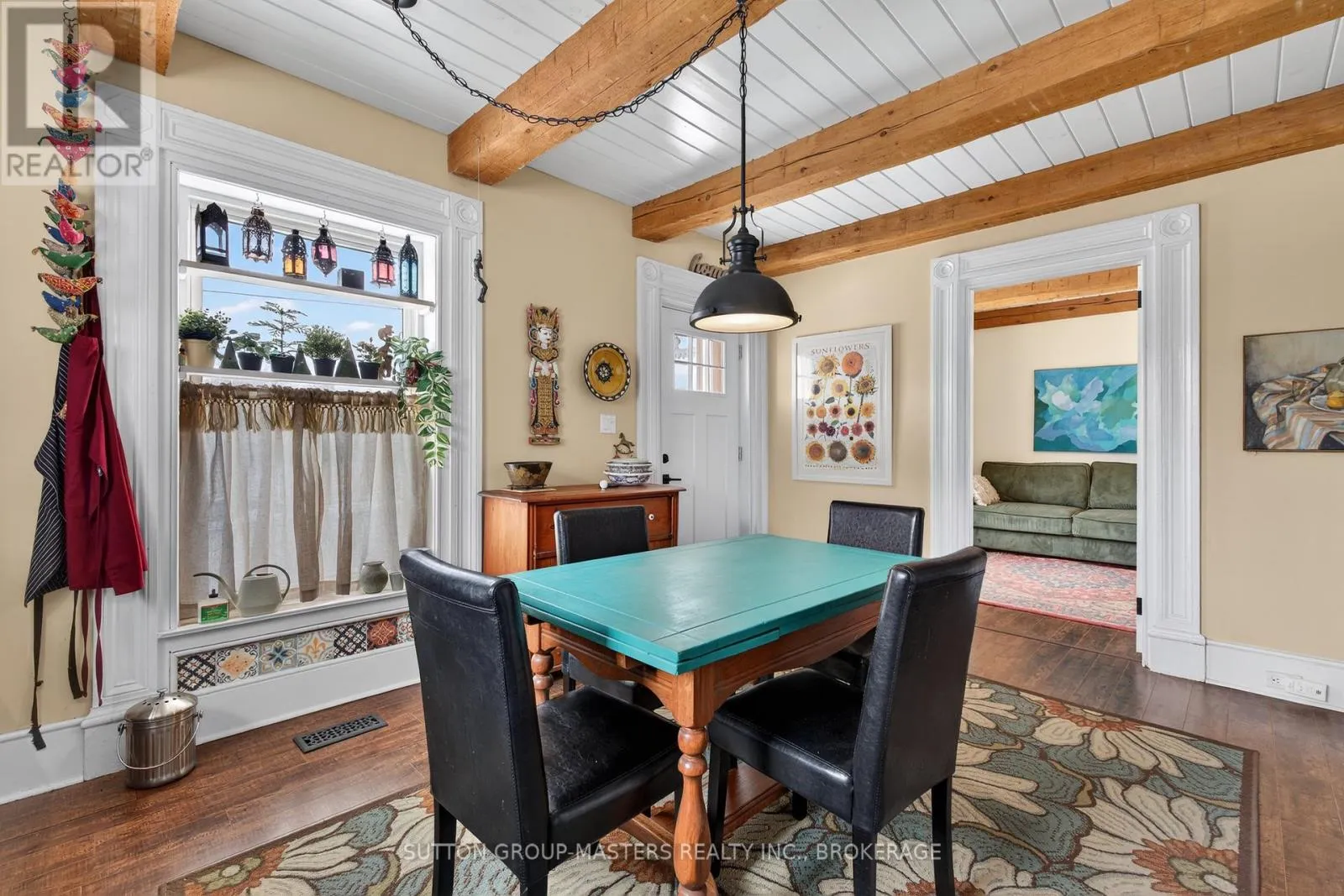 Cross Streets: Lennox & Addington Rd 4/ County Rd 1. ** Directions: Camden East Village. Welcome to your perfect blend of country charm and modern comfort in the heart of Camden East Village-just 20 minutes from Kingston. This beautiful, move-in ready home offers the warmth and character of a classic country property, highlighted by stunning exposed beams and dark wood laminate floors that look hand scraped, while seamlessly incorporating modern updates throughout. Recent upgrades include a new furnace with A/C and heat pump system for year-round efficiency, as well as a newer roof for peace of mind. Inside, the home offers 3 spacious bedrooms and 2 full bathrooms, along with the convenience of main floor laundry and a dedicated main floor office-perfect for working from home or a quiet study area. The large, open-concept living and dining space is filled with natural light from oversized windows, highlighting the home's unique character. You'll appreciate the beautiful exposed beams, substantial trim, and detailed window moldings, while updated flooring and refreshed kitchen bring a clean, modern feel to the space. Upstairs you will love the 2 large bedrooms and the 2nd full bathroom. Step outside to enjoy the beautifully landscaped property, complete with lush gardens and a spacious backyard-perfect for relaxing or entertaining. Additional outdoor features include a charming screened in gazebo, a large storage shed and a large deck perfect for backyard BBQs .The attached 2-car garage provides ample space and convenience and includes a dedicated workshop located at the back of the garage for hobbies or storage. Rounding out this well-appointed property. Set in a welcoming village atmosphere with easy access to Kingston, this home offers the best of both worlds-peaceful country living with modern amenities close at hand (id:27476)