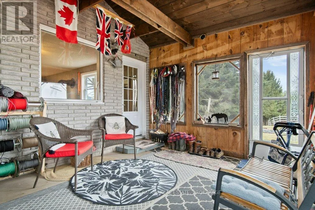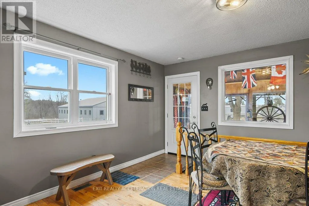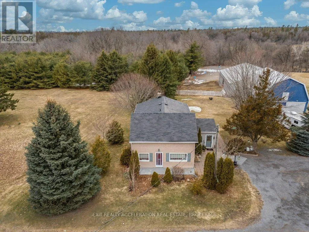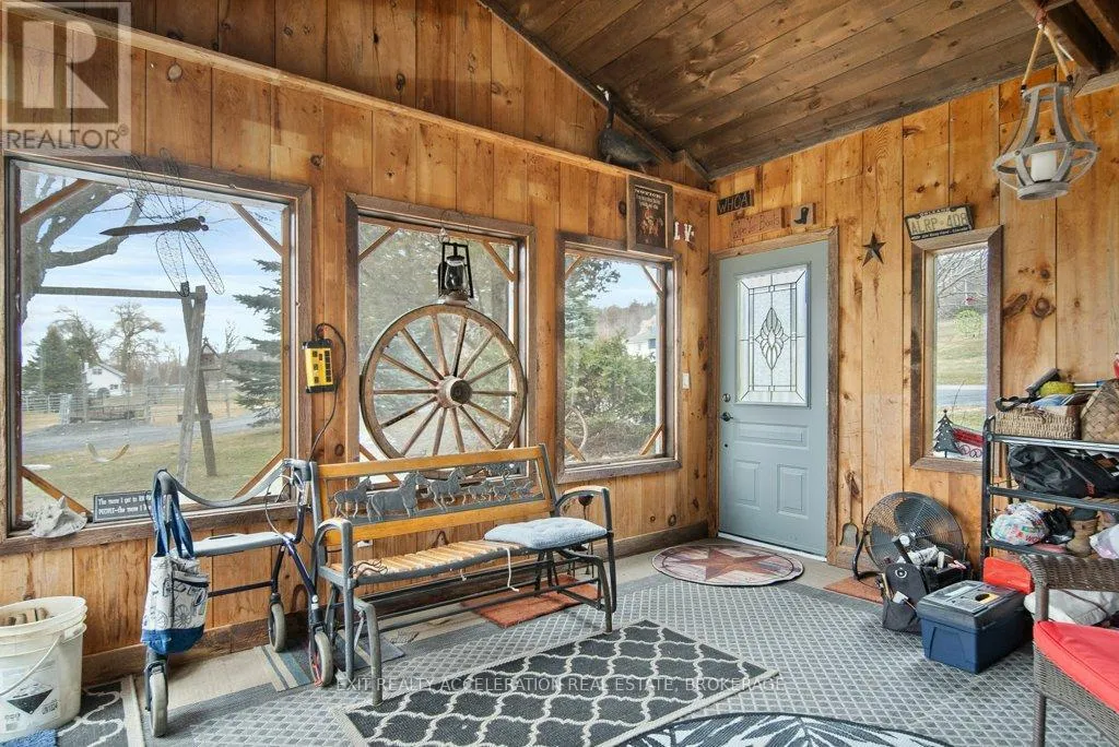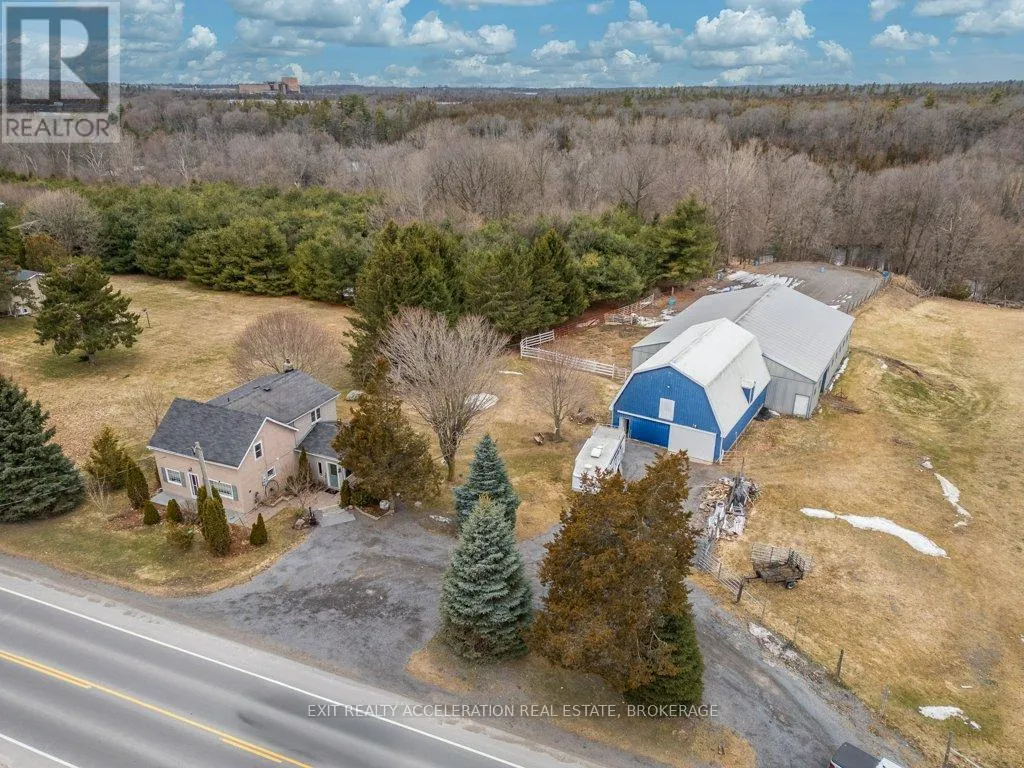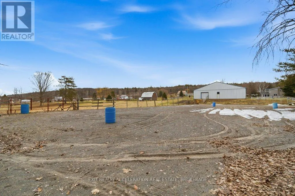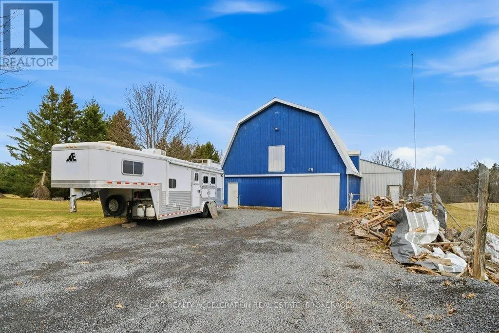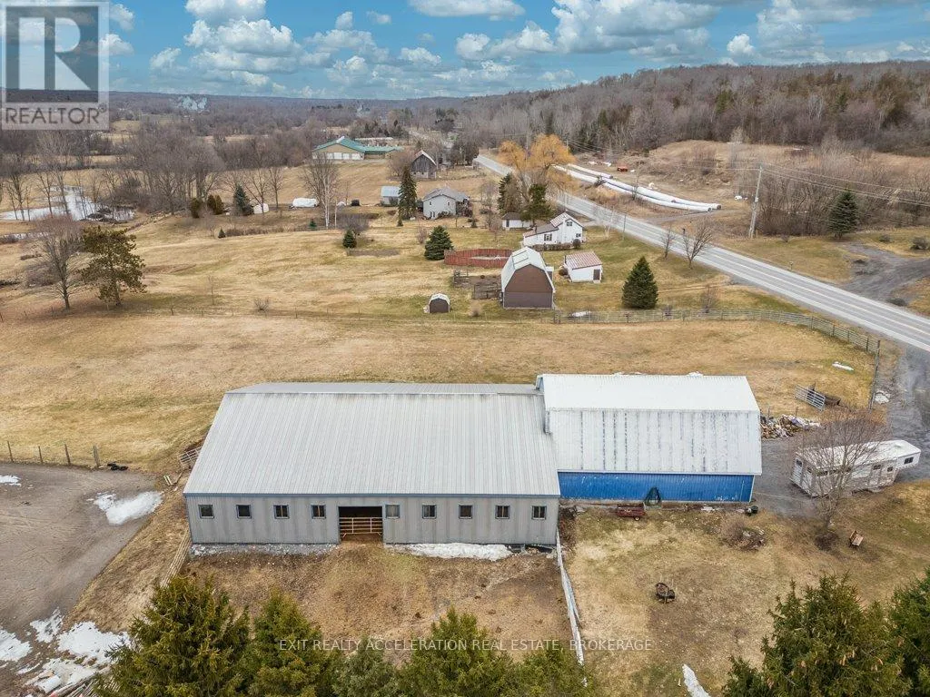 Cross Streets: County Rd 1 and County Rd 18. ** Directions: County Rd 1 E, east of Napanee. Set on a scenic 3.6-acre parcel just 5 minutes east of Napanee with quick access to Highway 401, this beautifully maintained 4-bedroom, 2-bathroom storey-and-a-half home offers an ideal balance of peaceful country living and everyday convenience. Backing onto the Napanee River, the property provides a private, tranquil setting perfect for those seeking space without sacrificing proximity to town. This well-cared-for home has seen numerous updates, including all windows replaced since 2016, a new gas furnace installed in 2024, and central air for year-round comfort. A bright and welcoming sunroom serves as the main entrance, offering a versatile space that functions equally well as a mudroom. From there, step into the inviting living room where you can unwind while taking in views of the outdoor riding ring. The main floor also features a functional kitchen and dining area, convenient main floor laundry, and a 2-piece bathroom, with 4 bedrooms and a 3 piece bath on the second floor. A 53 ft drilled well provides a dependable water supply, and the tile bed was replaced in 2009. Western enthusiasts will appreciate the exceptional facilities including a 32' x 48' four-stall horse barn with a full mow above, along with an attached 60' x 80' indoor riding arena - ideal for year-round use. Completing the setup is an 85' x 200' outdoor riding ring, perfectly suited for both Western and English riding. (id:27476)