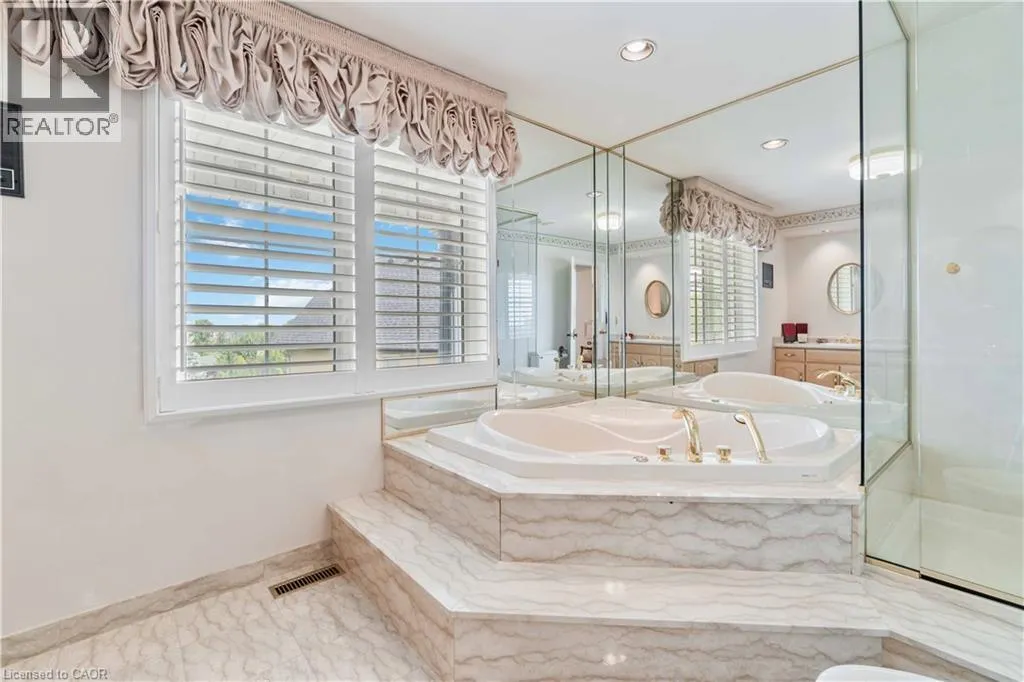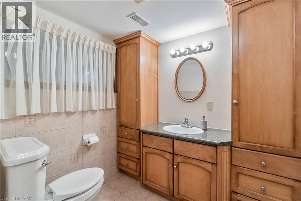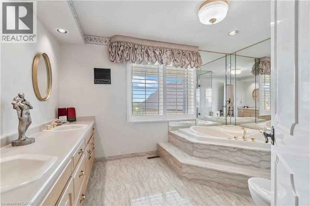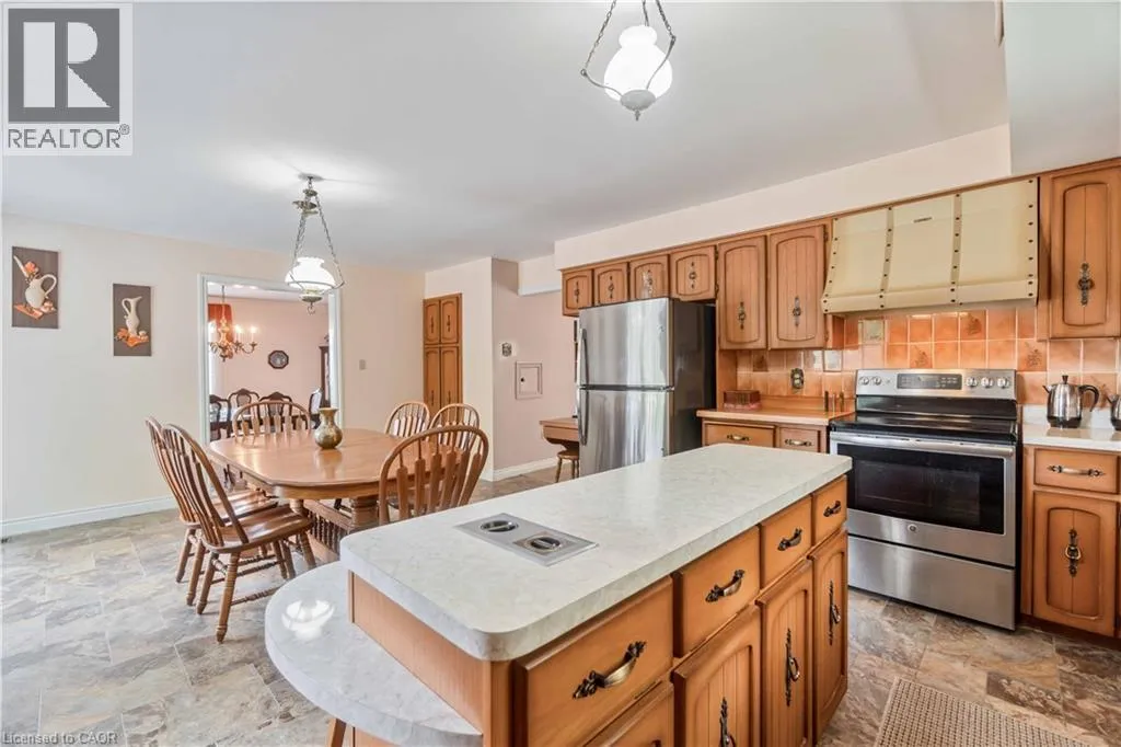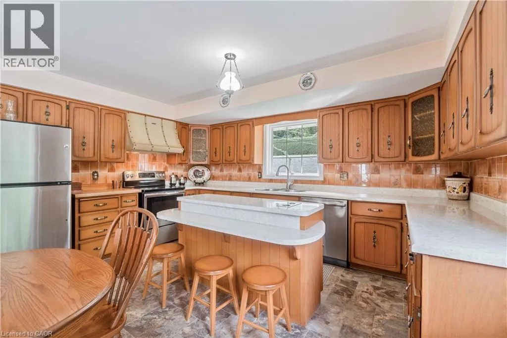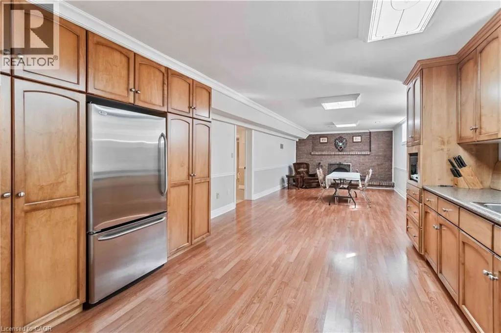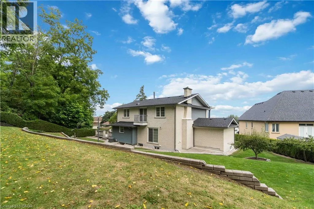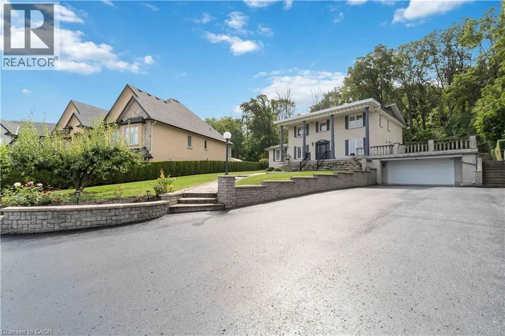 Hwy 8 & Margaret Ave This one owner stately set home had much passion and thought placed into the design with quality materials and workmanship that have surpassed the test of time. This impressive home features In-Law/multigenerational family potential with a separate entrance from the garage into the lower level basement area offering a second kitchen, bathroom, bedroom and rec room with wood burning fireplace. A magnificent (approx.23ft x 38.5ft) terrace sits above the oversize garage off the main floor kitchen with a view of the rear yard backing onto the escarpment plateau! Roof Re-shingled (2022) & Flat Roof Area (2020);Windows on 1st and 2nd level (approx 2009); Sliding glass doors in family room and main floor kitchen (approx 2007); Sectional garage single door replaced in 2023 and asphalt sealer applied to driveway in August of 2024. (id:27476)