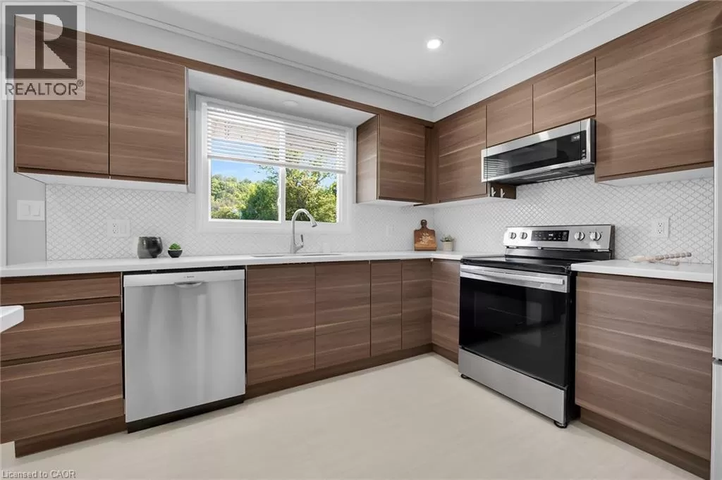 From Hamilton, follow Highway 8, property on RT side before McNeilly Road Incredible Investment Opportunity now available in Lower Stoney Creek/Winona area incs 54.66 acres comprised of 2 parcels (944 Hwy 8 - 33.04 ac/994 Hwy 8- 21.62 ac) since has merged to one property.This uniquely shaped, coveted property surrounds E.D. SMITH Factory extending to Niagara Escarpment with slight elevation rise leading to multiple irrigation ponds. Central to Hamilton, Grimsby, Lake Ontario & mins to QEW.True âworld-classâ package incs well maintained 1966 built side-split home introducing 1240sf living area, 609sf finished lower level & 240sf garage. Ftrs grade level foyer leads to living room/dining room - continues to chicly renovated kitchen-2021 sporting ample cabinetry, tile back-splash, quartz-style counters & SS appliances. Upper level enjoys 3 sizeable bedrooms & remodeled 4pc bath-2021 complimented w/low maintenance laminate flooring enhancing inviting neutral decor. Comfortable family room highlights lower level segues to 3pc bath, laundry room boasting back yard walk-out - completed w/large 4.10ft high storage room. Extras-roof-2014, windows-2020,n/g furnace, AC, 200amp hydro, municipal water, independent septic, paved double drive, lever handled interior door hardware & 289sf patio stone entertainment venue. Former 20x28 metal clad produce cooler is positioned behind fenced back yard. Follow winding lane thru acres of fertile workable farm land accessing private setting where functional 2660sf hip roof âRed Barnâ is situated incs full hay loft, hydro & equipment sized RU door. Versatile 48x30 block building ftrs concrete floor, hydro & n/gas + 48x20 attached open end lean-to. Aprx. 45ac of workable land is rented $100 p/ac for 2025 -no rental agreements in place after 2025. Adjacent 36.28ac vacant land property to west (181 Glover Rd) is available-see MLS #40729698 & #40727683. Buyer/Buyerâs Lawyer to investigate intended future use. Superb Value! (id:27476)