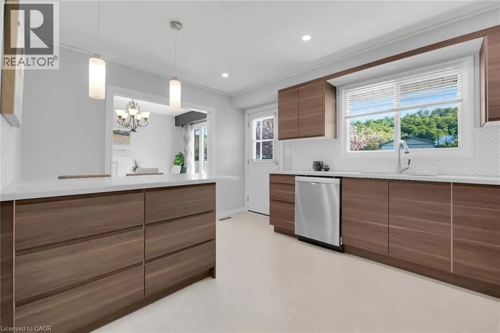 From Hamilton, follow Highway 8, property on RT side before McNeilly Road Incredible Investment Opportunity now available in Lower Stoney Creek/Winona area incs 54.66 acres comprised of 2 parcels (944 Hwy 8 - 33.04 ac/994 Hwy 8- 21.62 ac) since has merged to one property.This uniquely shaped, coveted property surrounds E.D. SMITH Factory extending to Niagara Escarpment with slight elevation rise leading to multiple irrigation ponds. Central to Hamilton, Grimsby, Lake Ontario & mins to QEW.True âworld-classâ package incs well maintained 1966 built side-split home introducing 1240sf living area, 609sf finished lower level & 240sf garage. Ftrs grade level foyer leads to living room/dining room - continues to chicly renovated kitchen-2021 sporting ample cabinetry, tile back-splash, quartz-style counters & SS appliances. Upper level enjoys 3 sizeable bedrooms & remodeled 4pc bath-2021 complimented w/low maintenance laminate flooring enhancing inviting neutral decor. Comfortable family room highlights lower level segues to 3pc bath, laundry room boasting back yard walk-out - completed w/large 4.10ft high storage room. Extras-roof-2014, windows-2020,n/g furnace, AC, 200amp hydro, municipal water, independent septic, paved double drive, lever handled interior door hardware & 289sf patio stone entertainment venue. Former 20x28 metal clad produce cooler is positioned behind fenced back yard. Follow winding lane thru acres of fertile workable farm land accessing private setting where functional 2660sf hip roof âRed Barnâ is situated incs full hay loft, hydro & equipment sized RU door. Versatile 48x30 block building ftrs concrete floor, hydro & n/gas + 48x20 attached open end lean-to. Aprx. 45ac of workable land is rented $100 p/ac for 2025 -no rental agreements in place after 2025. Adjacent 36.28ac vacant land property to west (181 Glover Rd) is available-see MLS #40729698 & #40727683. Buyer/Buyerâs Lawyer to investigate intended future use. Superb Value! (id:27476)
