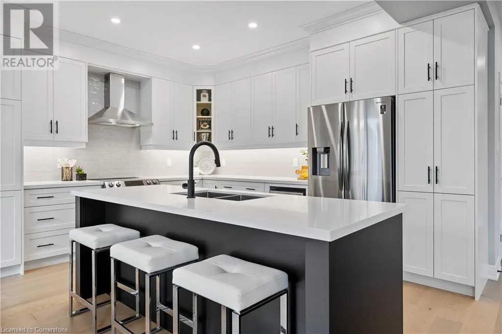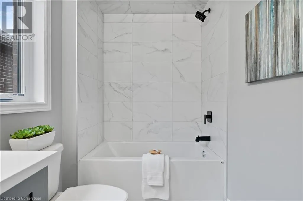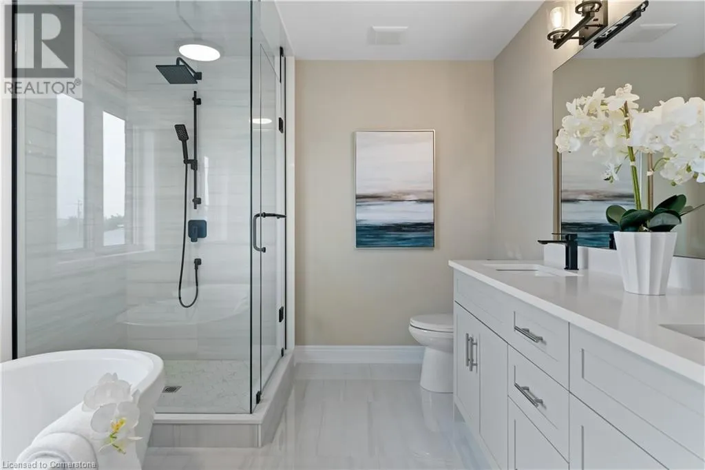 From QEW, Exit Fifty Rd, North on Fifty, Left onto North Service Rd, Right on McNeilly Rd, Left onto Seabreeze Cres. PRESTIGIOUS FIFTY POINT ⦠Located in the highly sought-after Fifty Point Community, just steps to the lake and parks, plus only minutes away from Fifty Point Conservation area, Costco & Winona Crossing shopping plaza, schools, and highway access, find 65 Seabreeze Crescent, Stoney Creek. This Custom, TO-BE-BUILT, 2-storey home is lake-facing and features an all brick and stone exterior, 4 bedrooms, 2 ½ bathrooms, and 2500 sq ft of beautiful living space. Open concept main level boasts a large great room and dining room, spacious eat-in kitchen, along with a mud room off the 1.5 car garage. Side entrance for future in-law suite potential. UPGRADES included are hardwood floors, porcelain tiles, designer faucets, higher baseboards, smooth ceilings, and potlights. Upper level Primary bedroom features a luxurious 5-pc ensuite bathroom and walk-in closet plus bedroom-level laundry. Fully sodded lot. Photos show examples of interior finishes and may vary slightly. Still time to choose interior finishes. (id:27476)