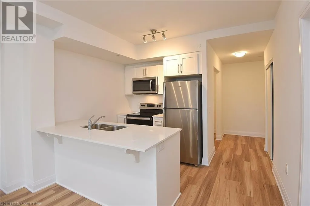 FROM UPPER RED HILL VALLEY PARKWAY, HEAD EAST ON RYMAL RD E, THE PROPERTY IS LOCATED ON THE SOUTH SIDE. Welcome to PEAK Condos by Royal Living Development, a brand new condominium located on the Upper Stoney Creek Mountain, where modern living meets natural beauty directly across from the Eramosa Karst Conservation Area. This spacious 2 Bedroom + Den, 2 Full Bath suite features 9 ft ceilings and premium upgrades throughout â including quartz countertops, an undermount sink, pot lights, vinyl plank flooring, and in-suite laundry. The primary bedroom includes a walk-in closet, private ensuite, and access to one of two balconies, with the second balcony accessible from the second bedroom. The den offers flexible space for a home office or guest room. Enjoy a modern kitchen with stainless steel appliances, a private balcony, owned underground parking, and a storage locker. The building offers outstanding amenities, including a rooftop terrace with BBQs, a fully equipped fitness room, a party room, bicycle storage, and landscaped green spaces. With shopping, parks, schools, restaurants, transit, and quick highway access all nearby, this move-in-ready condo is perfect for downsizers, first-time buyers, and professionals seeking a vibrant, low-maintenance lifestyle. Now offering 2 years free condo fees. Move in today! (id:27476)