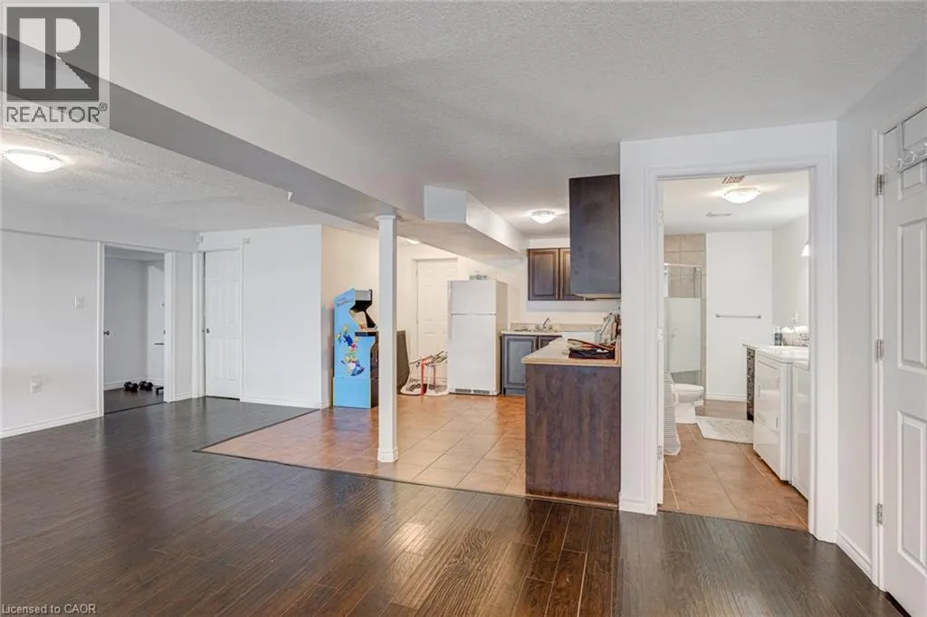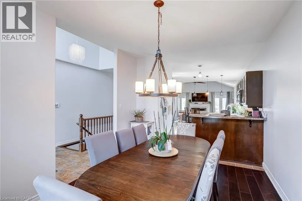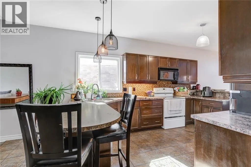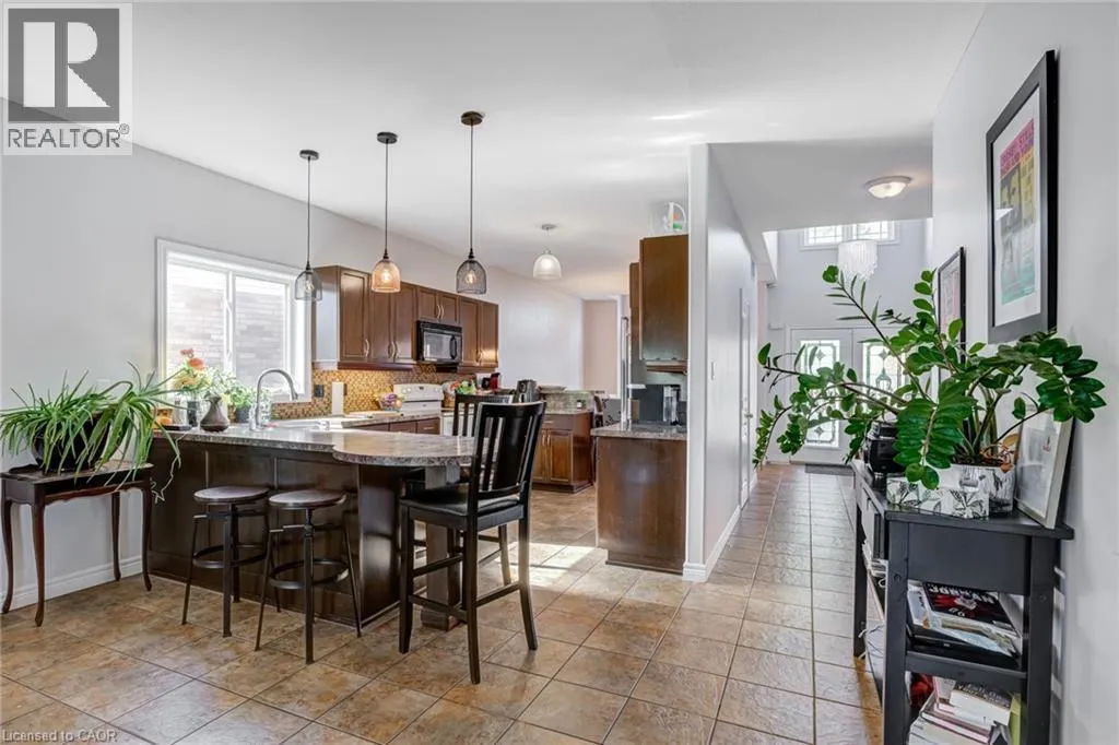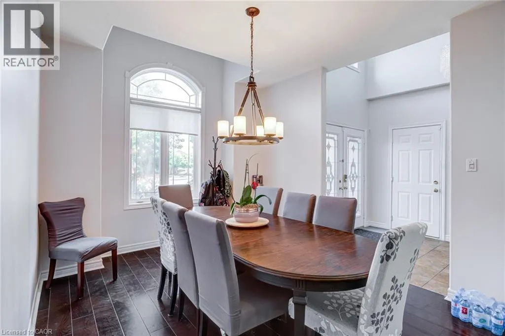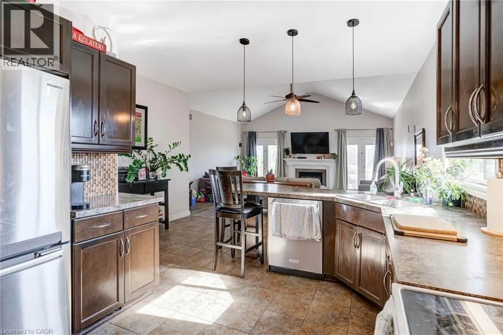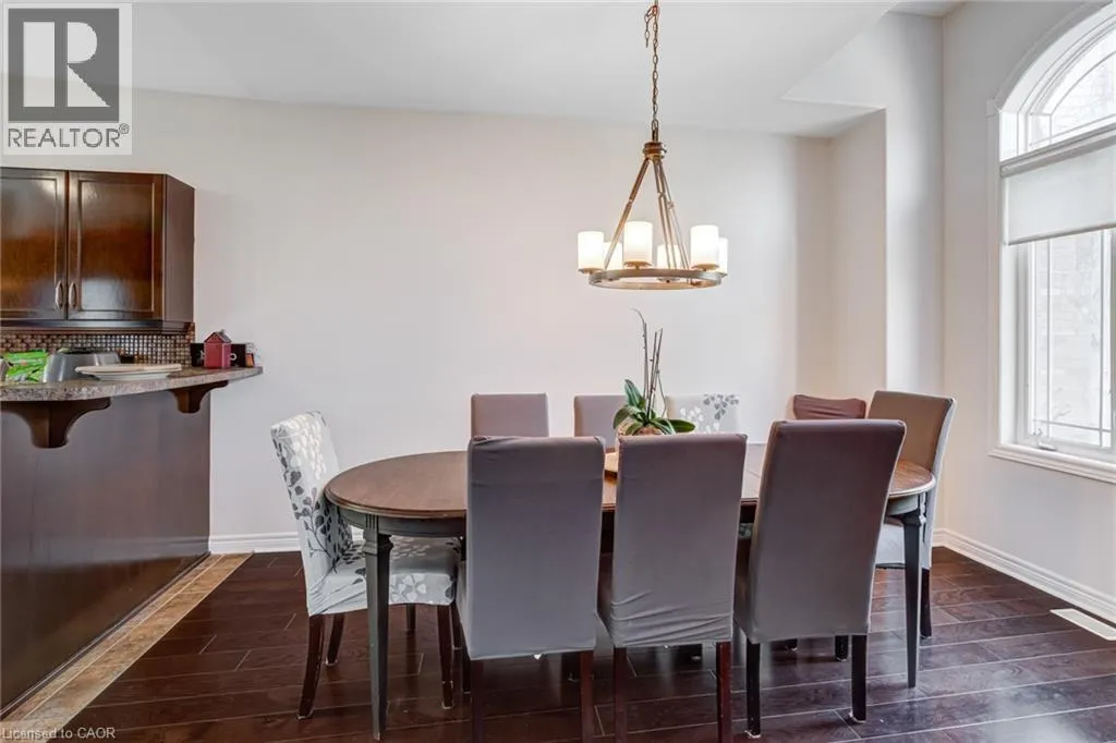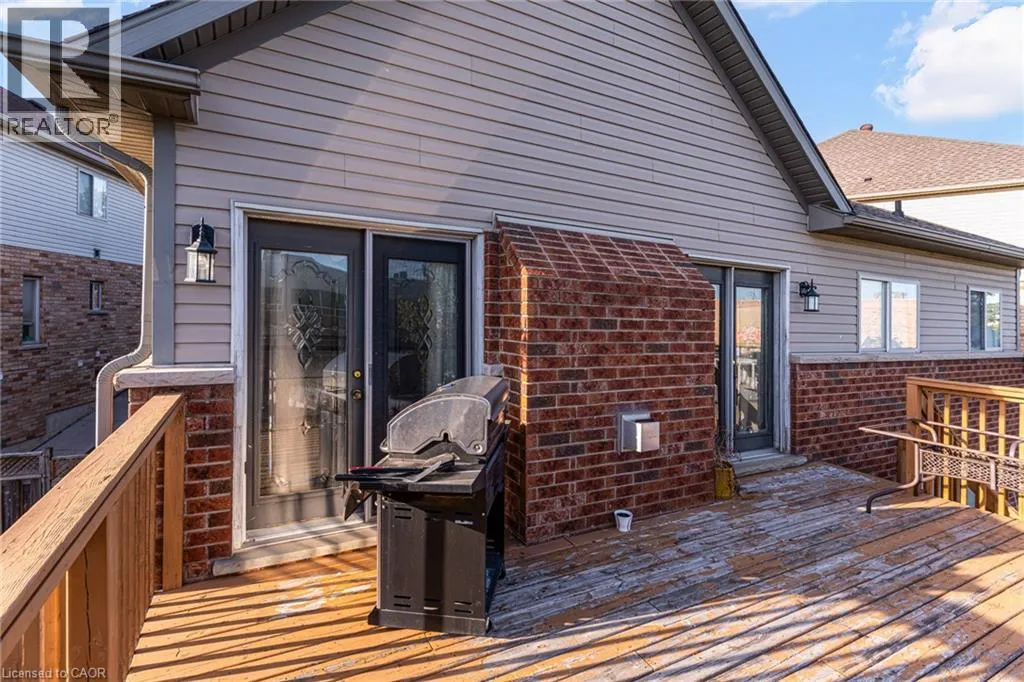 Rymal to Whitedeer to Candlewood A rare opportunity to own a stunning executive style bungalow with over 3200 square feet of living space. It's like 2 homes in one with extended family living possibility on the lower level. Set on a generous pie shaped lot. Walk into open concept living with main area surrounded by large windows letting natural light beam through the home. Main floor features hardwood throughout, vaulted ceilings and features a bright dining room, spacious living room with natural gas fireplace, gorgeous kitchen with breakfast peninsula. Beautiful primary bedroom offers walk-in closet, 4 pc. ensuite. 2 more bedrooms share a 4 pc bath plus convenient main floor laundry. Double car garage with separate entry to walk-out basement. A second laundry room in the basement. Lower level opens into a vast family room for more living space including kitchen and dining room, 2 spacious bedrooms, a 3 pc bath with stand up shower and a walkout to the outdoors. This property has so much more to offer. This home is ready for many different lifestyles & options with a lower level in-law suite. Great potential for a single family, multi-family, or as a savvy investment for potential income. Close to all amenities and just steps from shopping, dining, schools and parks. (id:27476)