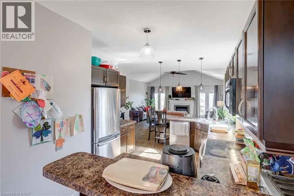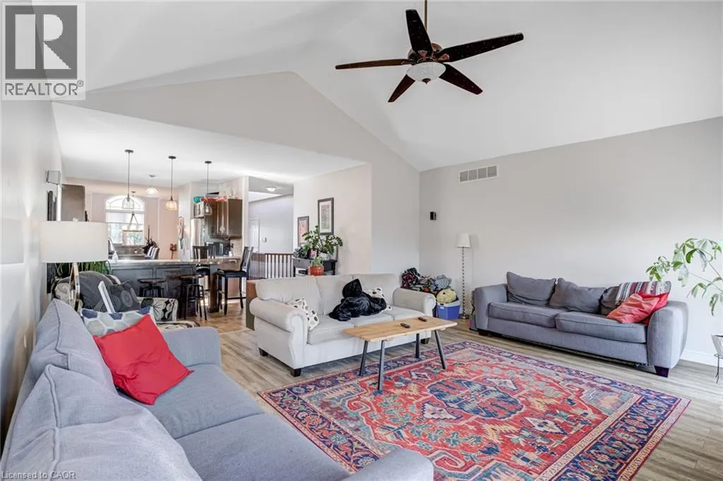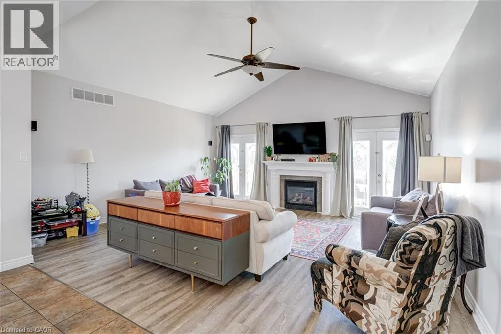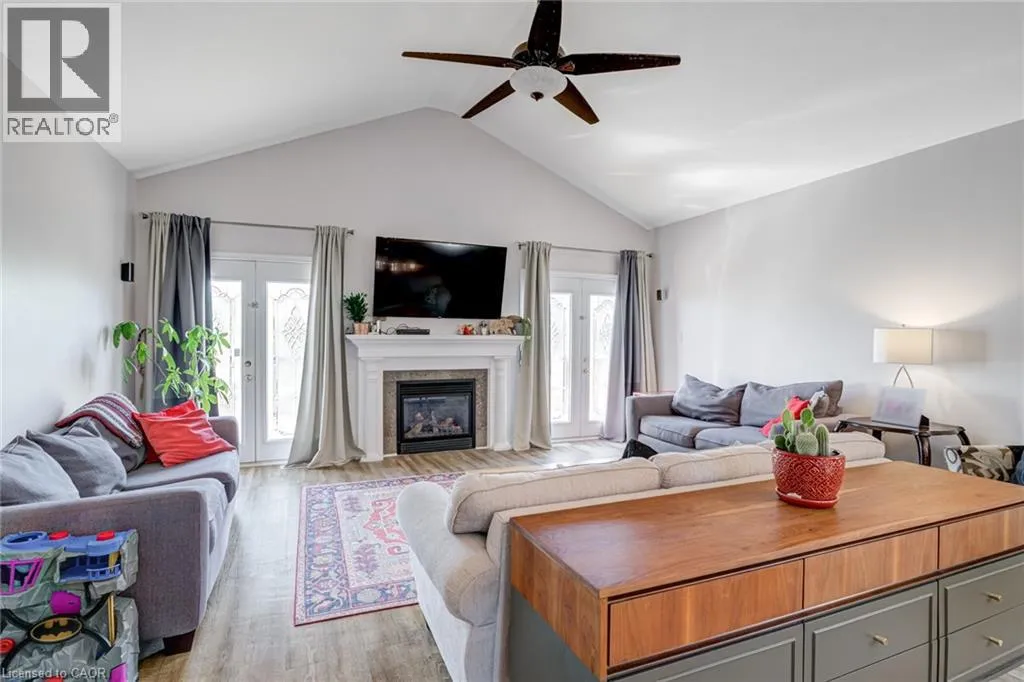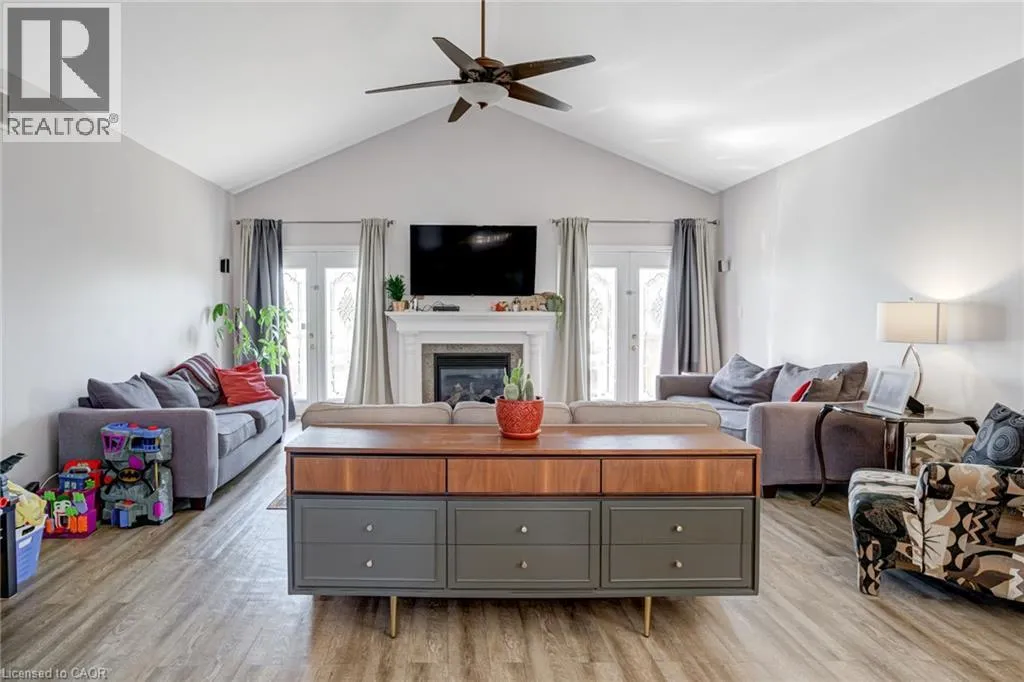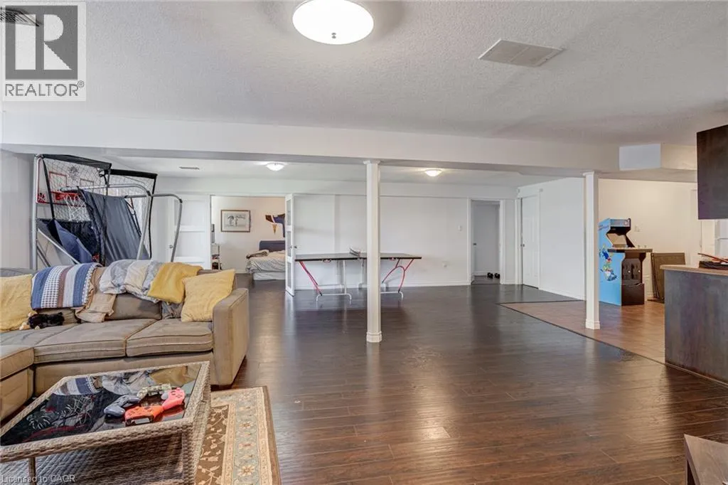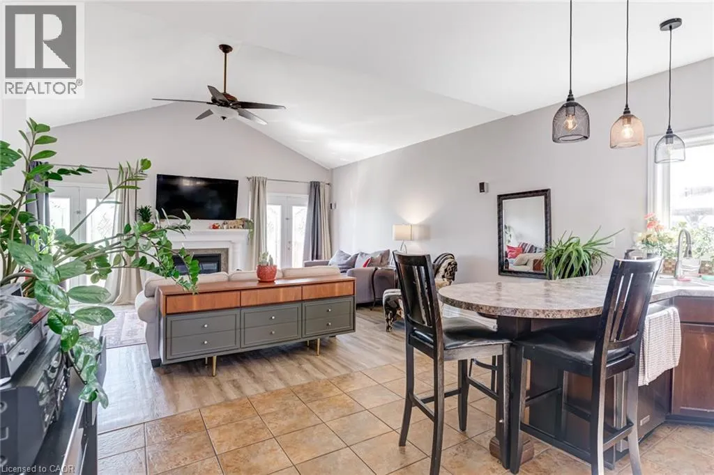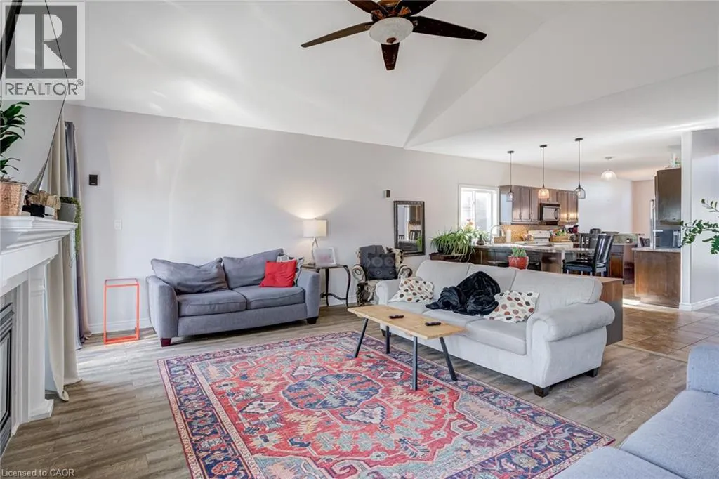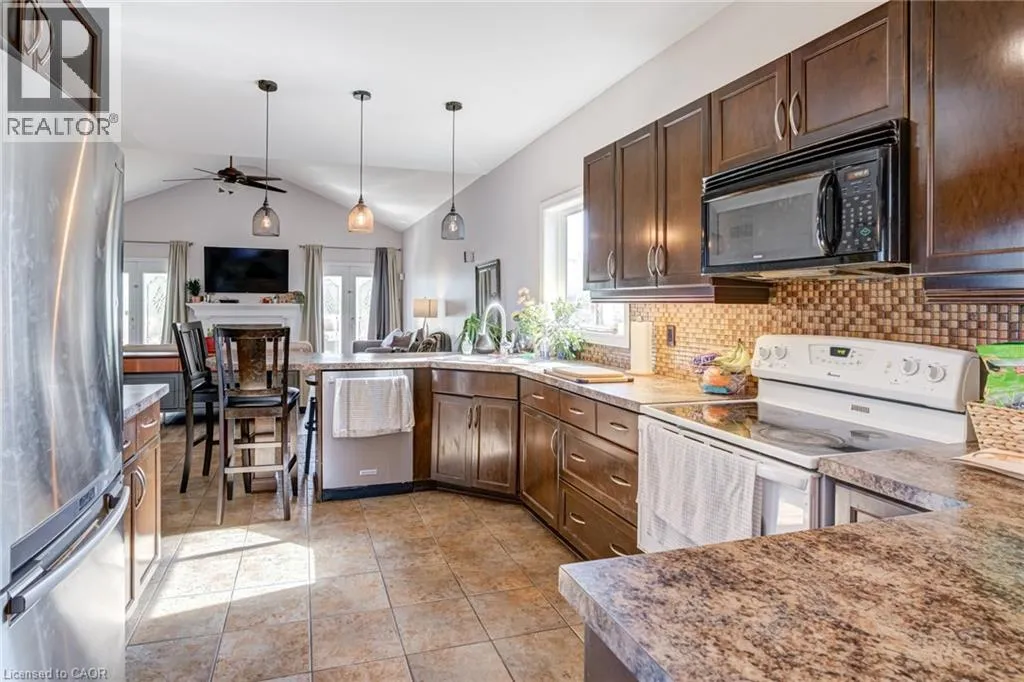 Rymal to Whitedeer to Candlewood A rare opportunity to own a stunning executive style bungalow with over 3200 square feet of living space. It's like 2 homes in one with extended family living possibility on the lower level. Set on a generous pie shaped lot. Walk into open concept living with main area surrounded by large windows letting natural light beam through the home. Main floor features hardwood throughout, vaulted ceilings and features a bright dining room, spacious living room with natural gas fireplace, gorgeous kitchen with breakfast peninsula. Beautiful primary bedroom offers walk-in closet, 4 pc. ensuite. 2 more bedrooms share a 4 pc bath plus convenient main floor laundry. Double car garage with separate entry to walk-out basement. A second laundry room in the basement. Lower level opens into a vast family room for more living space including kitchen and dining room, 2 spacious bedrooms, a 3 pc bath with stand up shower and a walkout to the outdoors. This property has so much more to offer. This home is ready for many different lifestyles & options with a lower level in-law suite. Great potential for a single family, multi-family, or as a savvy investment for potential income. Close to all amenities and just steps from shopping, dining, schools and parks. (id:27476)