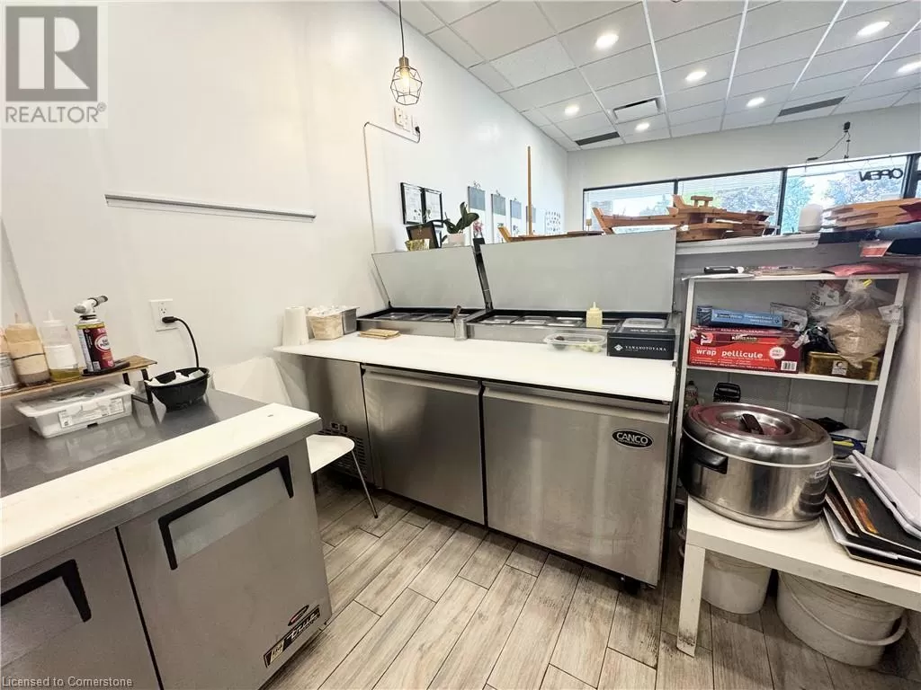 FOLLOW MUD ST WEST TO PARAMOUNT FROM HWY 20 This sushi restaurant features a spacious 1,284 sq ft layout, ideal for a team of 3â4 people. The interior is well-organized, making daily operations smooth and efficient. Located in front of a school and surrounded by residential neighbourhoods, the store enjoys a steady flow of both regulars and new customers, especially during lunch and dinner hours. The business has a strong online presence with excellent customer reviews: ** Google Maps: 4.9 stars from over 220 reviews ** ** Also highly rated on Uber Eats (registered as Uber Eats Top Restaurant), DoorDash, and SkipTheDishes ** This is a well-established and beloved local sushi spot with great visibility, high foot traffic, and strong delivery platform performanceâready for someone to walk in and continue its success. The seller is ready to provide full training, ensuring a smooth transition for the next owner to step in and continue the success. Zoning permits a wide range of uses. - Lease is $16.50/sqft plus $11.00/sqft for TMI (id:27476)