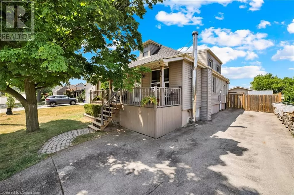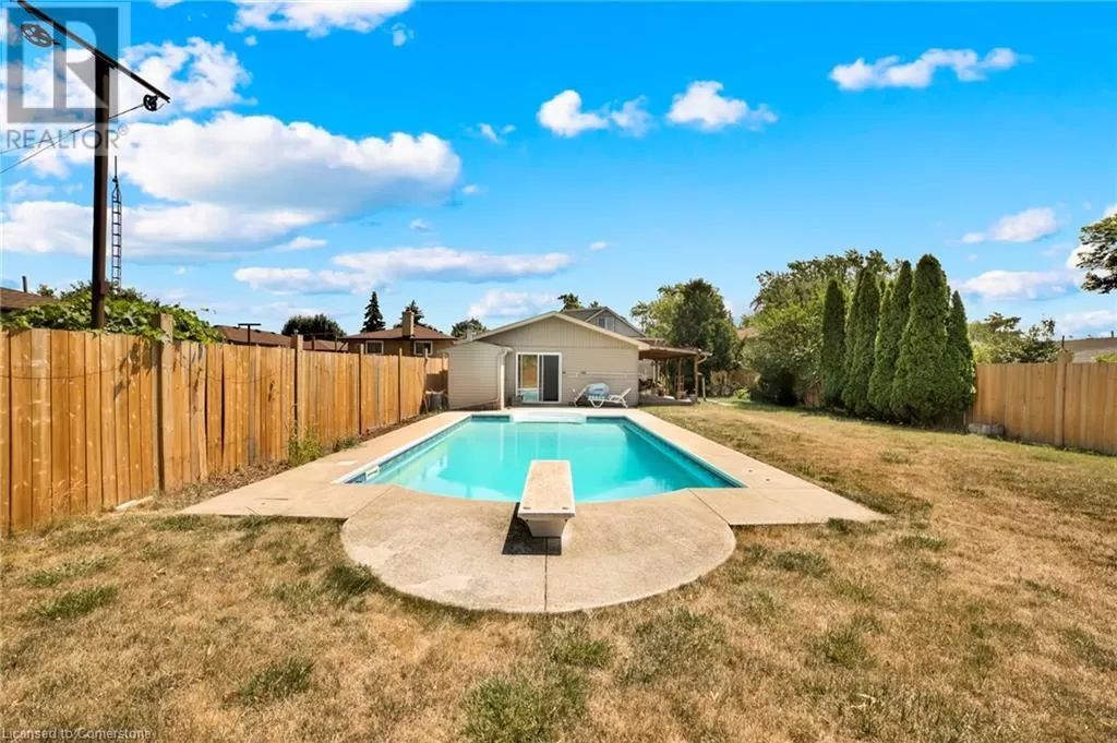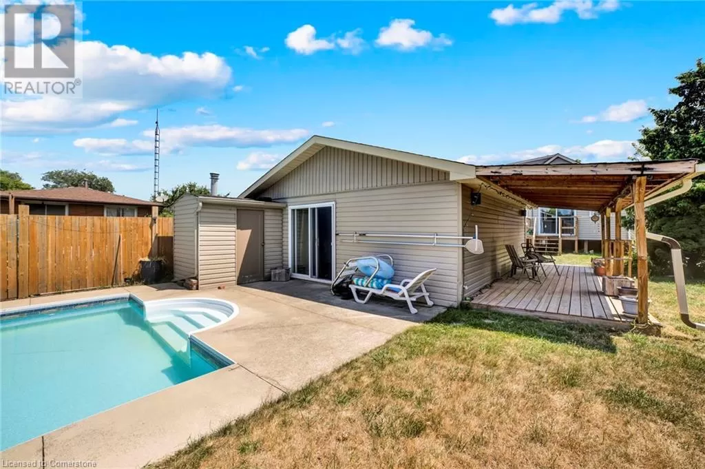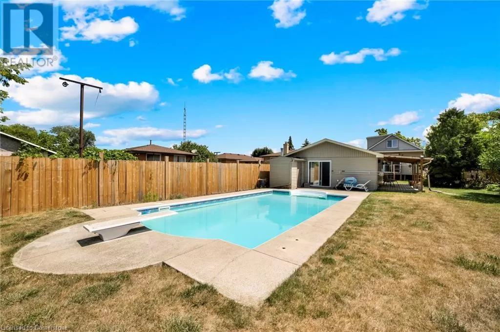 Hwy 8 & Worsley St Spacious Lot, In-Ground Pool, In-Law Potential â A Must-See in Stoney Creek! Welcome to this charming and versatile home situated on an impressive 213 ft deep lot, offering exceptional outdoor space and endless possibilities. Whether you're looking to entertain, relax, or expand, this property has it all. Step inside to a thoughtfully laid-out main floor featuring a large kitchen, dining room, and living areaâperfect for entertaining family and friends or enjoying cozy nights in. The home features three spacious bedrooms, including a convenient main floor primary bedroom and two additional bedrooms on the upper level. With two full bathrooms comfort and flexibility are built in. A separate side entrance to the basement creates a perfect opportunity for a future in-law suite or income potential. Outside, enjoy summer days in the in-ground pool, complete with a natural gas heater for extended seasonal use. The oversized detached 2-car garage offers plenty of room for parking, storage, or use as a workshop or hobby space, and two additional sheds provide even more storage options. Located just minutes from downtown Stoney Creek, this home is close to schools, shopping, highways, and a variety of other amenitiesâoffering both tranquility and convenience. (id:27476)
