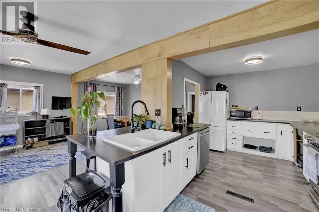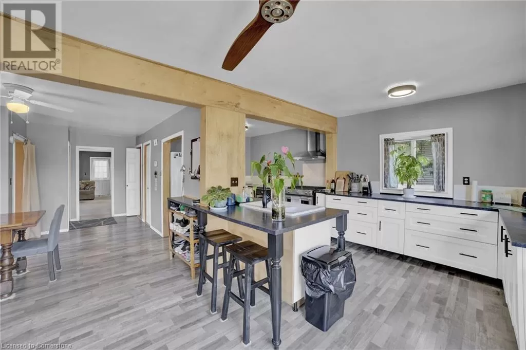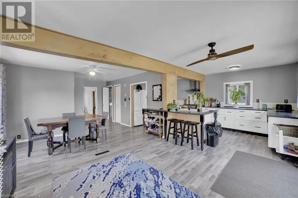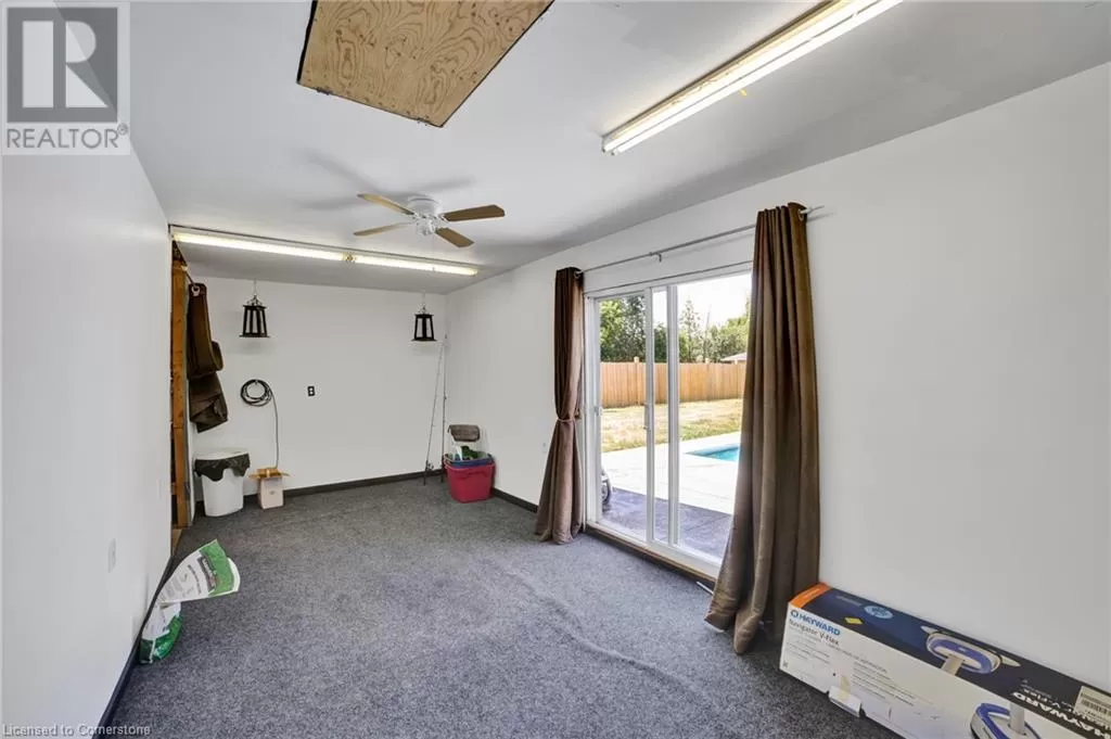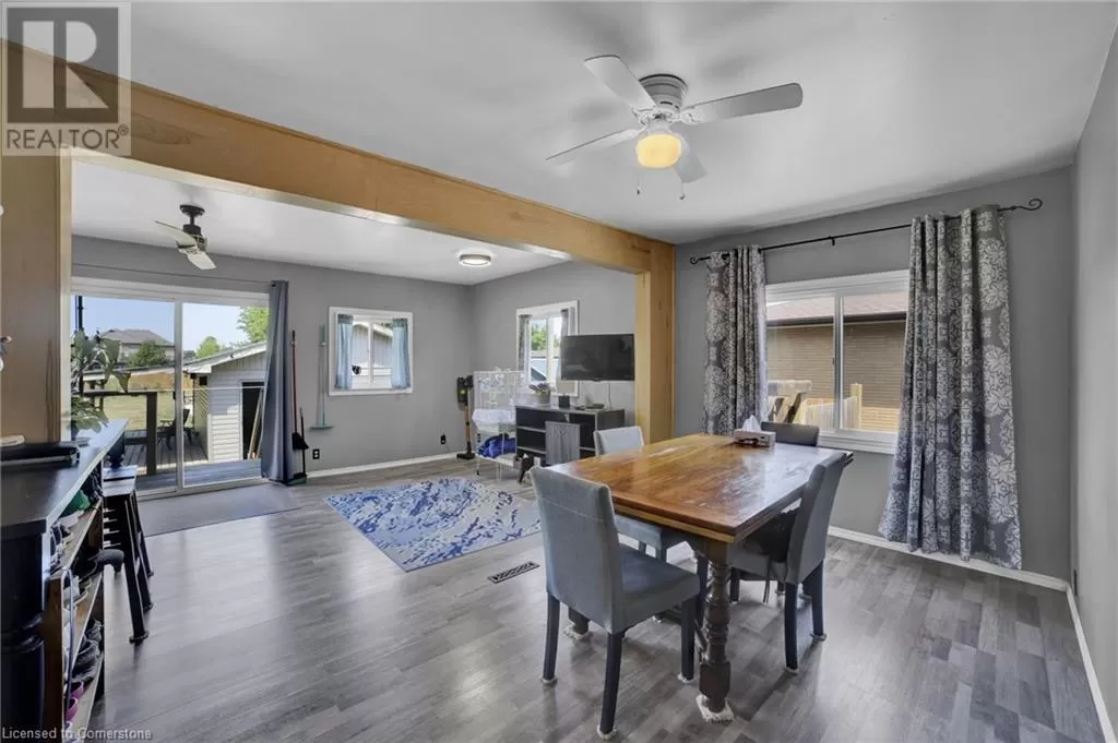 Hwy 8 & Worsley St Spacious Lot, In-Ground Pool, In-Law Potential â A Must-See in Stoney Creek! Welcome to this charming and versatile home situated on an impressive 213 ft deep lot, offering exceptional outdoor space and endless possibilities. Whether you're looking to entertain, relax, or expand, this property has it all. Step inside to a thoughtfully laid-out main floor featuring a large kitchen, dining room, and living areaâperfect for entertaining family and friends or enjoying cozy nights in. The home features three spacious bedrooms, including a convenient main floor primary bedroom and two additional bedrooms on the upper level. With two full bathrooms comfort and flexibility are built in. A separate side entrance to the basement creates a perfect opportunity for a future in-law suite or income potential. Outside, enjoy summer days in the in-ground pool, complete with a natural gas heater for extended seasonal use. The oversized detached 2-car garage offers plenty of room for parking, storage, or use as a workshop or hobby space, and two additional sheds provide even more storage options. Located just minutes from downtown Stoney Creek, this home is close to schools, shopping, highways, and a variety of other amenitiesâoffering both tranquility and convenience. (id:27476)