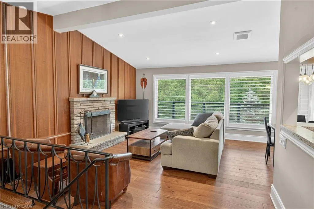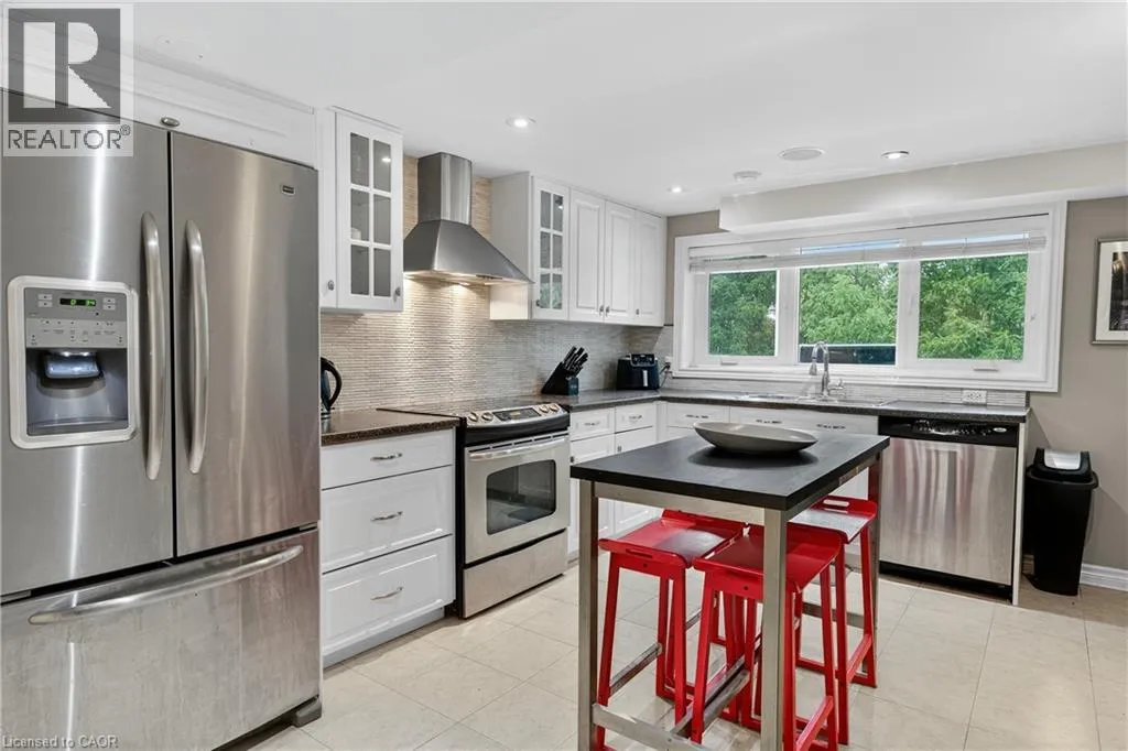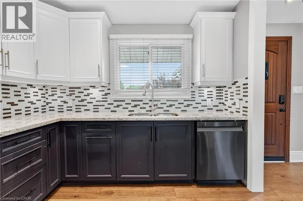 From Queenston Road (Hwy 8), south on Lake Avenue Drive and left on Mountain Ave N STUNNING RAVINE PROPERTY IN OLDE STONEY CREEK! This exceptional home offers over 2,400 sq ft of beautifully renovated living space on a premium ravine lot, combining luxury, functionality, & comfort. The main floor has been fully redesigned with vaulted ceilings, a custom kitchen, spa-like bathrooms (including one with steam), hardwood flooring throughout, & multiple walk-outs to a spectacular backyard. Every detail has been carefully crafted to maximize light, space, & flow, creating an inviting atmosphere that is ideal for both everyday living & entertaining. The home includes two kitchens, two laundry rooms, & a fully finished walk-out lower level with a separate entranceâperfect for in-law or multi-generational living. The lower level boasts oversized picture windows that frame serene views of the pool, landscaped yard, & wooded ravine beyond. With its open layout & abundance of natural light, the lower level feels like an extension of the main floor, offering endless possibilities for extended family, guests, or even private work-from-home space. Exterior highlights include a 1.5-car garage with cedar door, a double driveway with parking for six or more vehicles, & a full-width deck with glass railing spanning the entire width of the home. From here, you can take in breathtaking views of your private backyard paradise. This rare combination of natural beauty & modern comfort provides unmatched privacy, truly making it feel like a retreat in the city. All of this is just minutes from shopping, dining, & amenities, with the new Stoney Creek GO Station to Union Station set to open this yearâan incredible benefit for commuters. Families will appreciate the proximity to top-rated schools, parks, & community amenities, while nature lovers will enjoy having trails & green space right at their doorstep. This remarkable property blends lifestyle, luxury, & convenience in one of the most sought-after areas of Stoney Creek, offering an opportunity that is as rare. (id:27476)