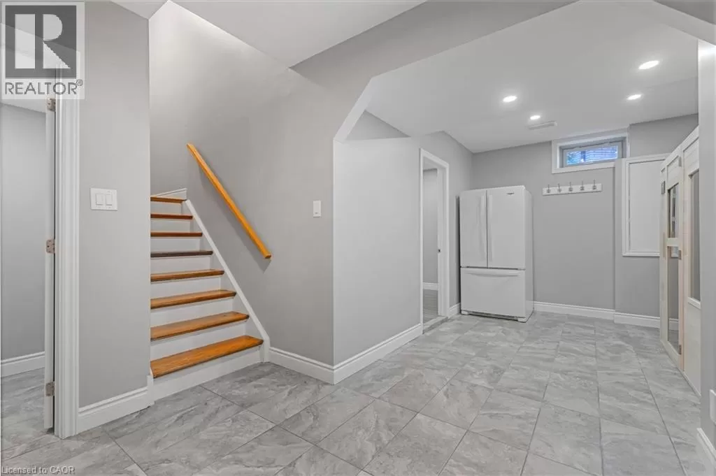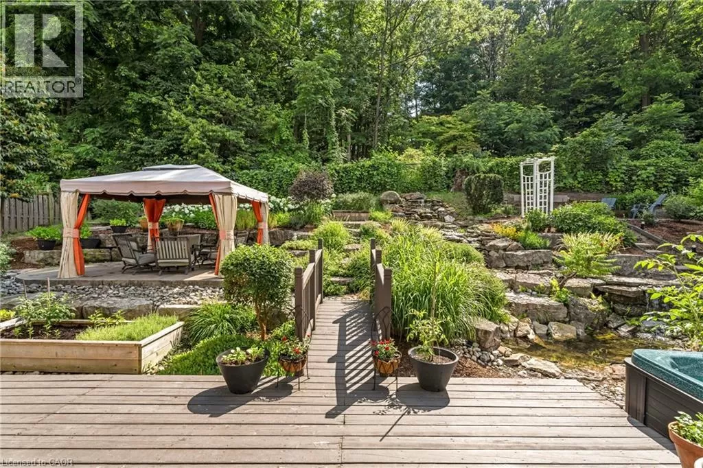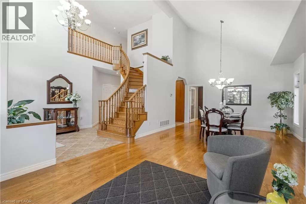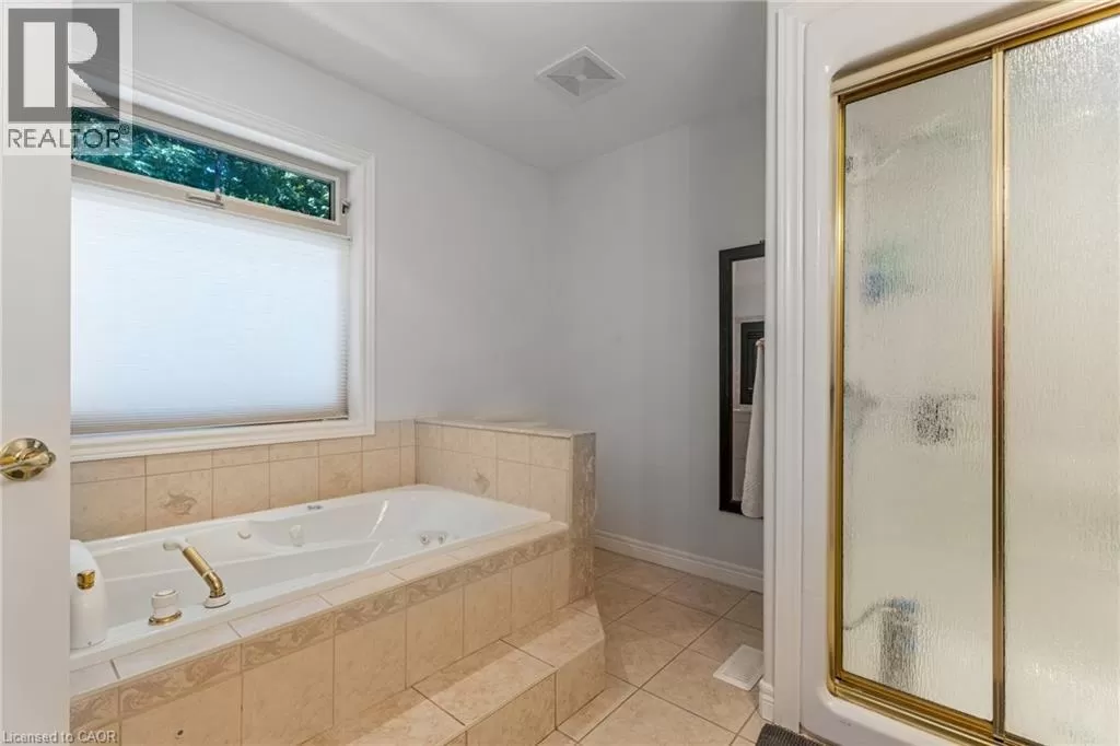Hwy 8 to Regal view to Shadeland Custom built in 2003 and nestled beneath the Niagara Escarpment on a quiet crescent, this meticulously maintained 4+1 bedroom home offers breathtaking views and a tranquil, cottage-like setting. Soaring ceilings, oversized windows, and rounded corners add elegance and natural light throughout. The freshly painted interior features new kitchen appliances with gas cooktop option, all under a 5-year warranty. The spacious primary bedroom features a two-sided gas fireplace shared with the spa like ensuite creating the ultimate retreat. Walk-in closets in every bedroom, central vac, RO water at all sinks, and two fruit cellars enhance everyday living. The finished basement with 9ft ceilings, separate entrance, and roughed-in kitchen offers in-law or income potential. Step outside to a pie-shaped private lot backing onto lush green space with a multi-tiered waterfall and hot tubâa true backyard oasis. The oversized exposed aggregate driveway fits 6 cars. Move-in ready and surrounded by nature, this home combines comfort, luxury, and lifestyle in one exceptional package. (id:27476)