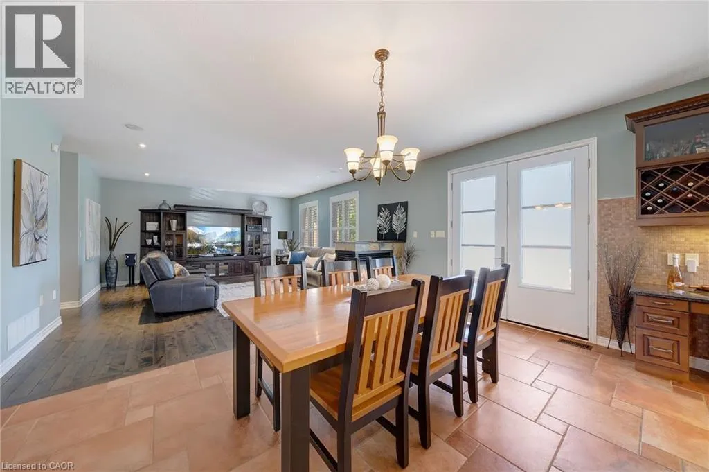 QEW Niagara to Fifty Point Steps to the Lake! This absolutely gorgeous Stoney Creek home, located in the desirable Fifty Point community, offers an incredible blend of style, space, and convenience. Featuring 4+1 bedrooms and a fully finished lower level, this home is perfect for families and entertainers alike. The main level boasts soaring ceilings, with a bright open-concept layout that flows seamlessly throughout. The gourmet kitchen and spacious living areas make it ideal for gatherings both big and small. The beautiful wood staircase with metal spindles leads you to the equally impressive second level. Upstairs, you'll find generously sized bedrooms and bathrooms, while the updated lower level provides additional living space that is complete with a sleek wet bar, perfect for movie nights or hosting friends. Set on a deep 133 ft lot, this property provides plenty of room to relax and enjoy the outdoors. The sprinkler system makes it easy for up keep. Steps to Lake Ontario, close to Fifty Point Conservation, parks, schools, shopping, and quick highway access-this home truly checks all the boxes. *Note there is a separate entrance/walkup to the garage from the basement. (id:27476)