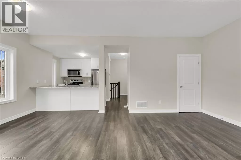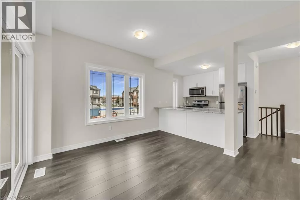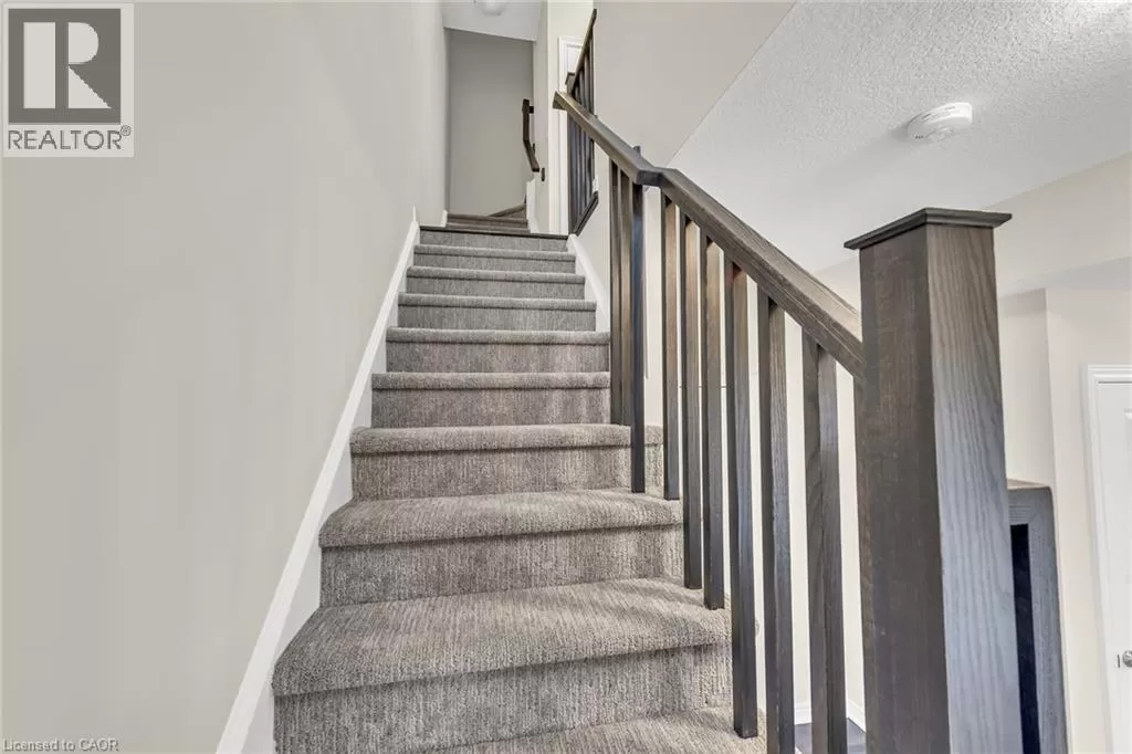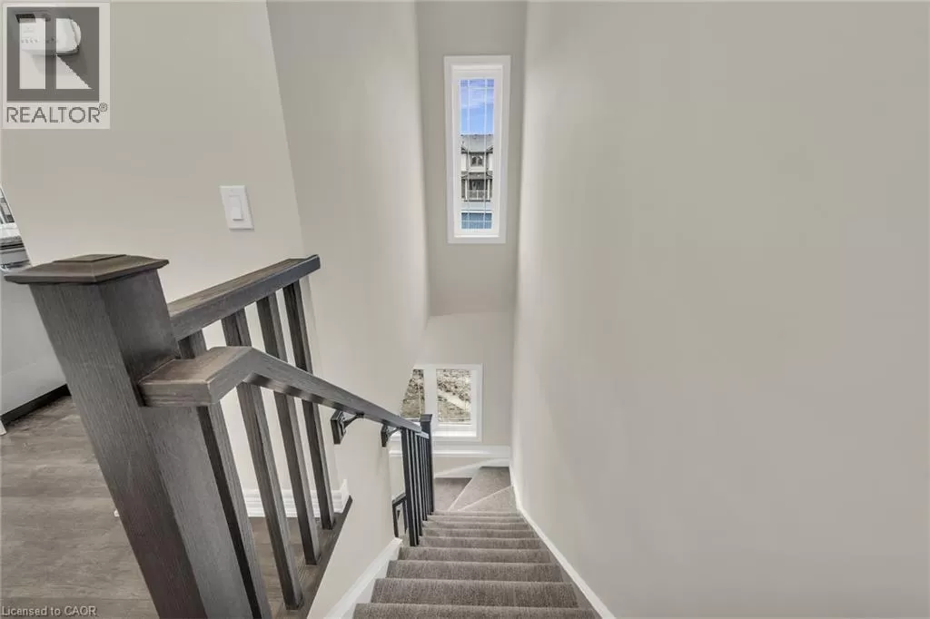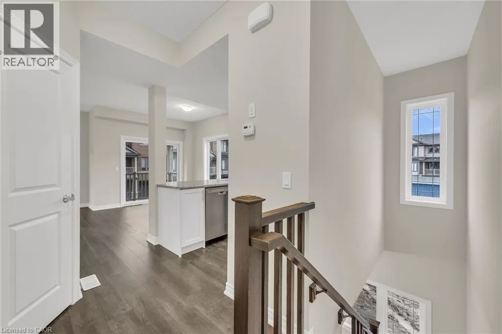 Upper Centennial Parkway - West on Highland Road West - North on Picardy Drive NEWER PEACHY TOWNHOME available for LEASE located in trendy hot spot of Upper Stoney Creek. Built by Award Winning NHDG. Living steps away from shops and super centre with major stores, that will satisfy any shopping fanatic. Stunning 3 BEDROOMS townhouse features open concept kitchen, along with your living space that exudes both comfort and style spacious interiors that provides endless opportunities to create unique lifestyle. 3rd level features 3 bedrooms along with full bath. Middle level features open concept kitchen, powder room, laundry, spacious living room, and dining room with access to huge balcony with beautiful view, next to park. Main floor features huge extra wide foyer for extra storage, and inside entry to single car garage. Single non shared driveway. Quality upgrades through out includes stylish tiles, bath accessories, upgraded ample kitchen cabinetry, interior doors/handles, vinyl plank flooring throughout, and window coverings. In-suite laundry. End Unit. Minutes to LINC, Red Hill Parkway, schools and etc. Min 1y lease, 1st & last deposit, letter of employment, recent 3 pay stubs, references, rental application, credit check (Full report Equifax) and ID. No smoking of any kind. Not pet friendly. 1407 sqf as per builder plan. Available for Nov 16th possession. Pictures taken before current tenant taking possession. (id:27476)