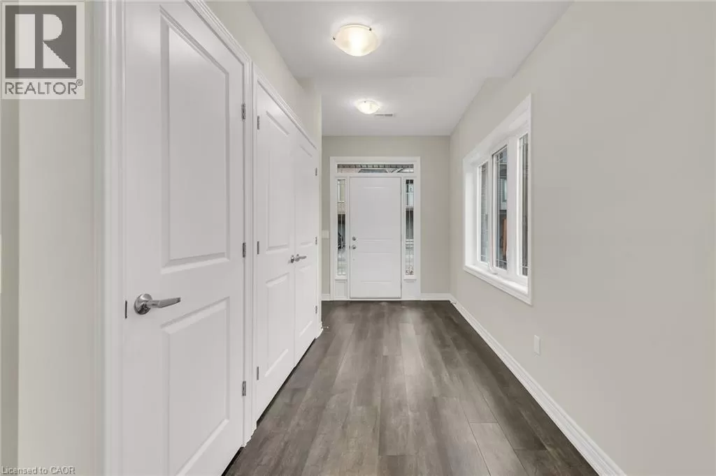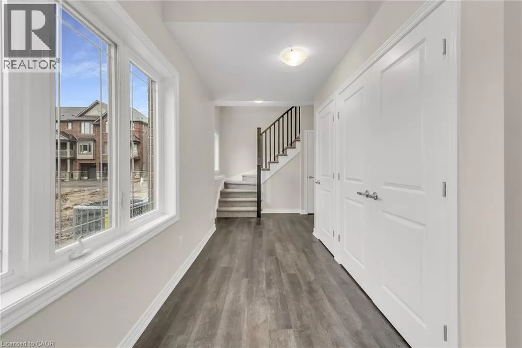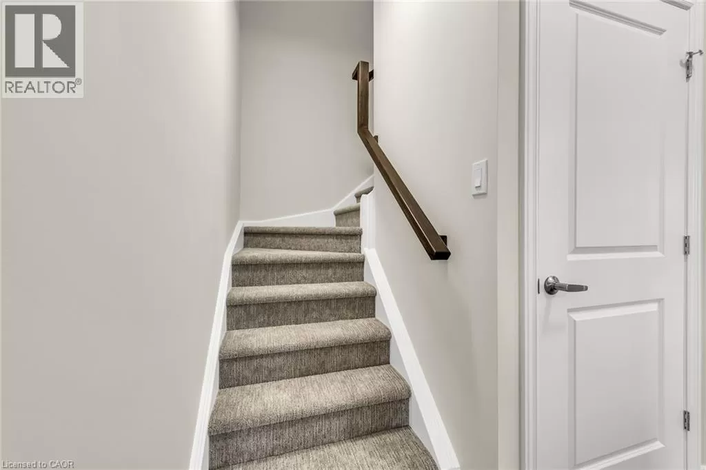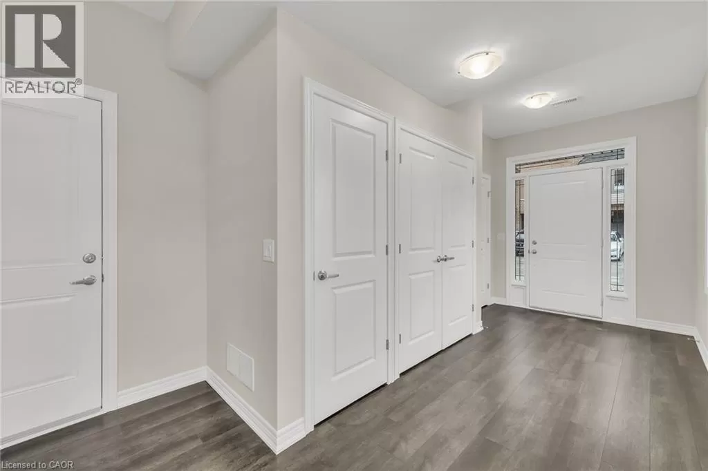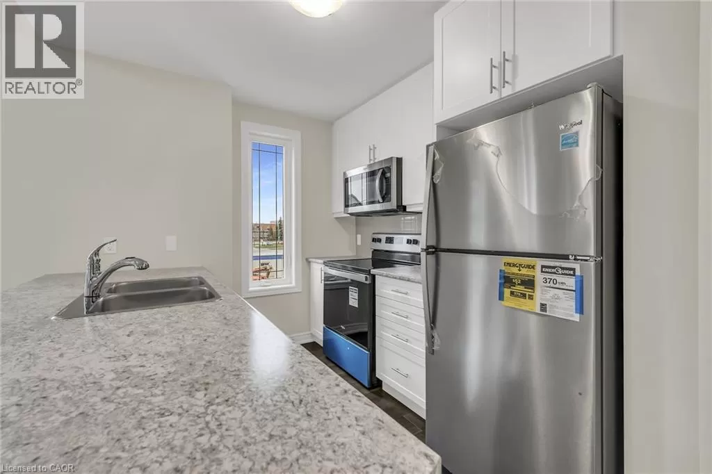 Upper Centennial Parkway - West on Highland Road West - North on Picardy Drive NEWER PEACHY TOWNHOME available for LEASE located in trendy hot spot of Upper Stoney Creek. Built by Award Winning NHDG. Living steps away from shops and super centre with major stores, that will satisfy any shopping fanatic. Stunning 3 BEDROOMS townhouse features open concept kitchen, along with your living space that exudes both comfort and style spacious interiors that provides endless opportunities to create unique lifestyle. 3rd level features 3 bedrooms along with full bath. Middle level features open concept kitchen, powder room, laundry, spacious living room, and dining room with access to huge balcony with beautiful view, next to park. Main floor features huge extra wide foyer for extra storage, and inside entry to single car garage. Single non shared driveway. Quality upgrades through out includes stylish tiles, bath accessories, upgraded ample kitchen cabinetry, interior doors/handles, vinyl plank flooring throughout, and window coverings. In-suite laundry. End Unit. Minutes to LINC, Red Hill Parkway, schools and etc. Min 1y lease, 1st & last deposit, letter of employment, recent 3 pay stubs, references, rental application, credit check (Full report Equifax) and ID. No smoking of any kind. Not pet friendly. 1407 sqf as per builder plan. Available for Nov 16th possession. Pictures taken before current tenant taking possession. (id:27476)