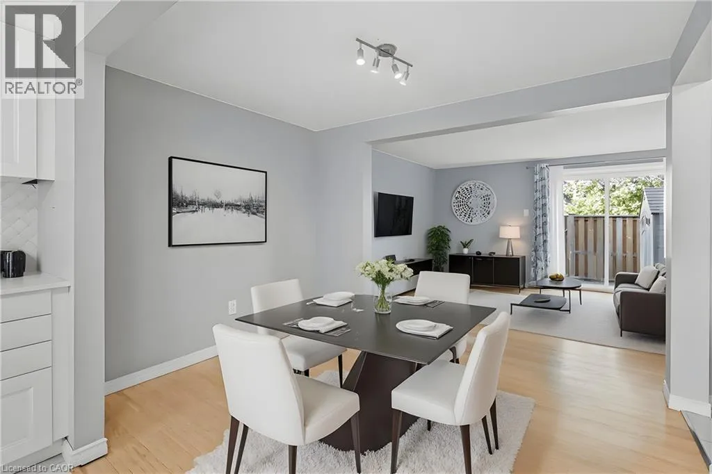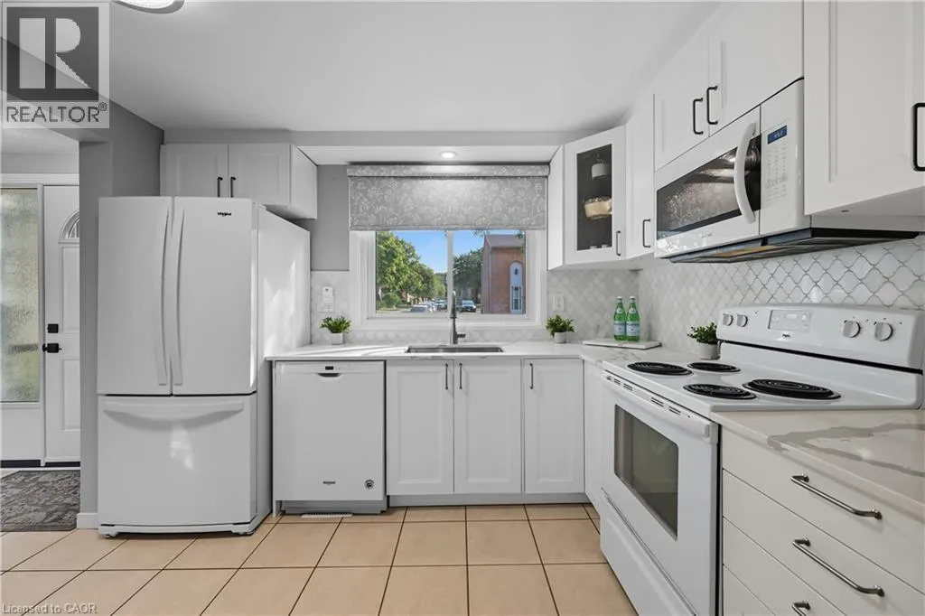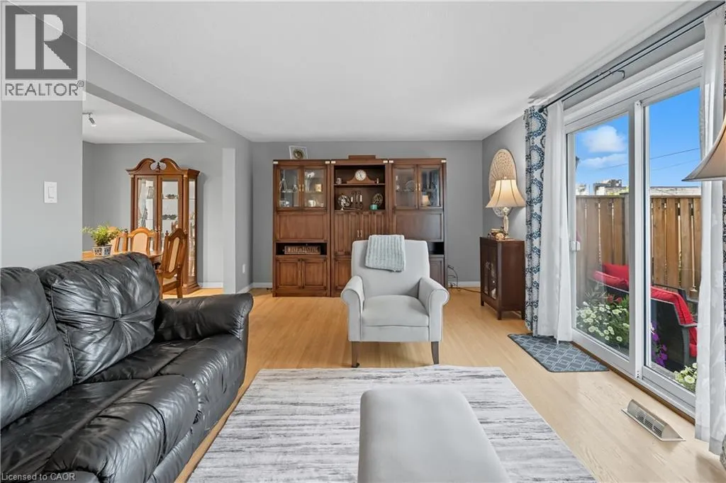 QEW to Centennial to Hwy #8 to Gateshead Cr. Welcome to this amazing centrally located townhouse in Stoney Creek and surrounded by parks, restaurants, healthcare and schools. This beautiful home offers you a recently updated kitchen with Quartz counter tops, backsplash and newer appliances. Enjoy a Carpet-Free lifestyle as this home comes with ceramic tile, and hardwood floors. There's plenty of room for a large family with generous size Dining room, Livingroom, and 3 bedrooms. Don't forgot to take advantage of the cozy private backyard that includes a shed and access to a common walkway. The finished basement can be used as a recroom or easily converted to a fourth bedroom. And for added bonus condo fees include 6 yrs of free cable TV, and High speed Internet. (id:27476)