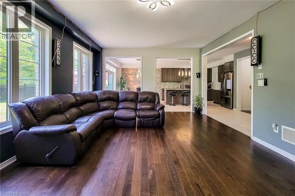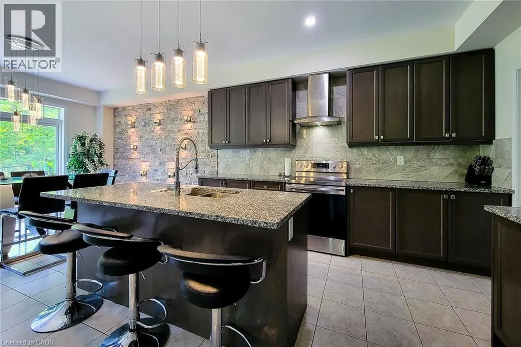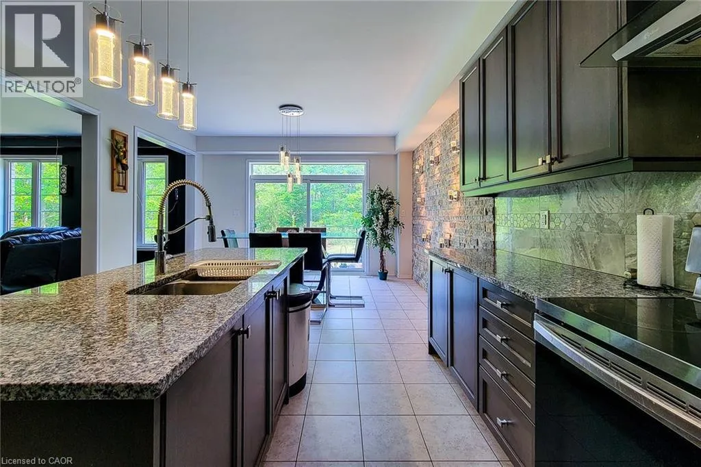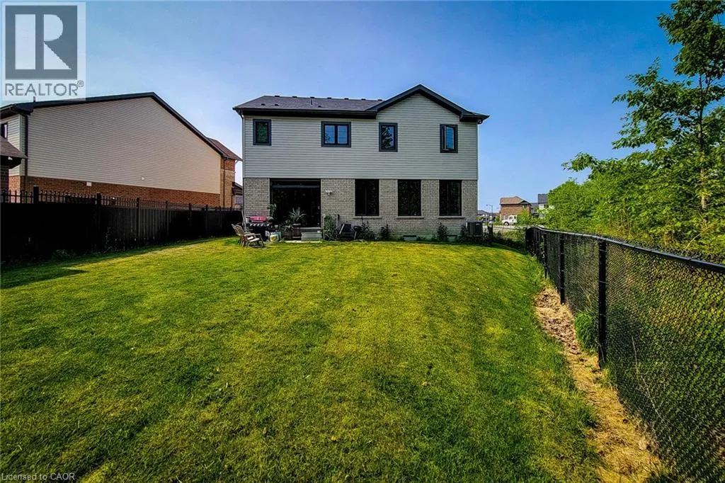 Mud & First Rd W Nestled in a quiet, family-friendly neighbourhood and backing onto serene greenspace, this stunning 4-bedroom, 5-bathroom detached home sits on a desirable corner lot and offers over3,500 sq ft of beautifully finished living space. The open-concept main floor is designed for both comfort and entertaining, featuring a bright living room with an electric fireplace, a private office, and a stylish great room with a striking accent wall. The eat-in kitchen is a chefs dream, showcasing stainless steel appliances, granite countertops, a tiled backsplash, ample cabinetry, a large island with breakfast bar, and a walk-in pantry for added storage. Upstairs, all four spacious bedrooms offer walk-in closets and private ensuite bathrooms, including a luxurious primary suite complete with a large walk-in closet and a 5-piece ensuite featuring dual sinks, a soaker tub, and a separate shower. Convenient bedroom-level laundry adds everyday ease. Step outside to a fully fenced backyard with no rear neighbours perfect for relaxing or entertaining. Enjoy the best of both worlds: a peaceful setting within walking distance to parks, scenic trails, and just minutes to top-rated schools, transit, sports complexes, community centers, and major amenities. Easy access to highways makes commuting a breeze.This is a rare opportunity to own a spacious, upgraded home in a prime location don't miss out! (id:27476)